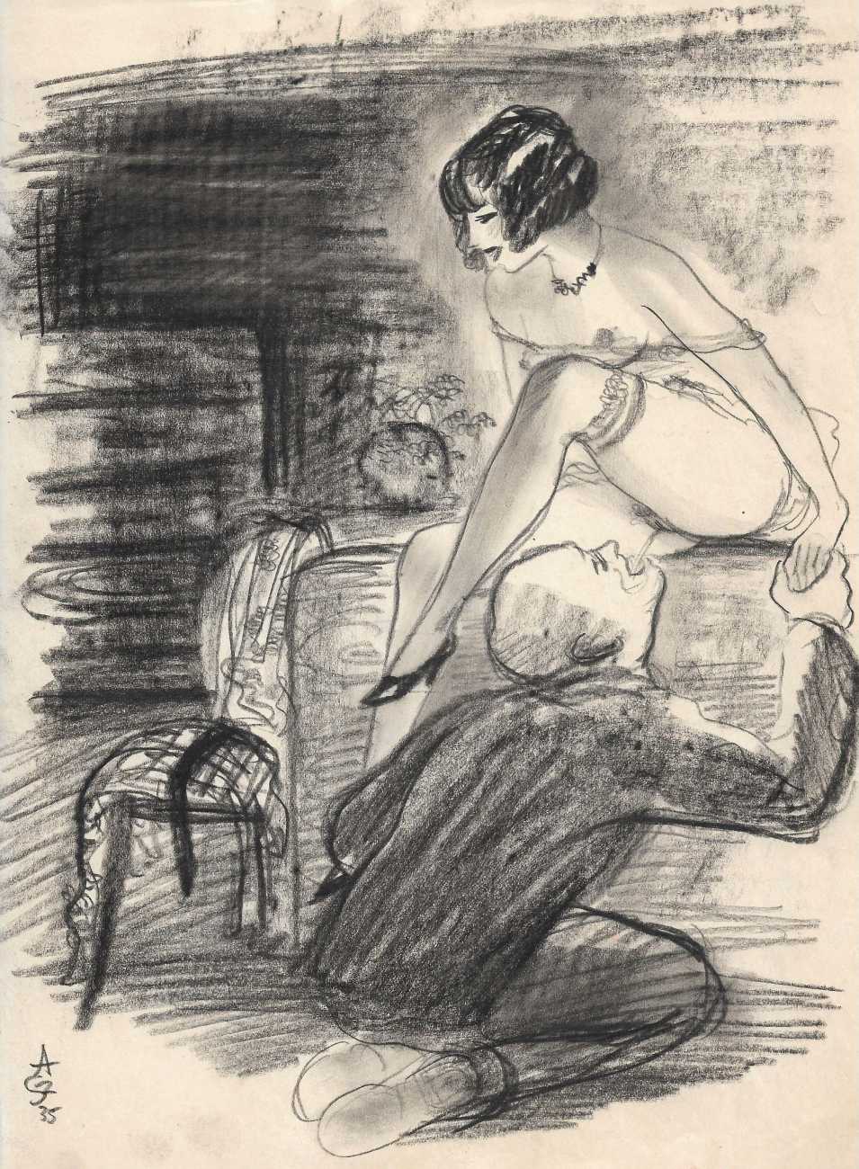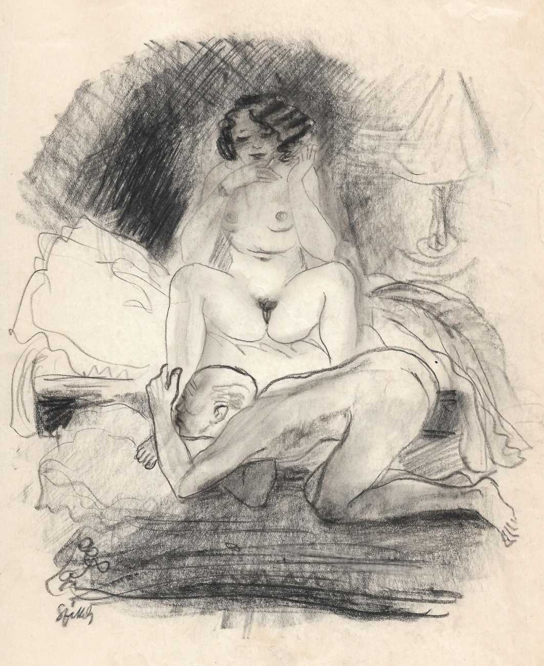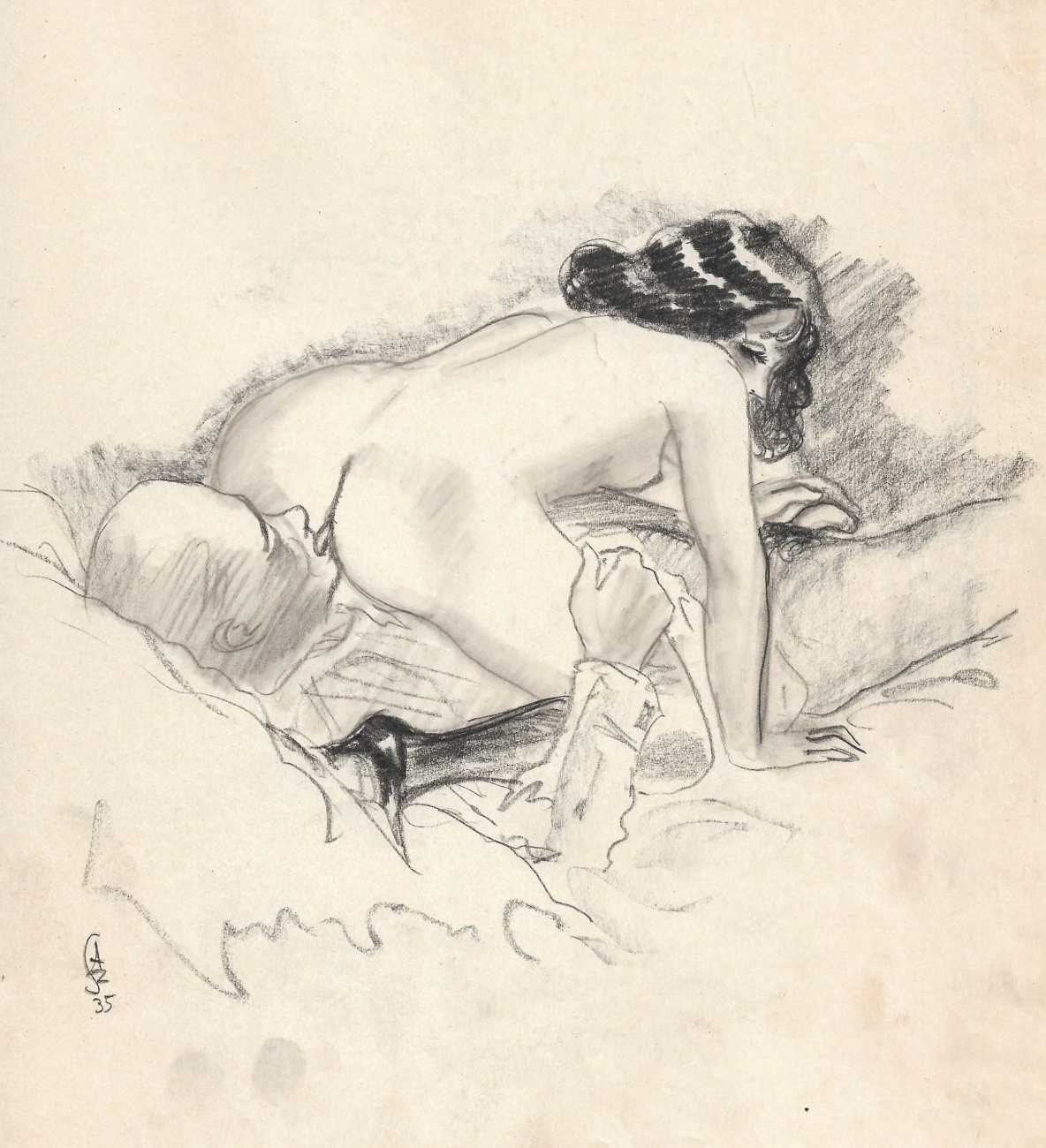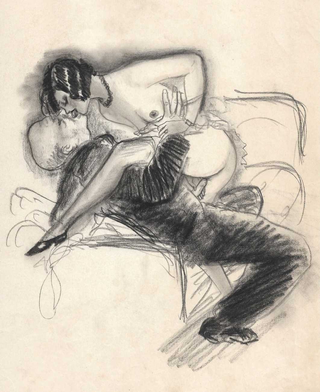 1939   Scènes orientales érotiques (Oriental Erotic Scenes), 5 enhanced charcoal drawings, 292x218mm.