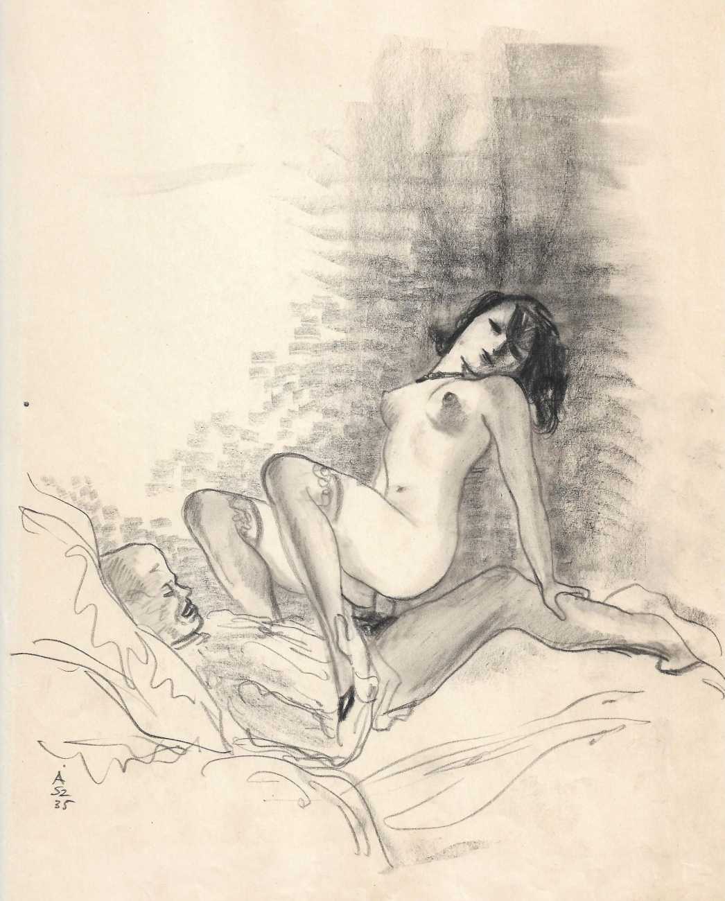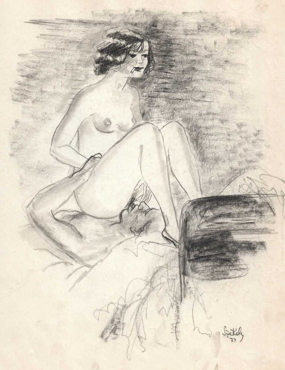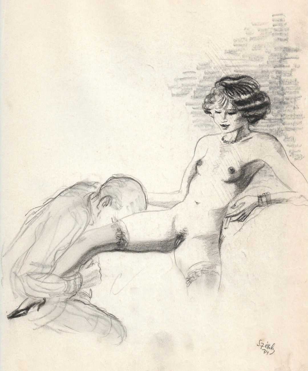 Because most of his work consists of original artwork rather than prints, the only record we have of most of his work is in the auction sales catalogues of the key erotica collections built up in the 1950s and 60s. By far the most important of these was the collection of Sieglinde and Karl Ludwig Leonhardt, sold at auction in 2009. Karl Ludwig was one of three brothers at the head of the very successful Leonhardt Group of German businesses operating in the automobile, mechanical engineering and tourism sectors. The Székely material sold at that auction consisted of over 300 illustrations in 28 portfolios.