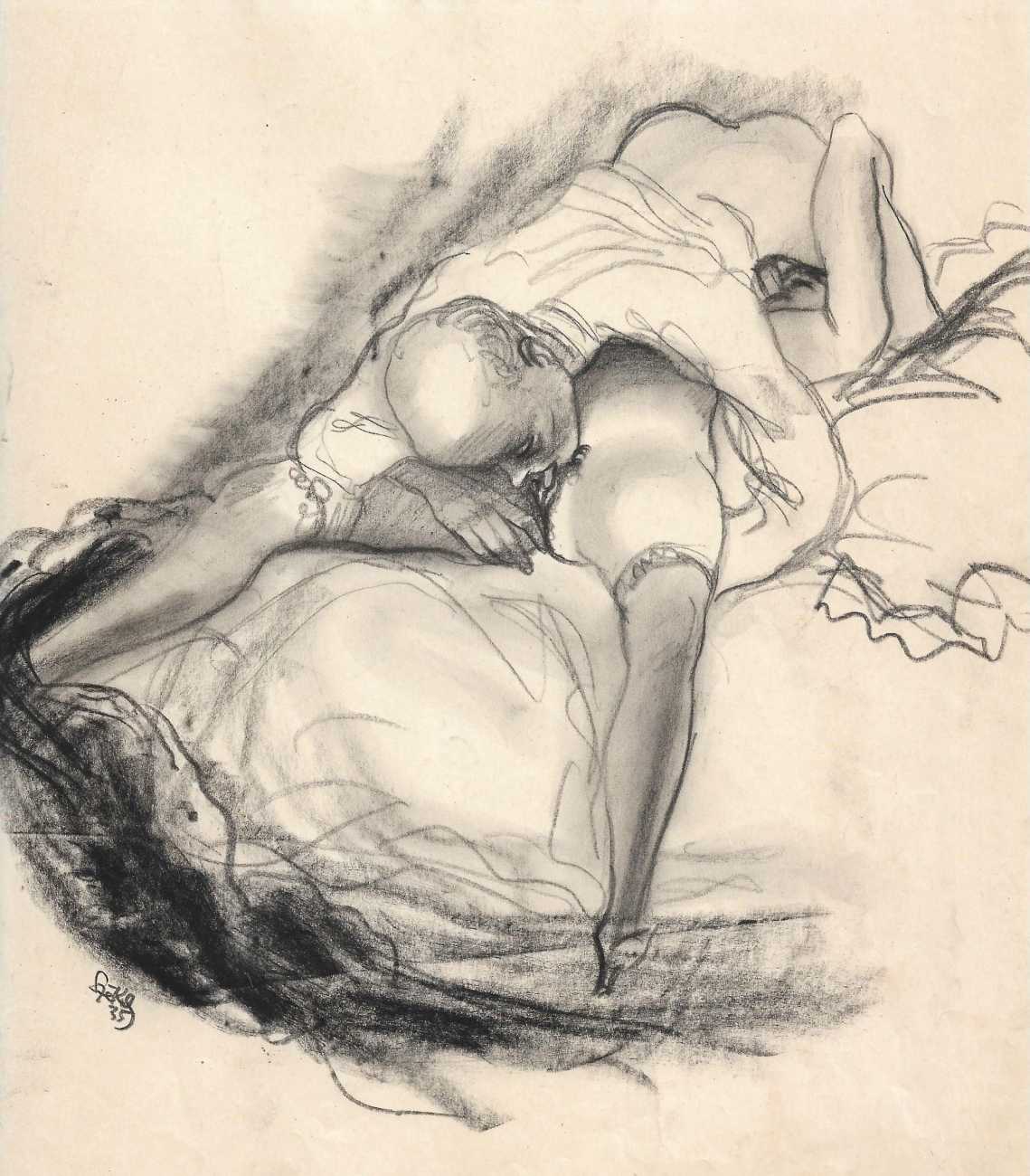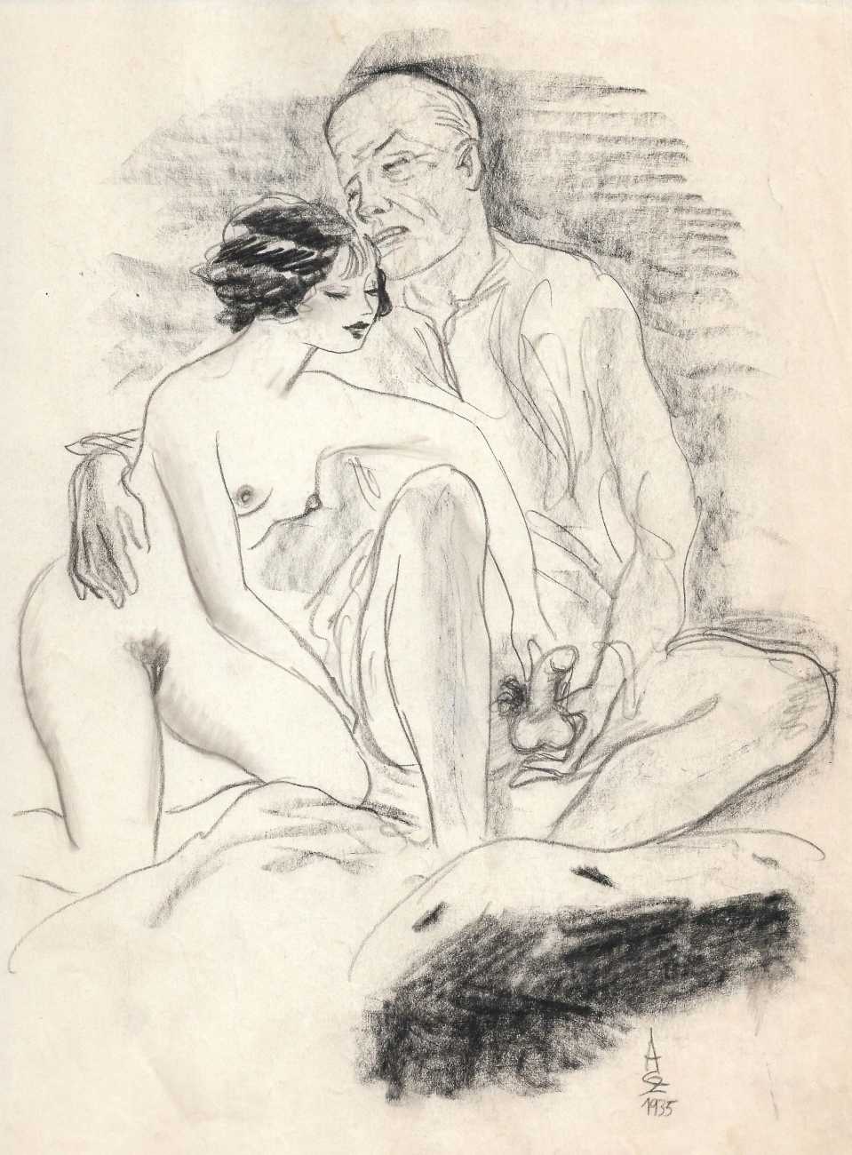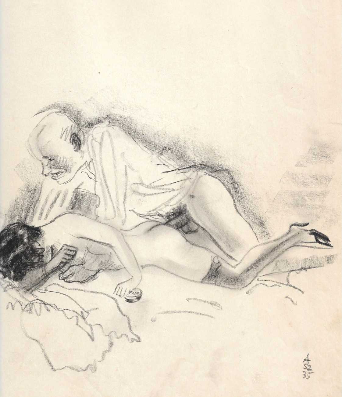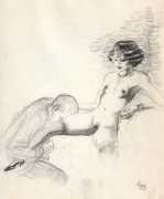 Because most of his work consists of original artwork rather than prints, the only record we have of most of his work is in the auction sales catalogues of the key erotica collections built up in the 1950s and 60s. By far the most important of these was the collection of Sieglinde and Karl Ludwig Leonhardt, sold at auction in 2009. Karl Ludwig was one of three brothers at the head of the very successful Leonhardt Group of German businesses operating in the automobile, mechanical engineering and tourism sectors. The Székely material sold at that auction consisted of over 300 illustrations in 28 portfolios.