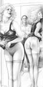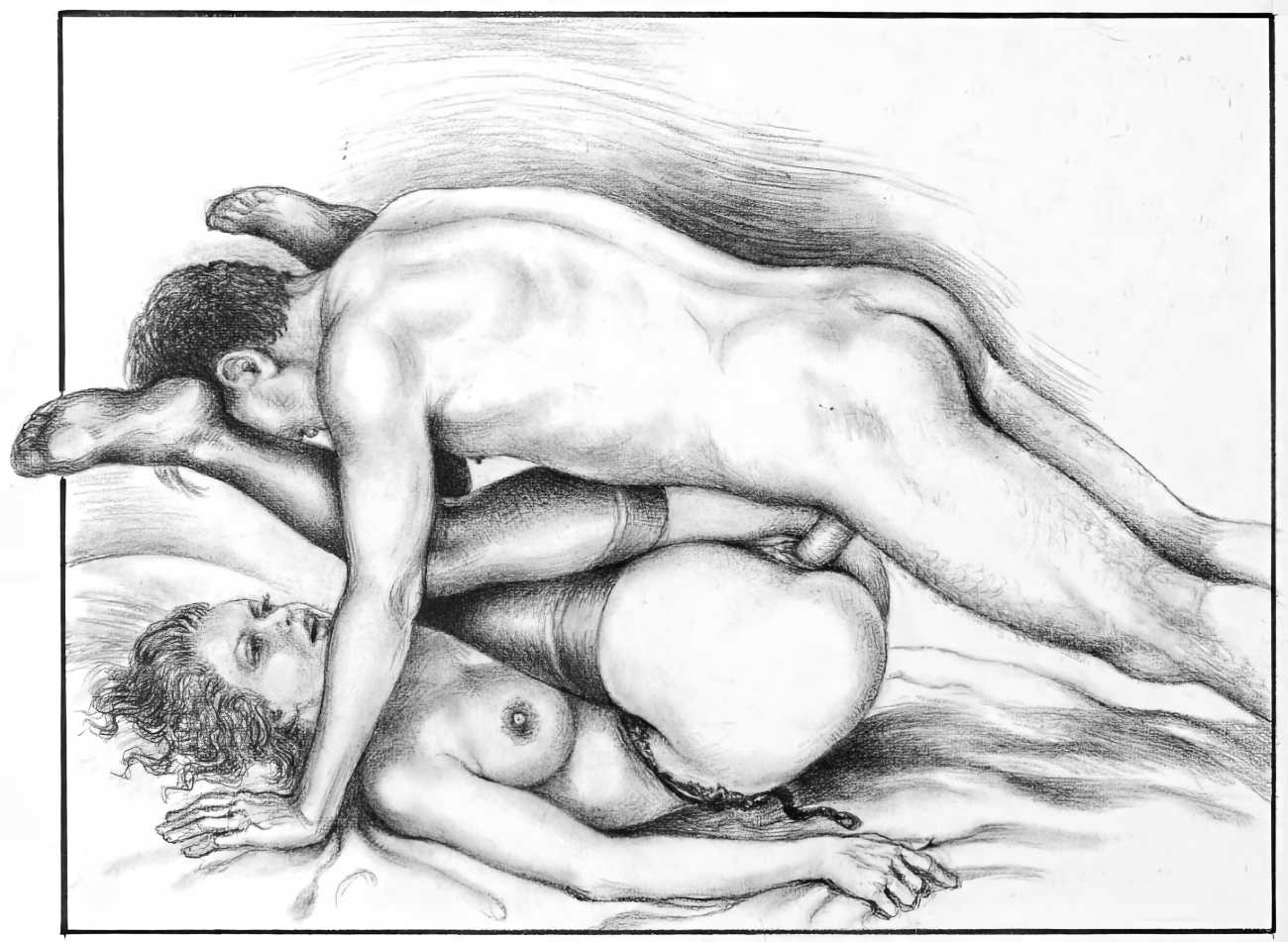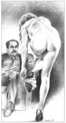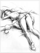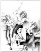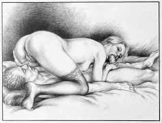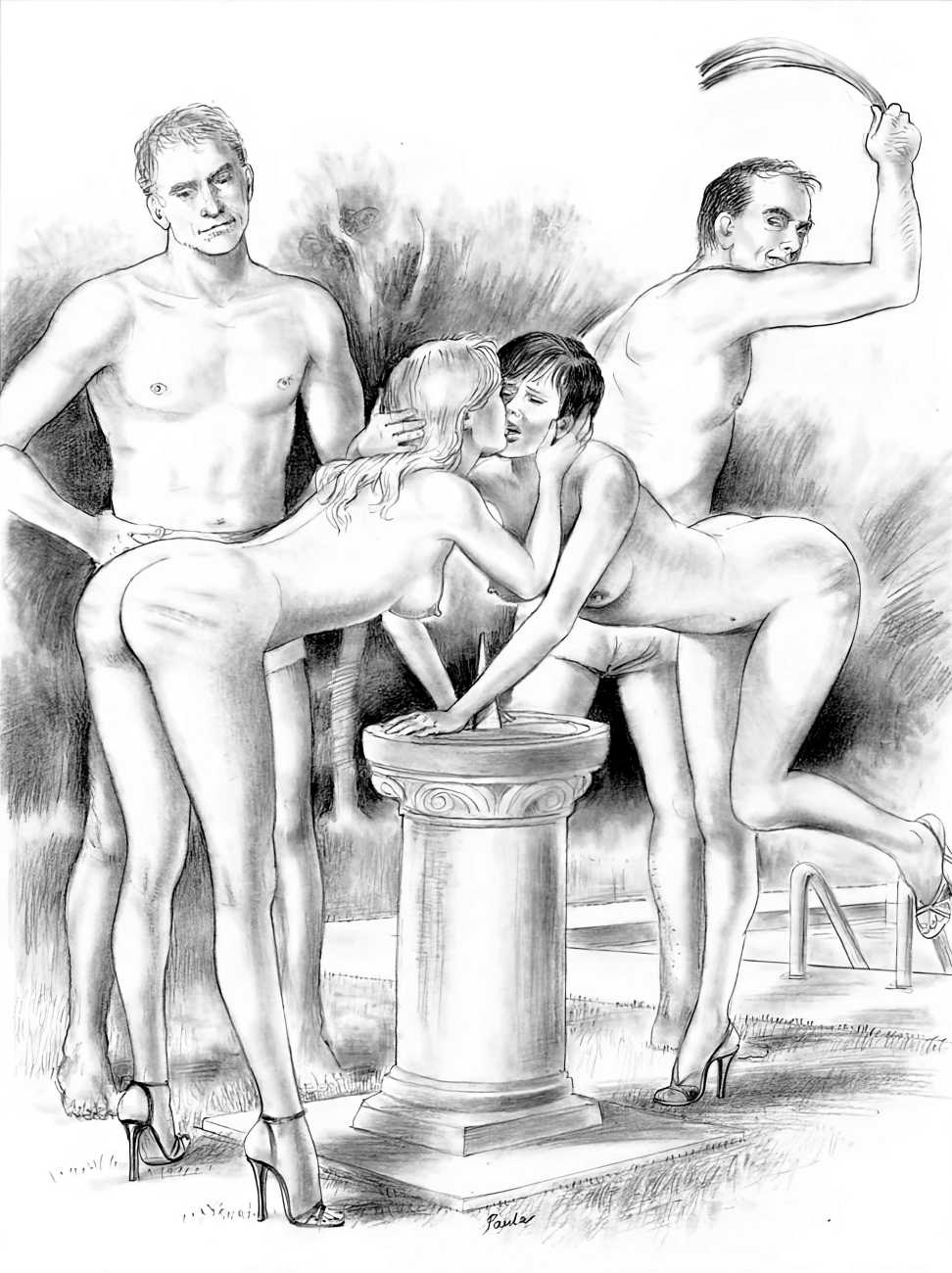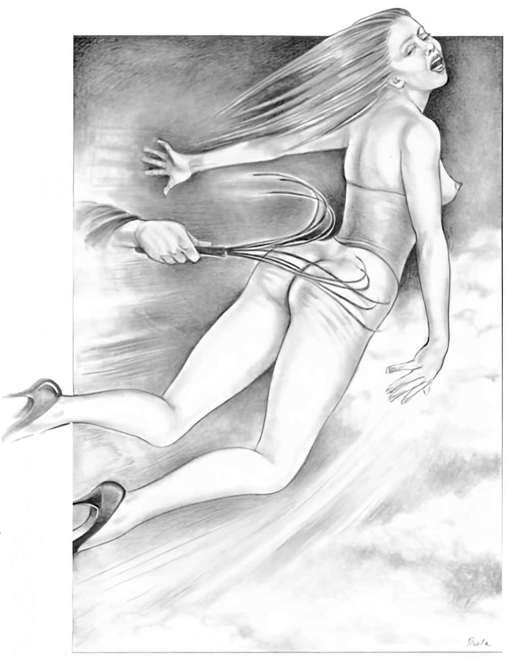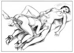 Apart from her graphic work with Janus and Februs magazines, most of Paula’s work was commissioned and published by the The Erotic Print Society, for whom she illustrated Beatrice in the Scarlet Library series, several limited edition print portfolios, the autobiographical A Sexual Odyssey, Painful Pleasures and The Illustrative Art of Lynn Paula Russell, and English-language editions of titles first published by French adult bandes dessinées magazine – Sabina, Sabina 2, The Young Governess, and Summer Holiday.