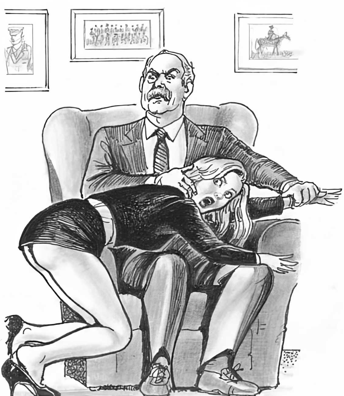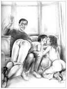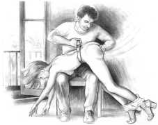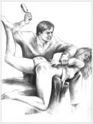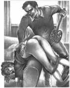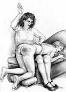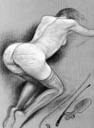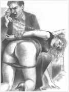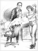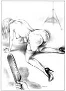 When Februs ceased publication in 2002, Paula Russell decided to retreat from the spanking scene both in private life and as an artist. Since then she has largely withdrawn from illustration in favour of painting, including large canvases and designs for a proposed erotic tarot.
