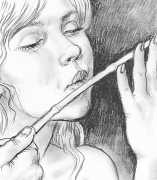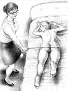 Most of Paula’s work reflects her personal journey of self-discovery in which her art intimately reflects, often in stark and painful detail, the experiences she needed in order to know at first hand the subjects that she illustrated. It was never enough merely to be interested or to use her considerable graphic skills to portray what she could imagine; she always needed to immerse herself in the explicit activities of whatever exploration or narrative she was concentrating on. The details of her experiences in video, film and modelling are outlined in the biography below; we concentrate here on her illustration work, where she pioneered the technique of detailed pencil drawing to produce realistic and believable responses to the texts she worked with.