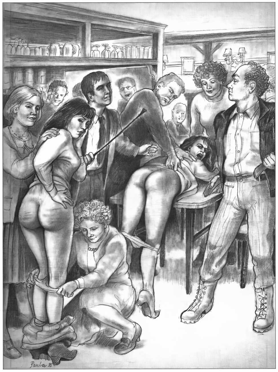 In 1982 Paula started working for the British magazine Janus, first as a model, then as an illustrator. Up until 1986 she created numerous fetish illustrations for Janus and continued to appear as a model; she recounted her memories of her time as a model and illustrator at Janus in The Janus Collection: A Personal Anthology.