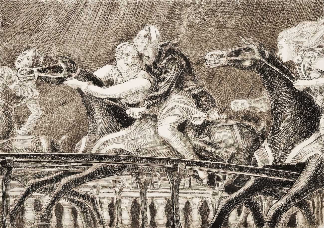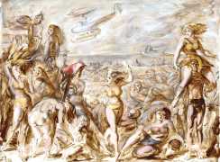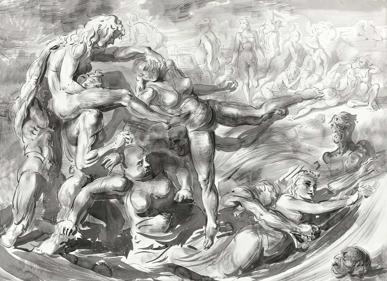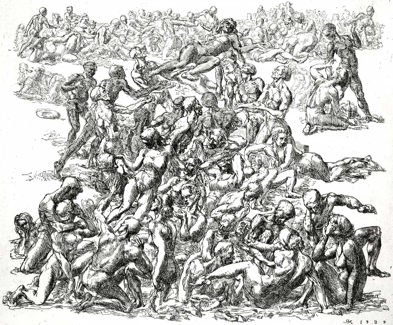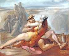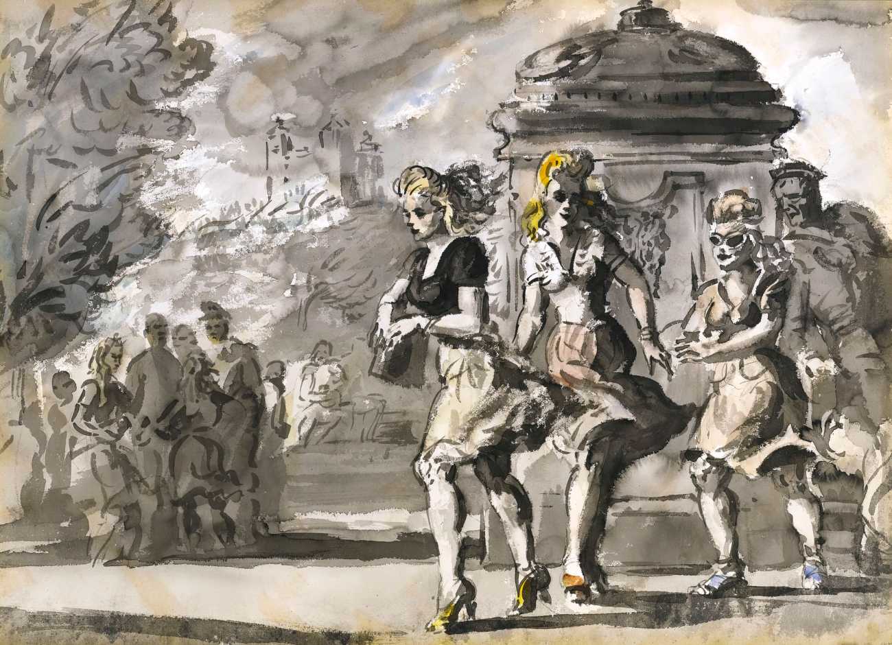 Reginald Marsh rejected modern art, which he found sterile. His work depicted the Great Depression and a range of social classes whose division was accentuated by the economic crash. His main attractions were the burlesque stage, the hobos on the Bowery, crowds on city streets and at Coney Island, and women.