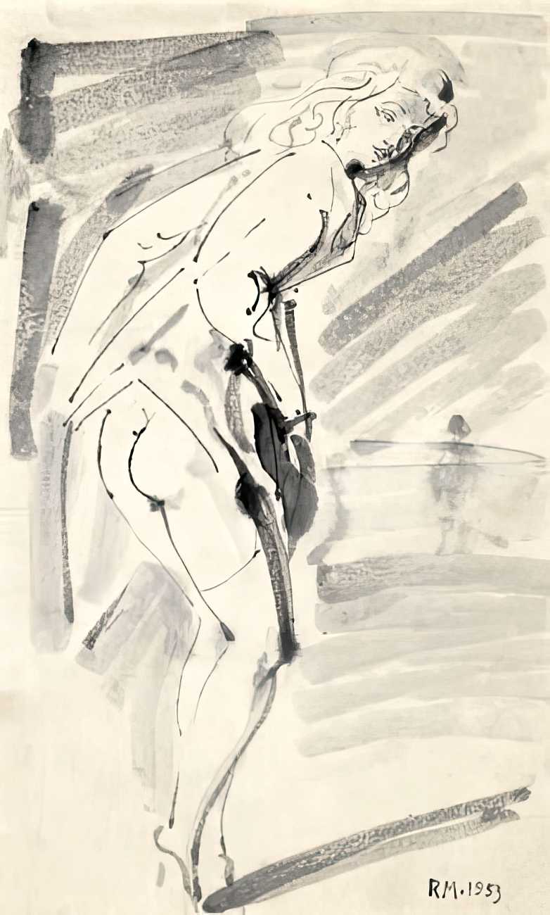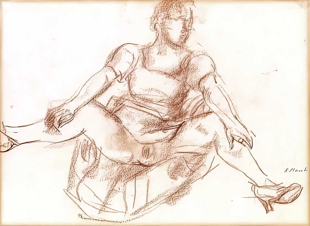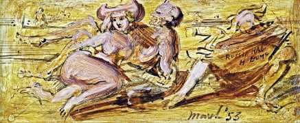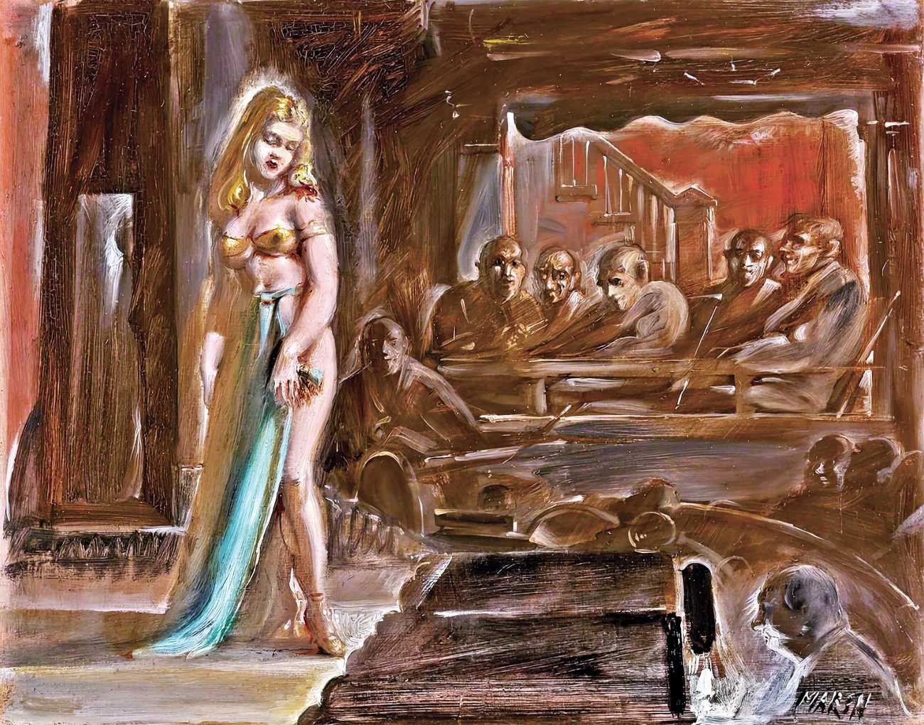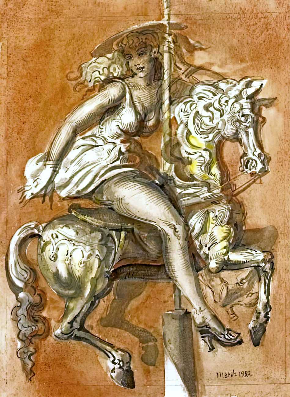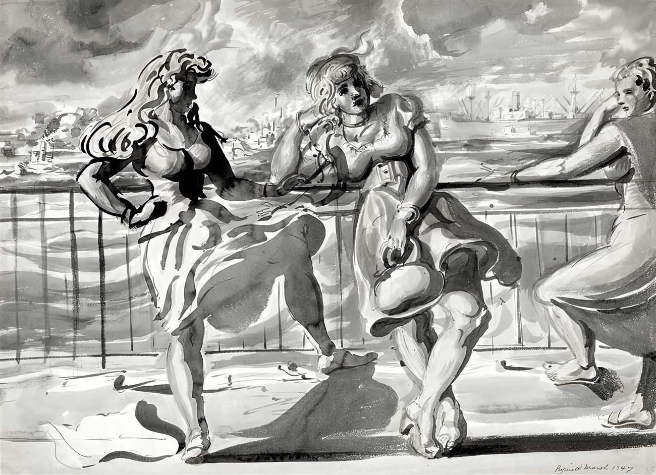 Marsh then studied under Kenneth Hayes Miller at the Art Students League of New York, who looked at Marsh’s early, awkward burlesque sketches and at his more conventional landscape watercolours, and told him ‘These awkward things are your work. These are real. Stick to them and don’t let anyone dissuade you!’