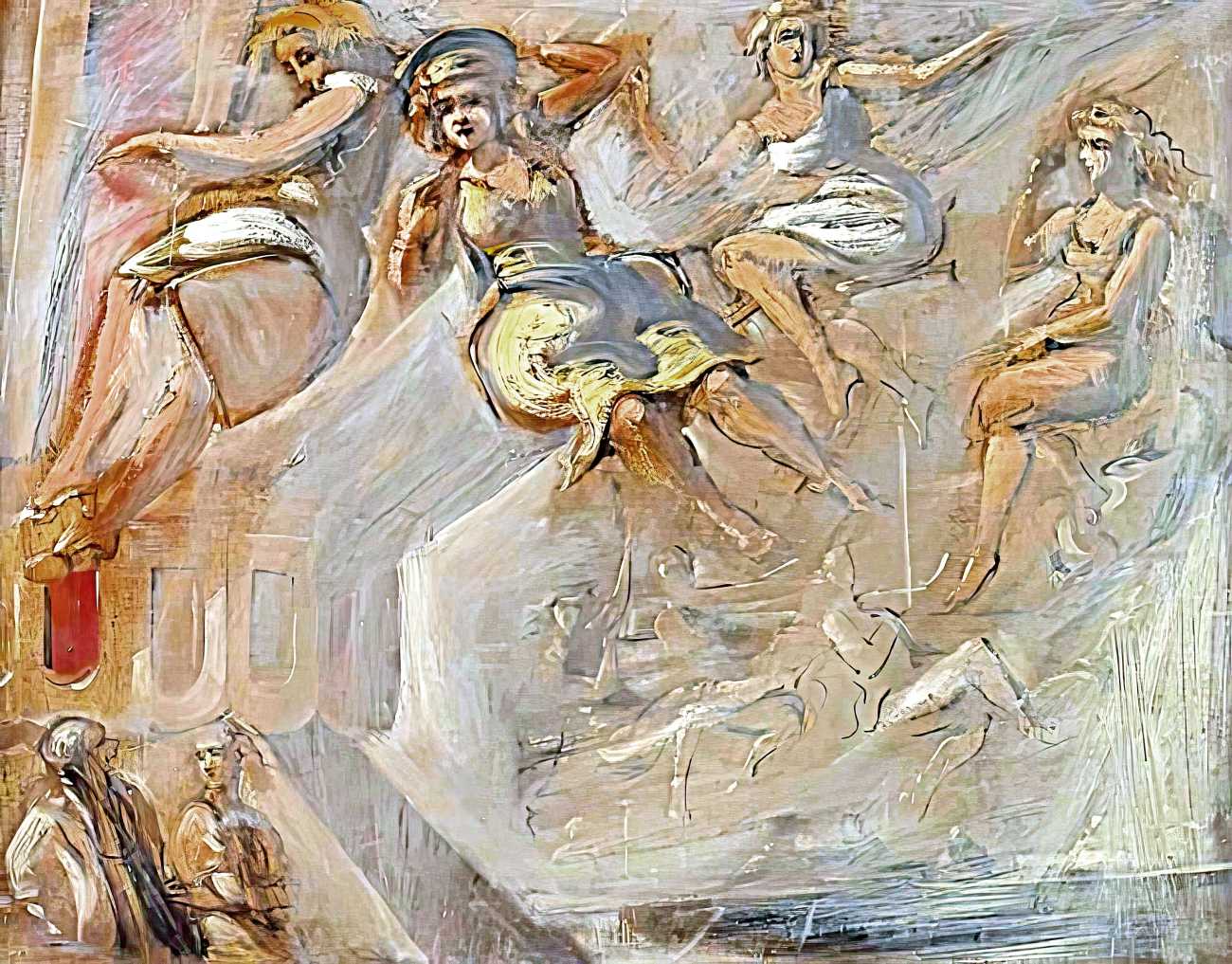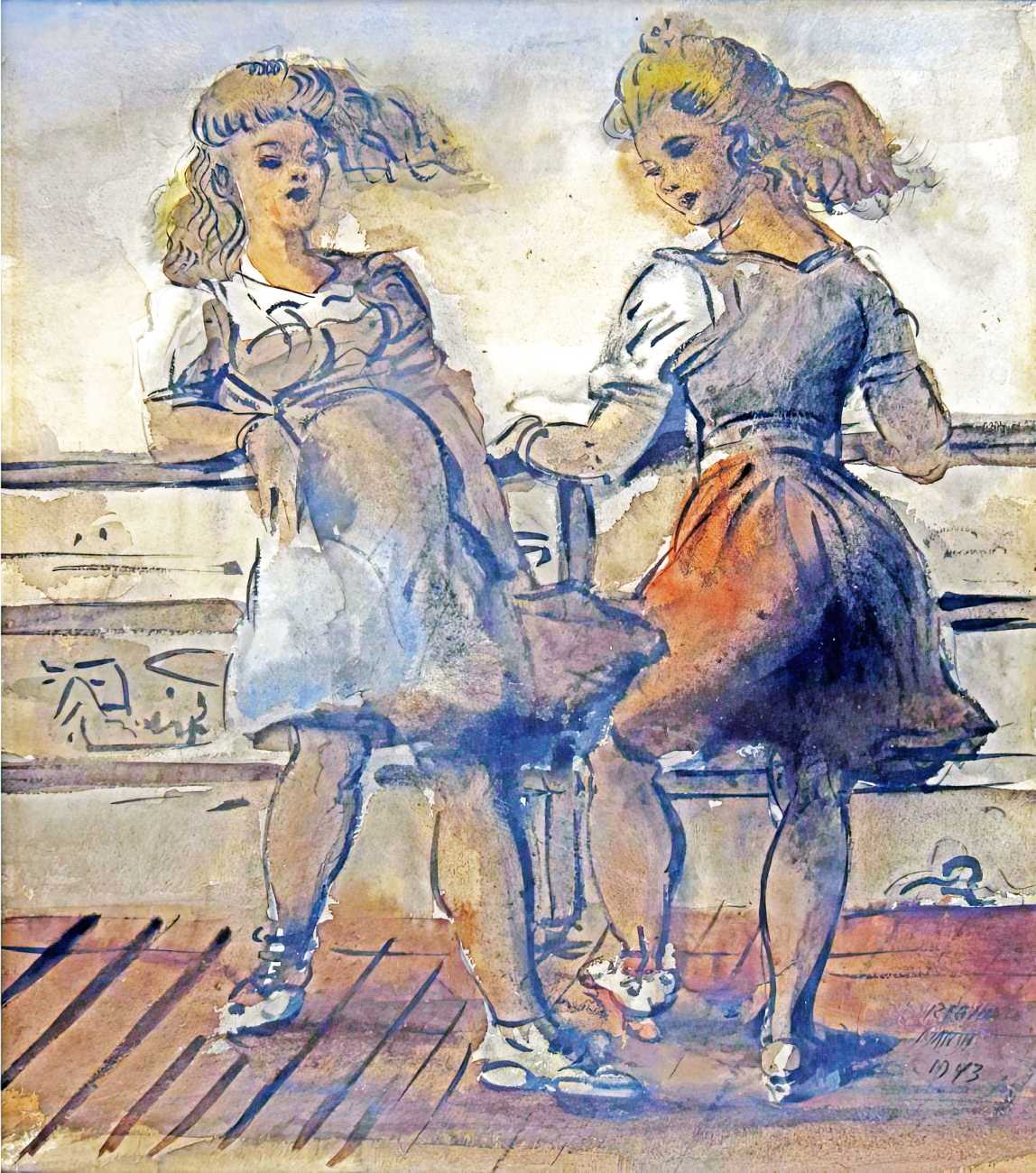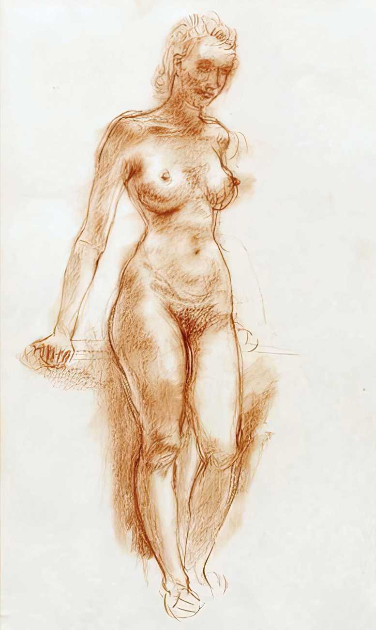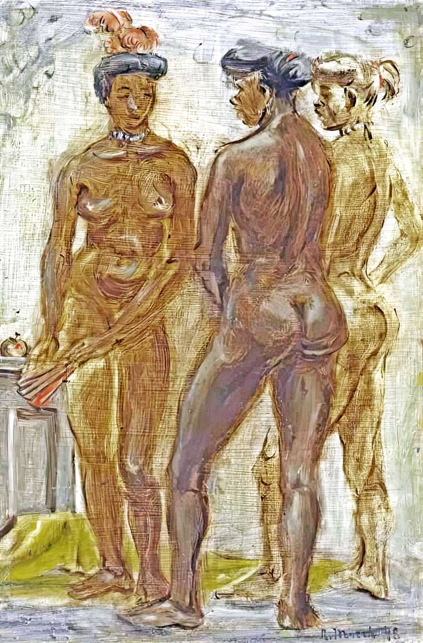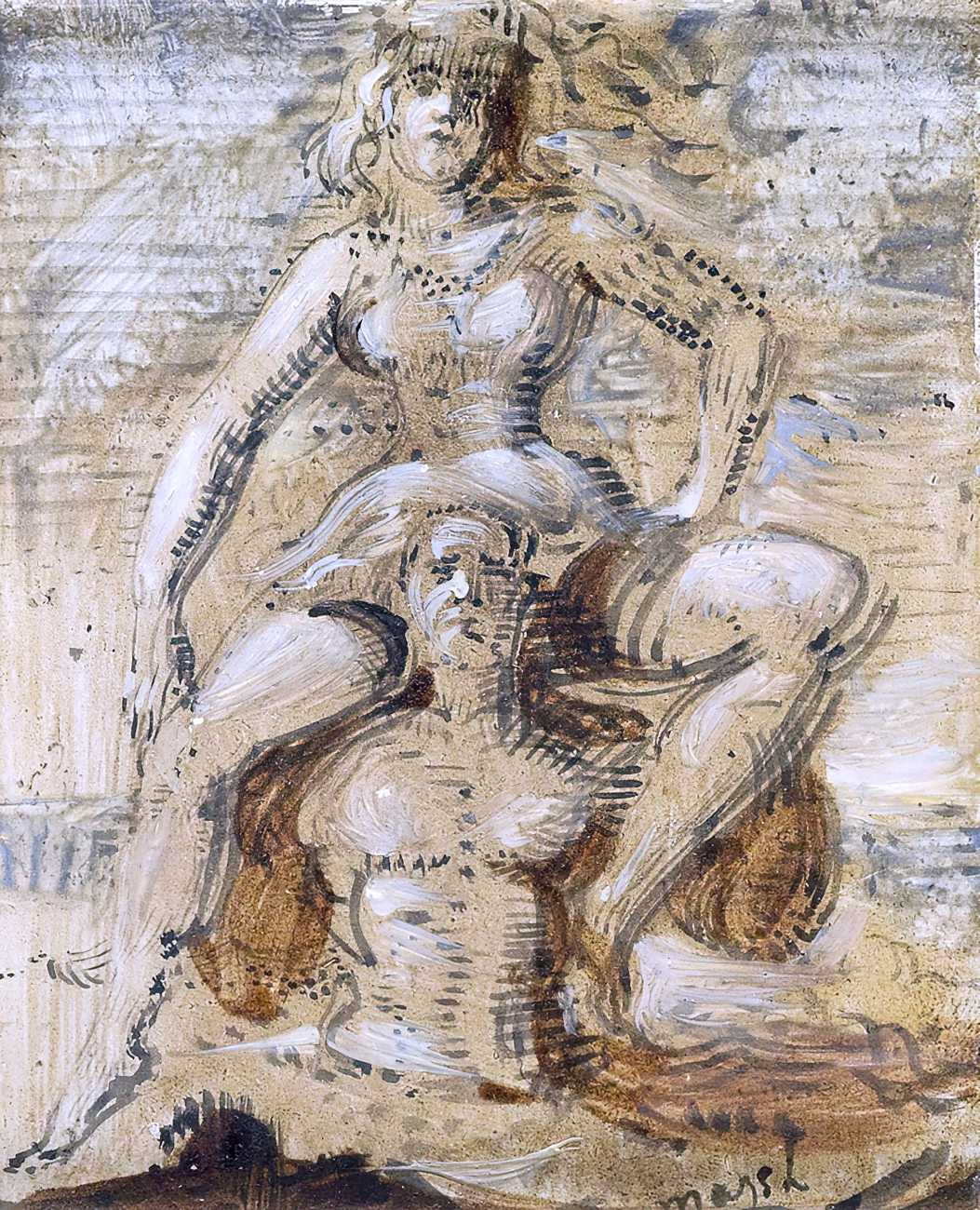 Marsh then studied under Kenneth Hayes Miller at the Art Students League of New York, who looked at Marsh’s early, awkward burlesque sketches and at his more conventional landscape watercolours, and told him ‘These awkward things are your work. These are real. Stick to them and don’t let anyone dissuade you!’