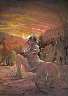 The paintings are shown her in chronological order, from early work like the 1991 ‘Bad Babies’ series, through her ‘Northview’ and ‘Hippies’, to her recent large-scale paintings showing naked women ‘models’ congregating in surrealist ‘studios’.