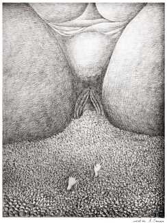 Maldoror clearly spoke to Armand Simon’s imagination and creativity, and between 1923 and the late 1940s he returned to it again and again for inspiration, producing hundreds of surrealist-inspired drawings. Many have a clearly sexual element, though more in a symbolist than a figurative context, and it is possible to interpret much of the work in terms of relationship, power, self-exploration and human struggle.