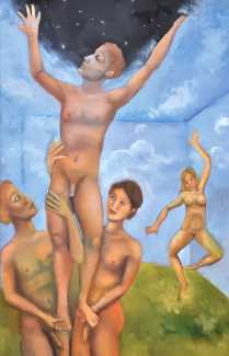 Like his drawings, though usually more thoroughly imagined and composed, Mark Price’s paintings explore a world as it might be if we were free to explore our bodies and our sexuality. ‘I am not so much interested in the politics of the new socialisation of queer, or the creation of an art that establishes and legitimises our way of life in the early stages of this brave new world we are slipping and sliding into. I am more interested the psychology of weird sex, homosexuality, polyamory and androgyny. My art seeks to captivate the spirit of androgyny in us, the two-spirit aspect of sexual ambivalence, an inner necessity in some of us that needs artistic and sexual expression.’