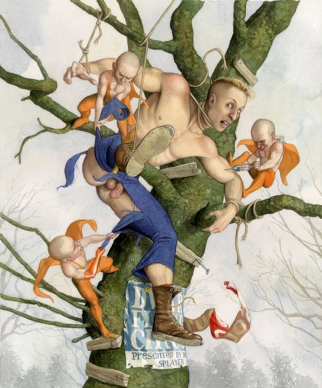Stephen Player’s artwork frequently straddles a fine line between ’fantasy’ and ‘erotica’, acknowledging the ambiguous sensuality of the world of imagination. Every image in this selected portfolio of Player’s work includes a sexual element of some kind, yet in none is the sexuality central to the complex imagery, demonstrating on how many levels good works of art can be interpreted.