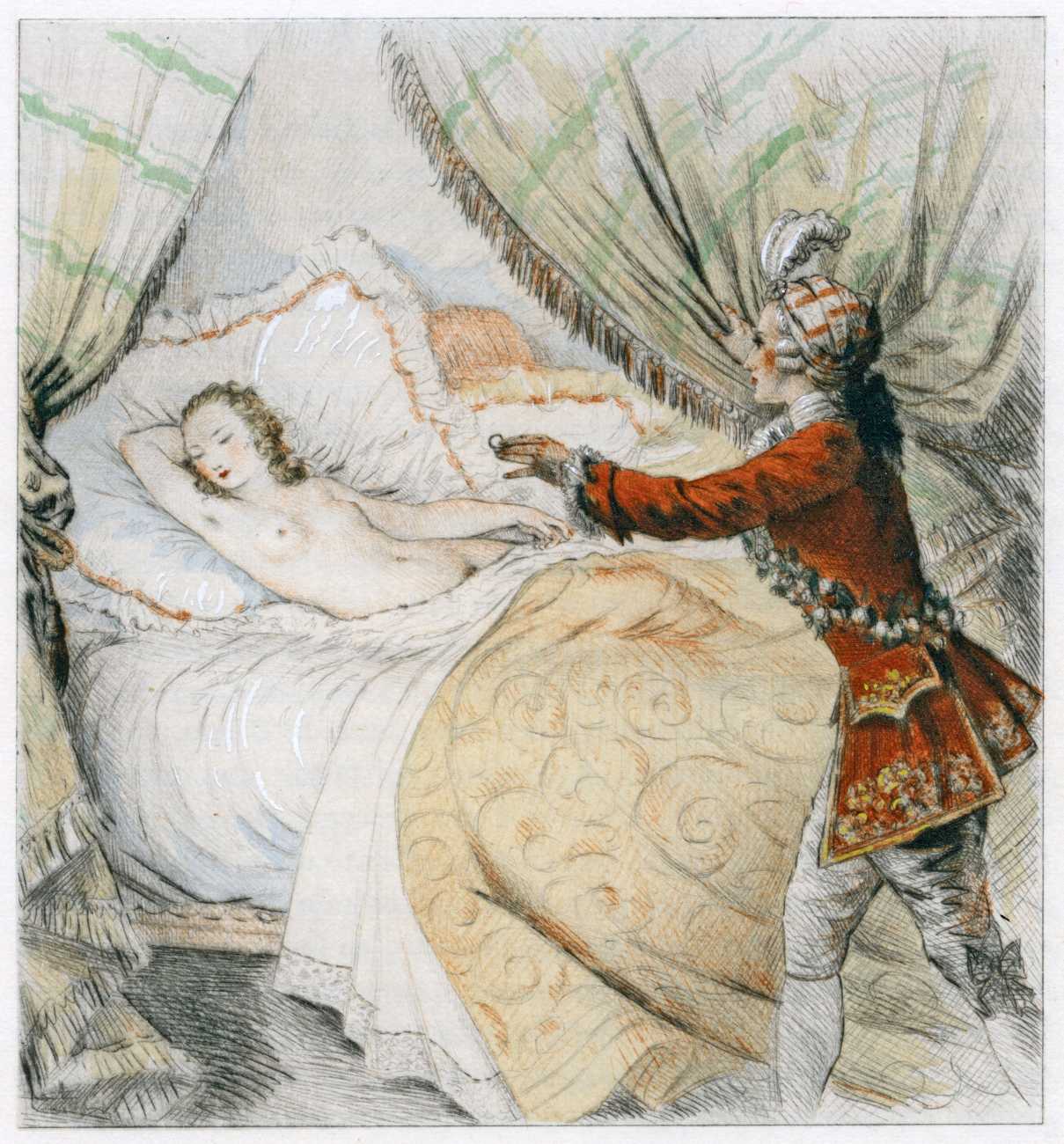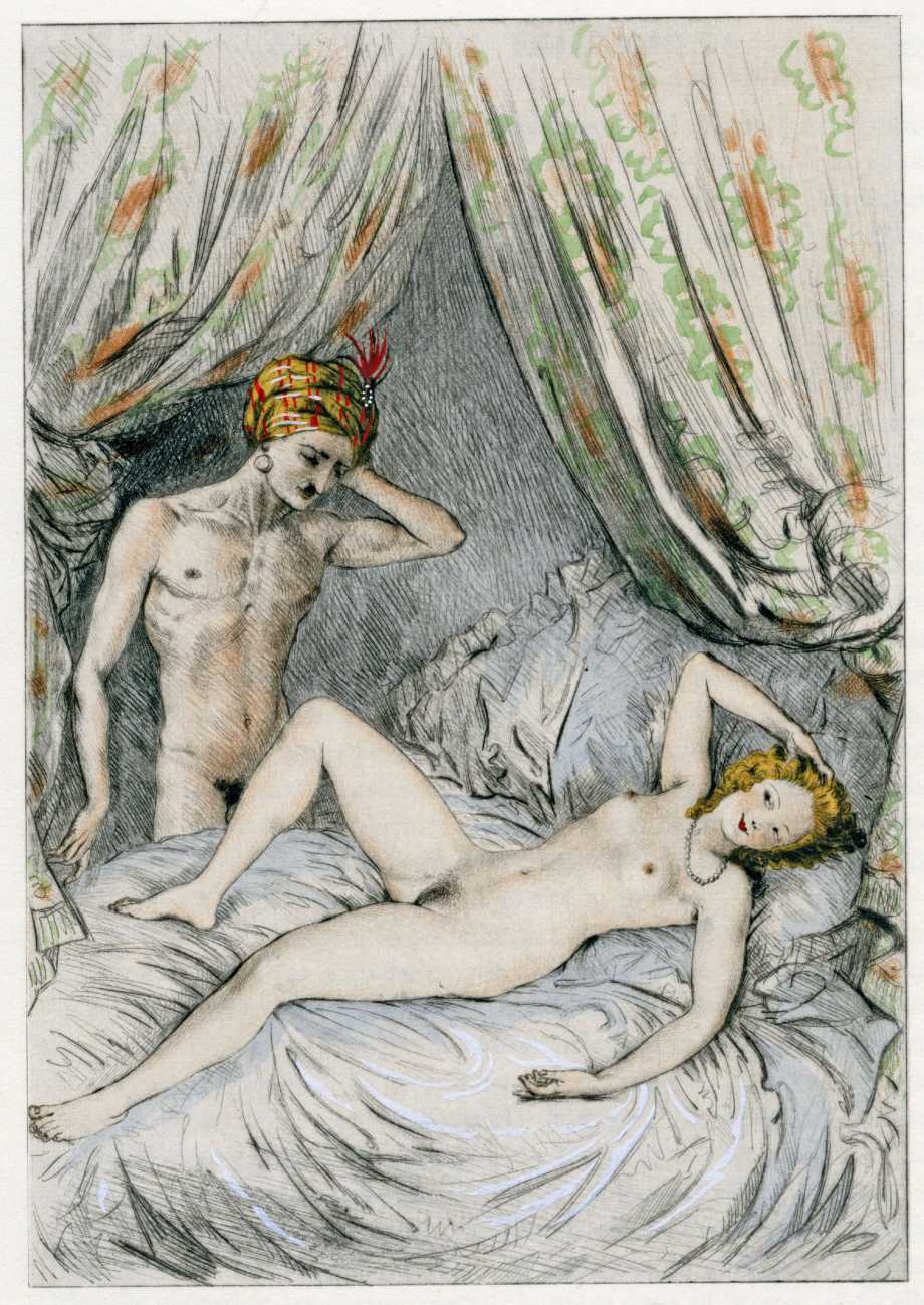The Bécat-illustrated Les bijoux indiscrets was published by Le Vasseur, Paris, in a limited, numbered and boxed edition of 511 copies.