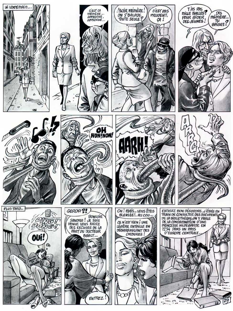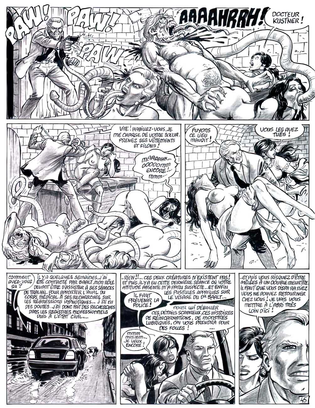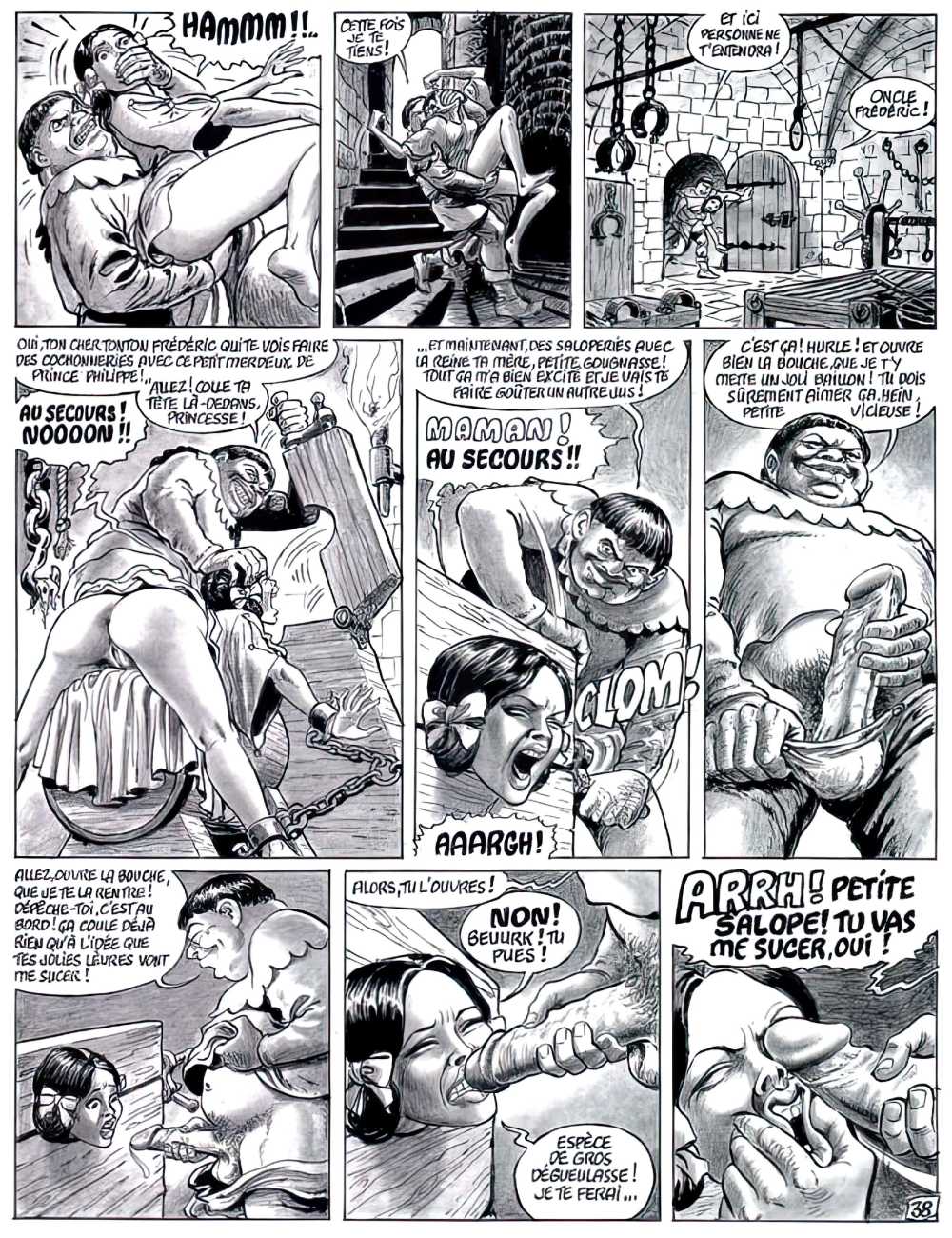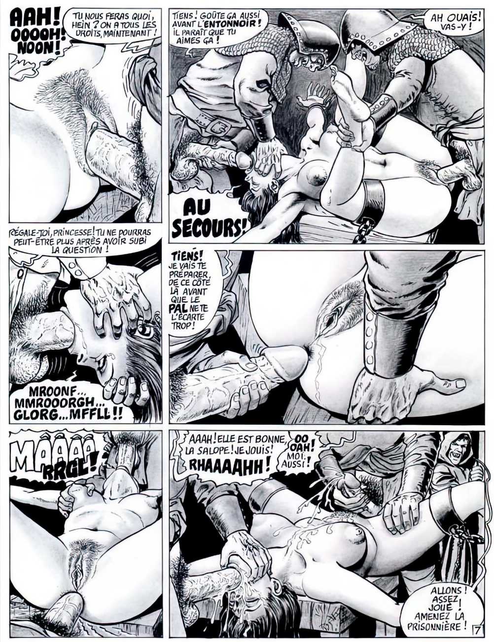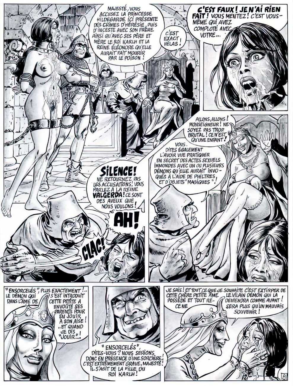 Set very much in the Sadean tradition, Hilda’s experiences are horribly but brilliantly brought to life by Bernard Dufossé’s pen, here under the pseudonym of Hanz Kovacq. Nowhere else will you find a vocabulary as imaginative as his ‘Aarrogll! Horgh! Harch! Harf!’