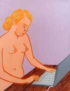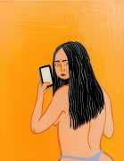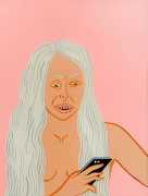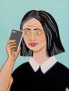 Network is an ongoing series project of small paintings on wooden panels, just 8 x 6cm, that started in 2015, with individual works being added as the creative spirit moves. As so often the theme is young women’s relationship with mobile technology and social media.