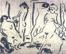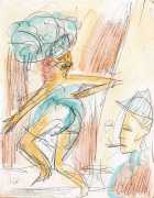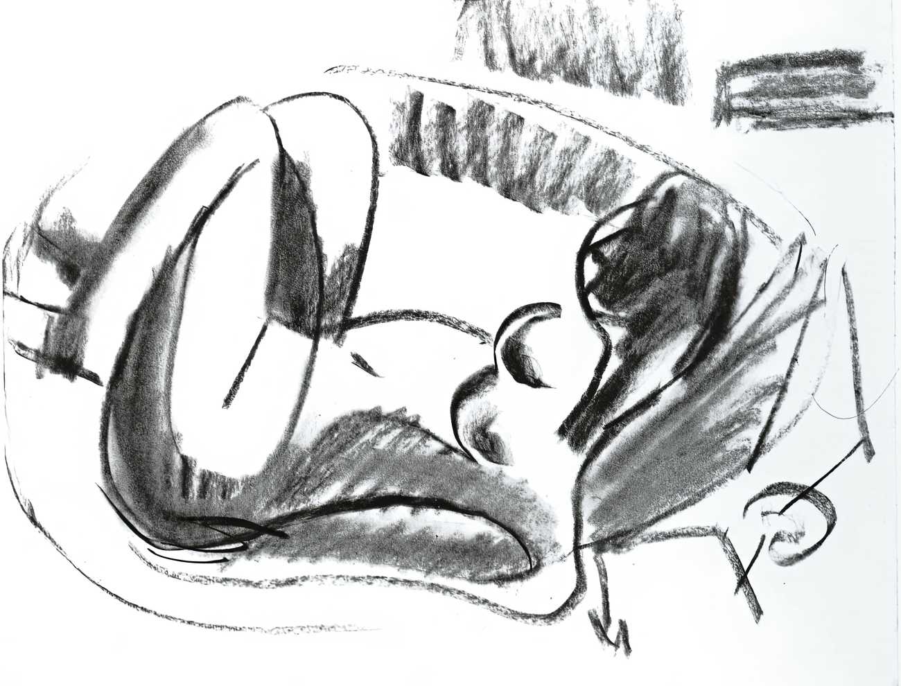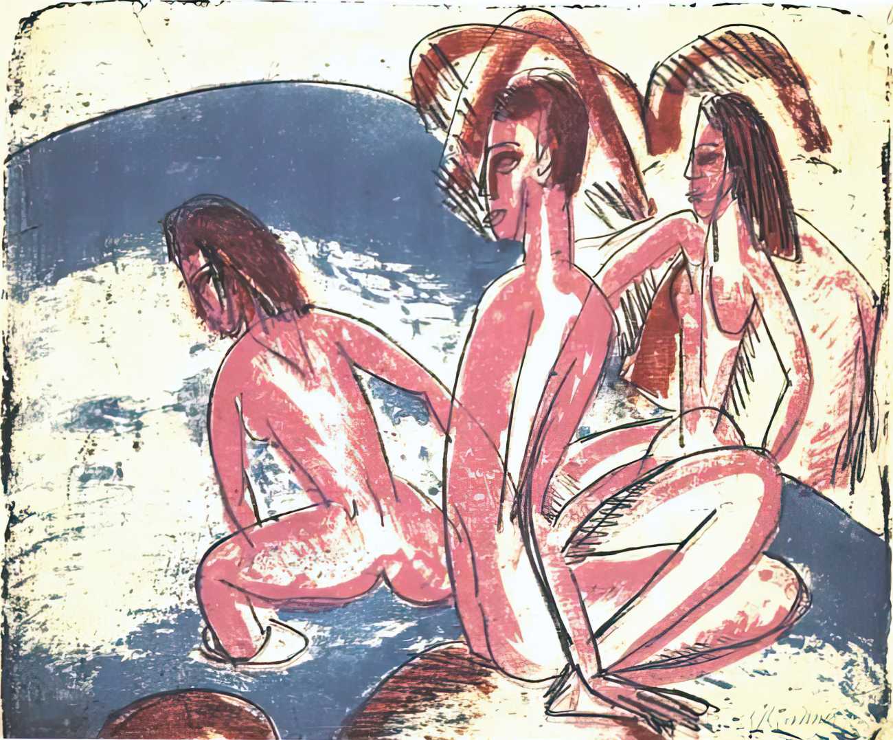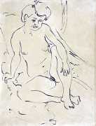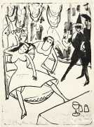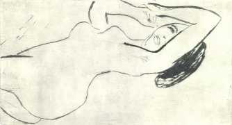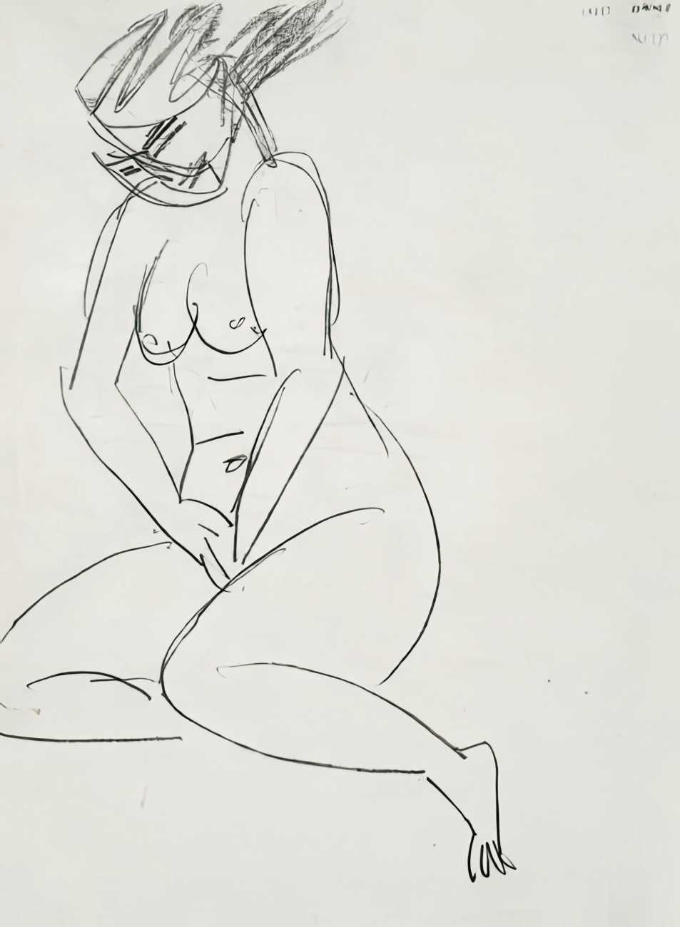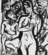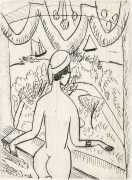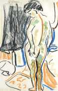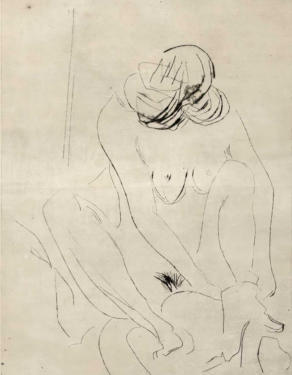 In Kirchner’s drawings the erotic appears with a directness and immediacy distinct from the more theatrically charged sensuality of his paintings. Working quickly with charcoal, ink or pencil, Kirchner used drawing as a laboratory for exploring bodily presence stripped of narrative context or painterly drama. The line became the primary expressive agent, recording desire as a kinetic impulse rather than as a composed scene. His naked subjects often seem caught in a moment of transition – stretching, reclining, dressing, bathing – captured with an economy of line suggesting spontaneity and intimacy.