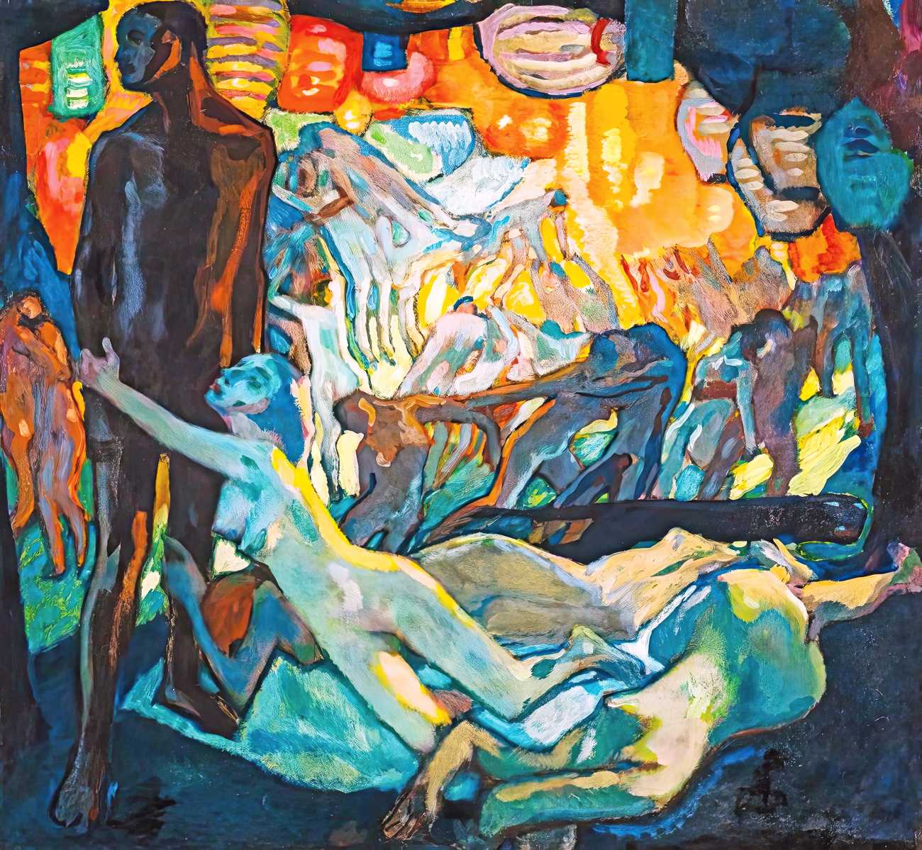 Putz’s use of oils as a medium allowed him to build luminous surfaces and subtle tonal transitions. His brushwork varies from smooth modelling in close-up studies of the body to more broken, plein-air scenes of larger groupings, where the erotic element is embedded within scenes of social leisure – women bathing, reclining, or conversing at the water’s edge. This framing renders the erotic as both private and publicly visible – an interplay many of his contemporaries found compelling.