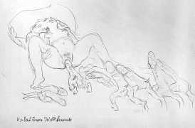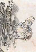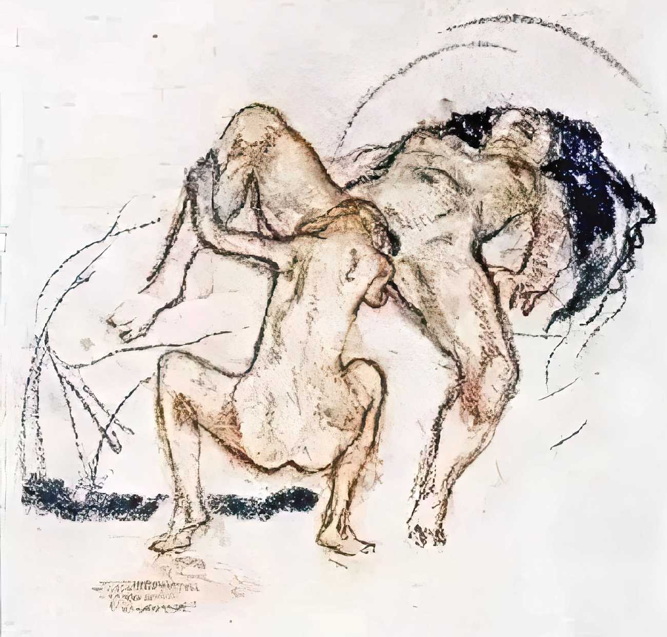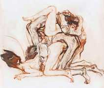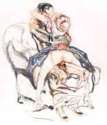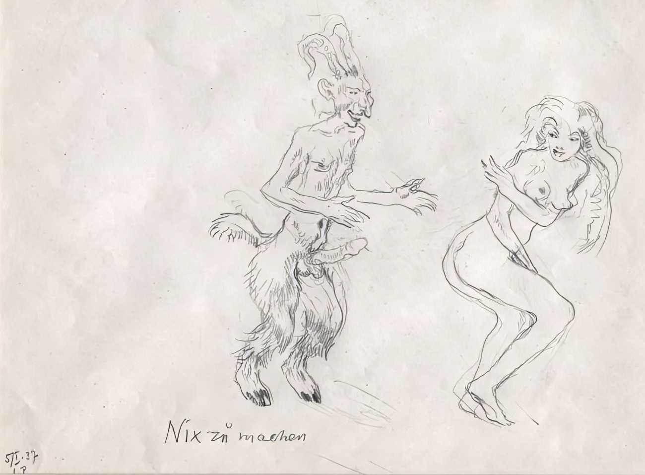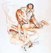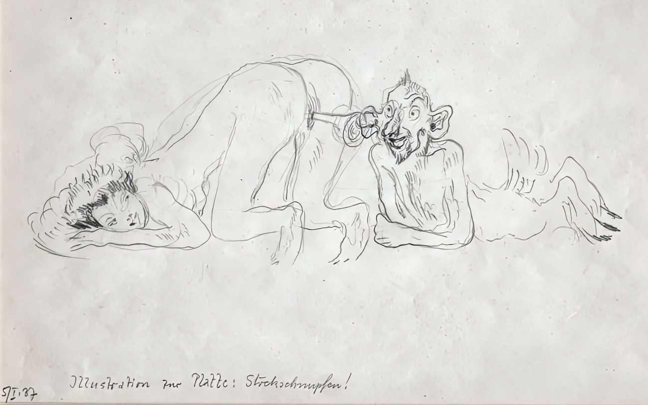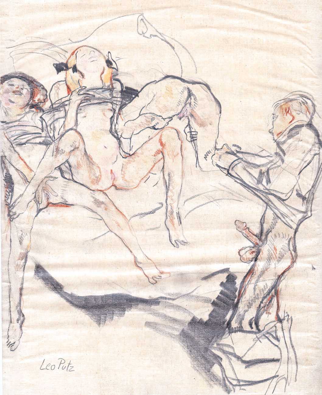 Putz’s surviving drawings also show that he was intimately interested in the more explicitly sexual and physical aspects of the human body, not just its artistic potential. Several portfolios include studies of couples and threesomes enjoying rampant sex, and women displaying their genitals and pissing. Most of these small explicit works which have survived are in private collections, and we are very grateful to Hans-Jürgen Döpp for these images; Hans-Jürgen, the compiler of many books on erotic art, curates the Venusberg online gallery and bookshop which you can find here.