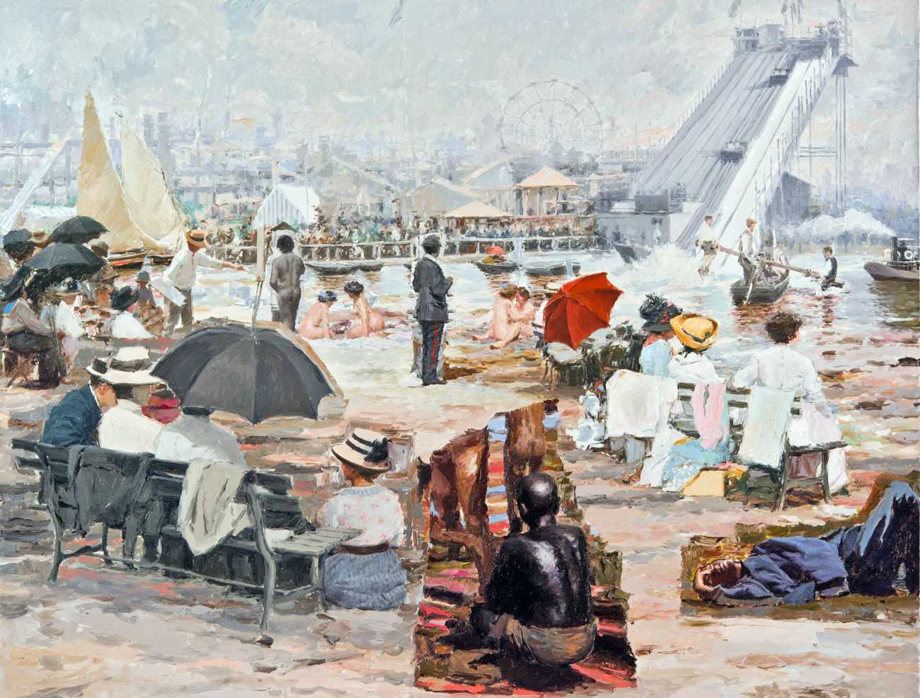 Cabrera Montejo’s more recent work explores similar themes of historic truth, sexuality and power in modern society, in large canvases populated with a mixed crowd of people interacting in thought-provoking ways.