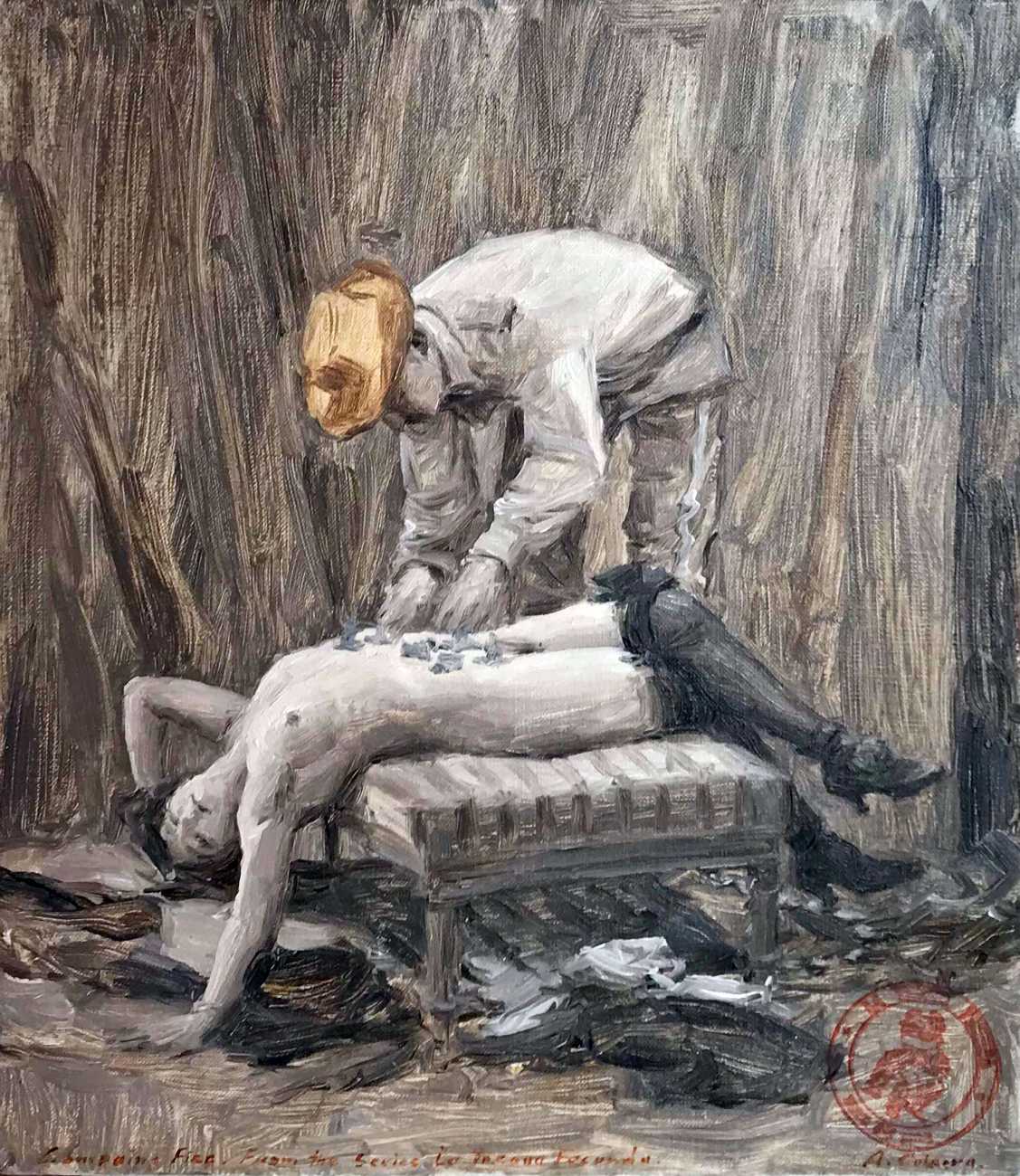Despite what Cuban history wants to say about its military heroes, Cabrera Montejo shows them as human beings with lewd and sensual desires, in an attempt to interrogate the official history of Cuba. In his work he addresses sensitive topics in a social-political context, including sexuality, power, and the myth of the war hero.