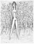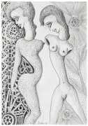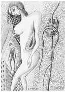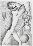 Armand Simon was a Belgian surrealist artist whose work often explored themes of eroticism and fantasy. Having grown up in the village of Pâturages in western Belgium, he went on to study science at the Athenaeum in Mons, where he met the poet Achille Chavée and the writer Fernand Demoustier, better known under the pen name of Fernand Dumont. With them, he became a student at the L’Université Libre de Bruxelles, but abandoned his studies after the first year. In 1930 Chavée and Demoustier introduced him to surrealism, and Simon produced his first surrealist-inspired drawings in 1933. Their mixture of cruelty and eroticism evokes Pierre Molinier and Max Walter Svanberg, often depicting fantastic creatures and dreamlike scenarios, reflecting his vivid imagination and literary influences.