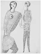 In 1973, thanks to his friend the painter Henry Lejeune, Armand Simon met the singer Julos Beaucarne, then at the height of his popularity, who brought his work to the wider world. His drawings started to sell and he no longer had any material worries. The last eight years before his death in a home in Frameries were enormously productive, leaving a legacy of hundreds of drawings, mostly incorporating symbolic elements of sexuality.