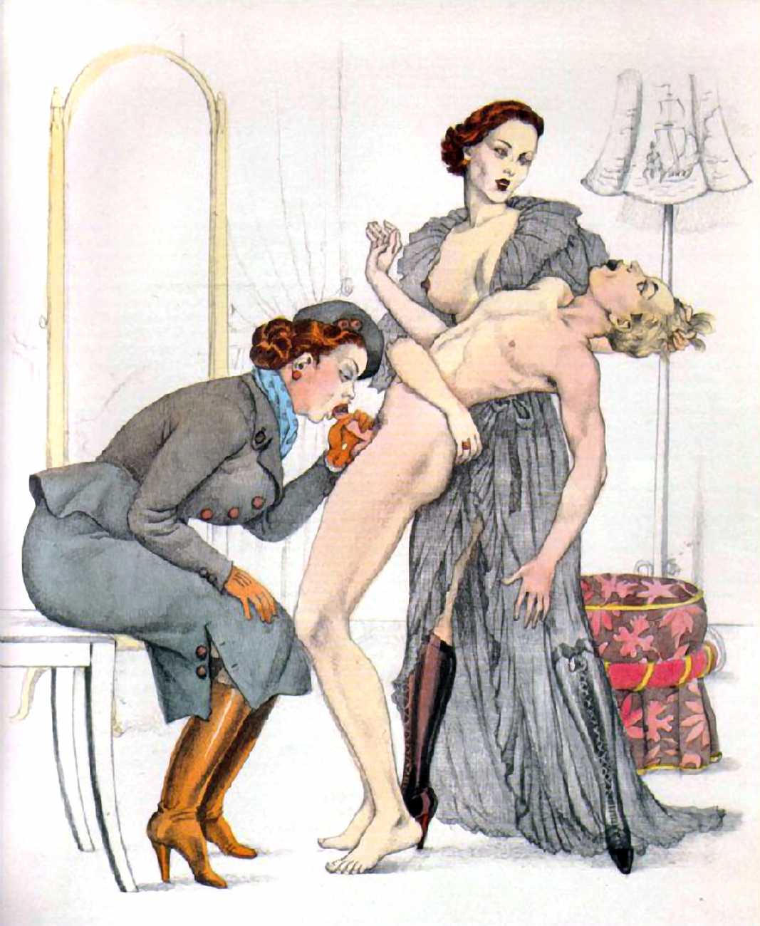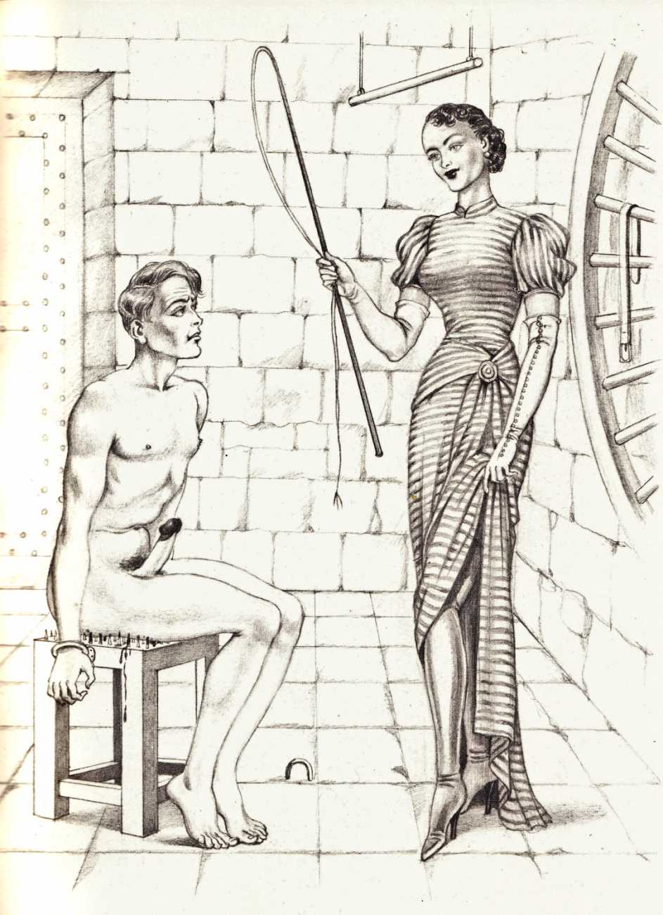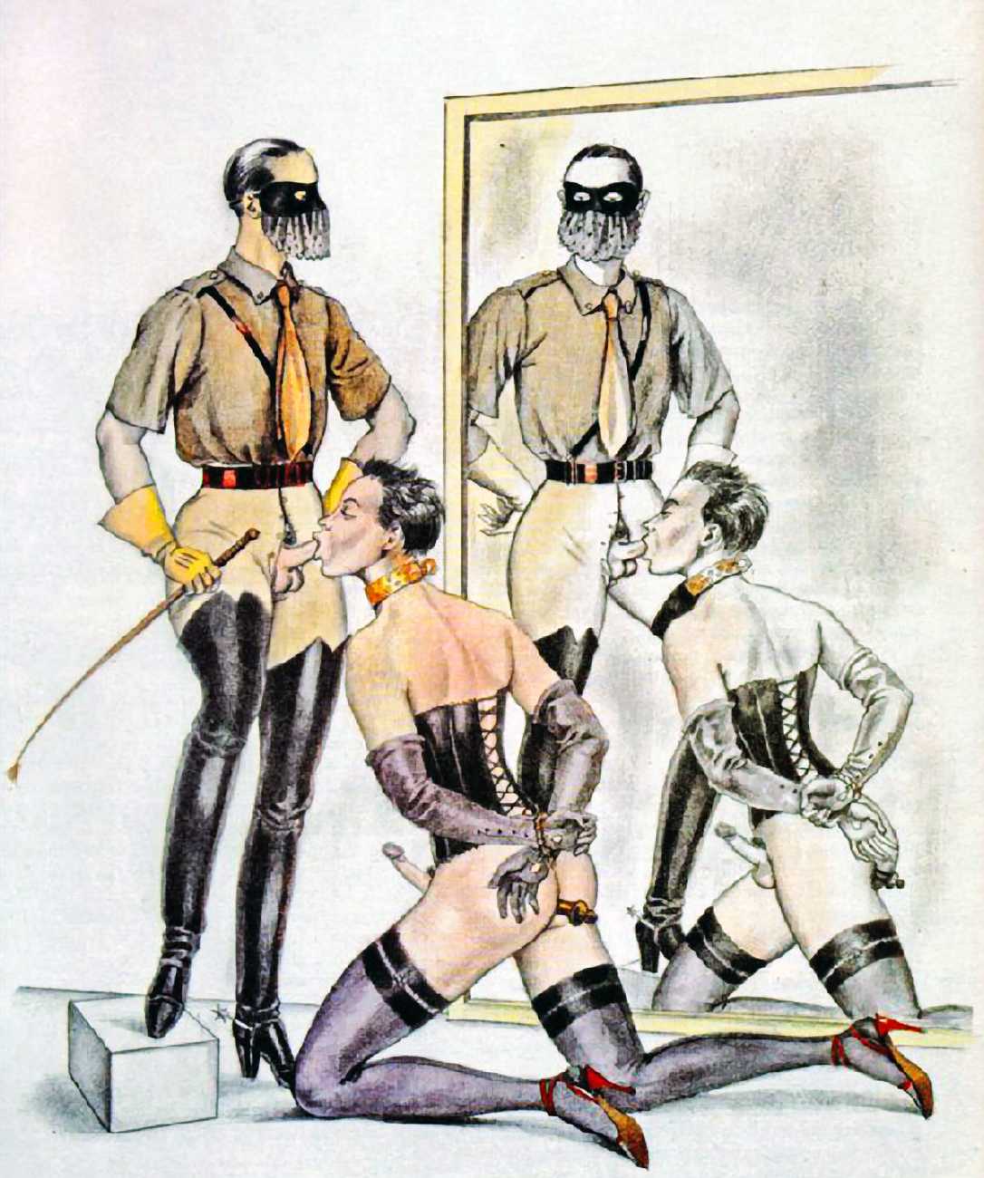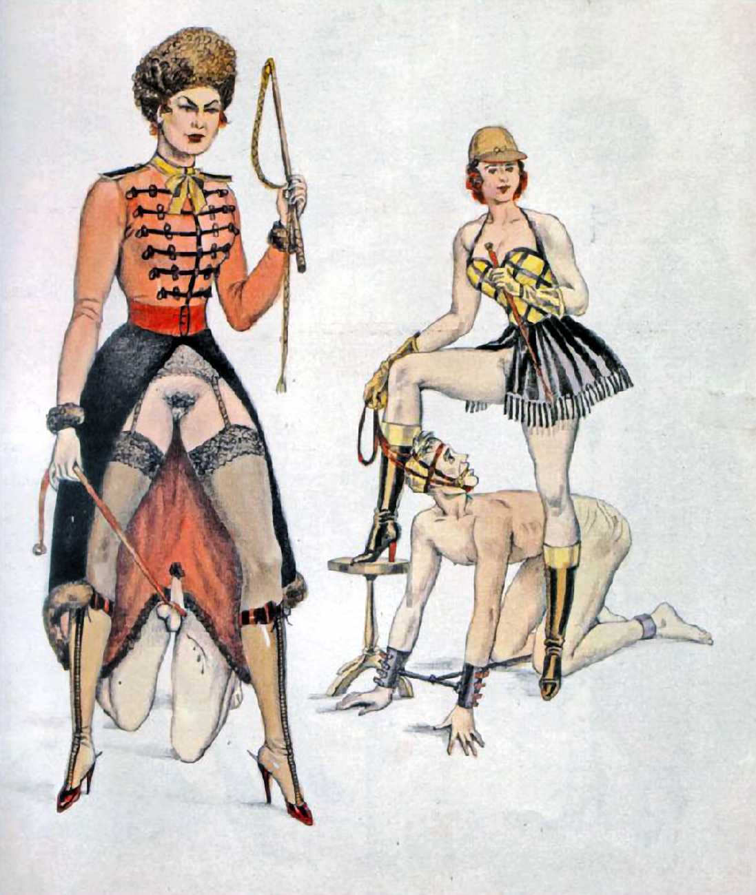 No one knows the true identity of Bernard Montorgueil, so perhaps he (or maybe she?) should really be called ‘Bernard Montorgueil’. What little is known is that Montorgueil was a French artist and writer who produced erotic writing and artwork during the 1920s and 1930s, mainly focused on the world of femdom–malesub, with a dash or two of homoerotica and feminisation. If you thought fetishes like latex, cock-rings, butt plugs, whips, shackles and bondage started in the 1970s, think again!