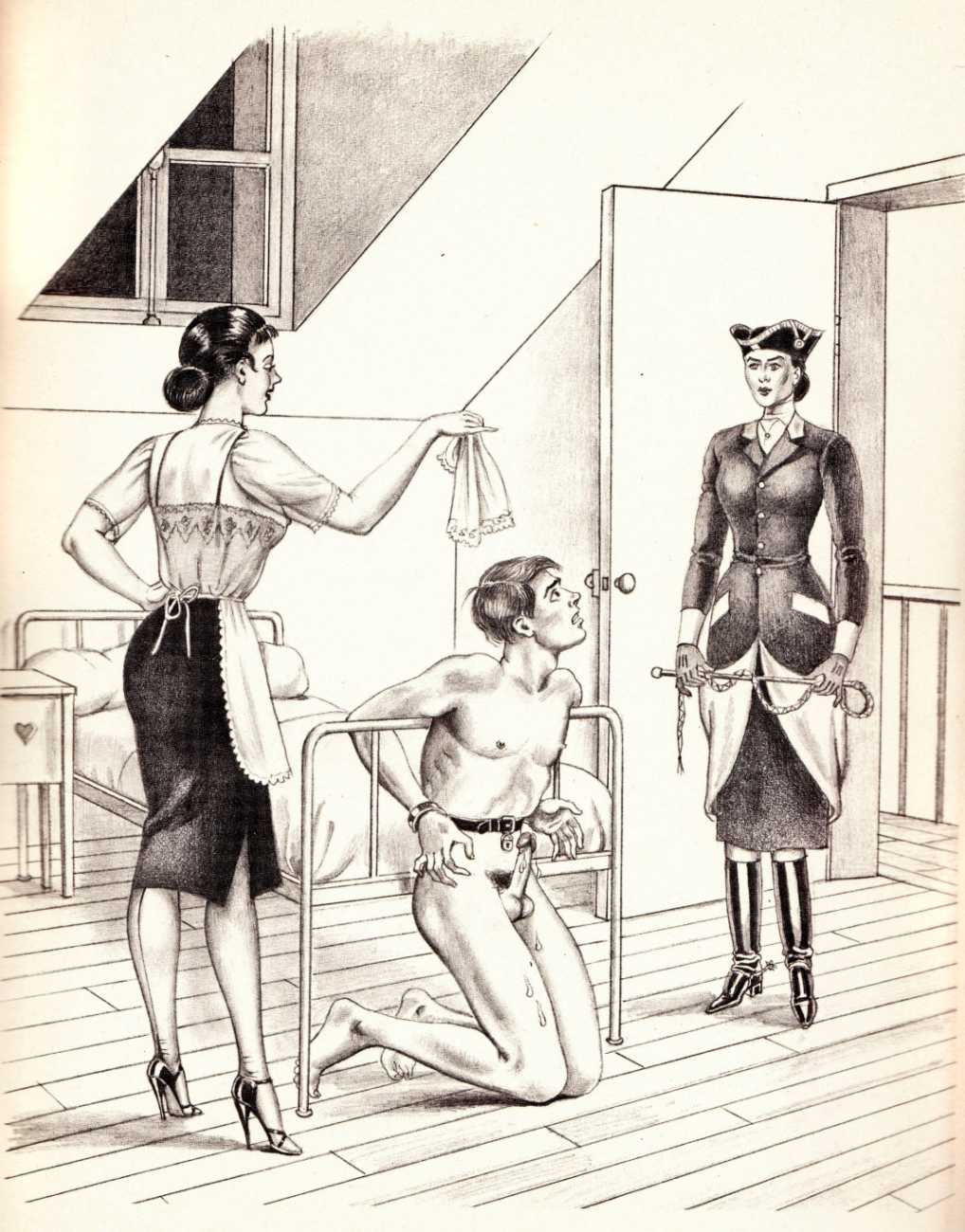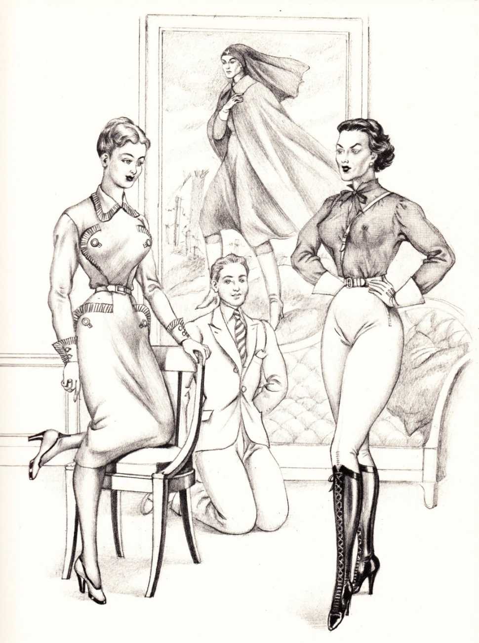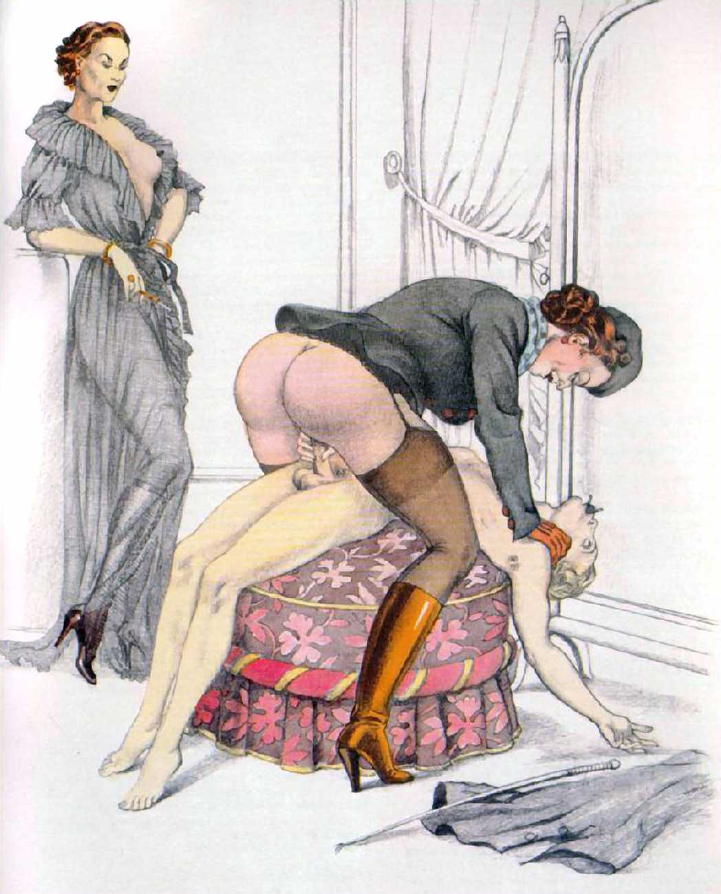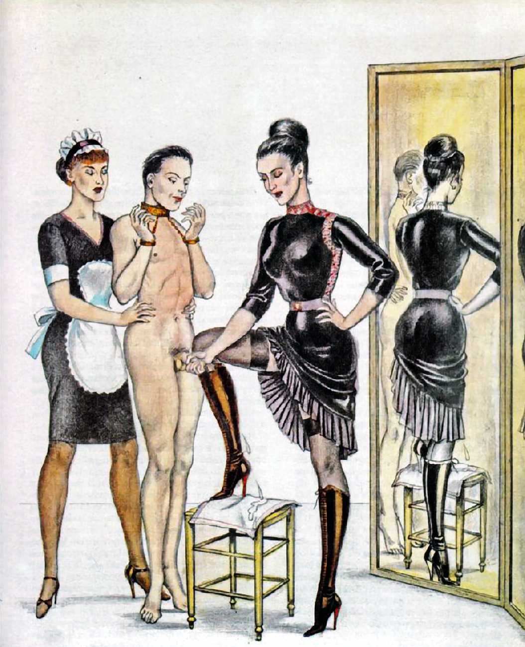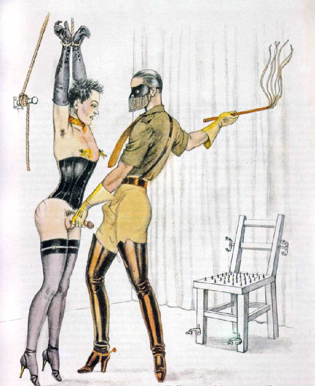 No one knows the true identity of Bernard Montorgueil, so perhaps he (or maybe she?) should really be called ‘Bernard Montorgueil’. What little is known is that Montorgueil was a French artist and writer who produced erotic writing and artwork during the 1920s and 1930s, mainly focused on the world of femdom–malesub, with a dash or two of homoerotica and feminisation. If you thought fetishes like latex, cock-rings, butt plugs, whips, shackles and bondage started in the 1970s, think again!