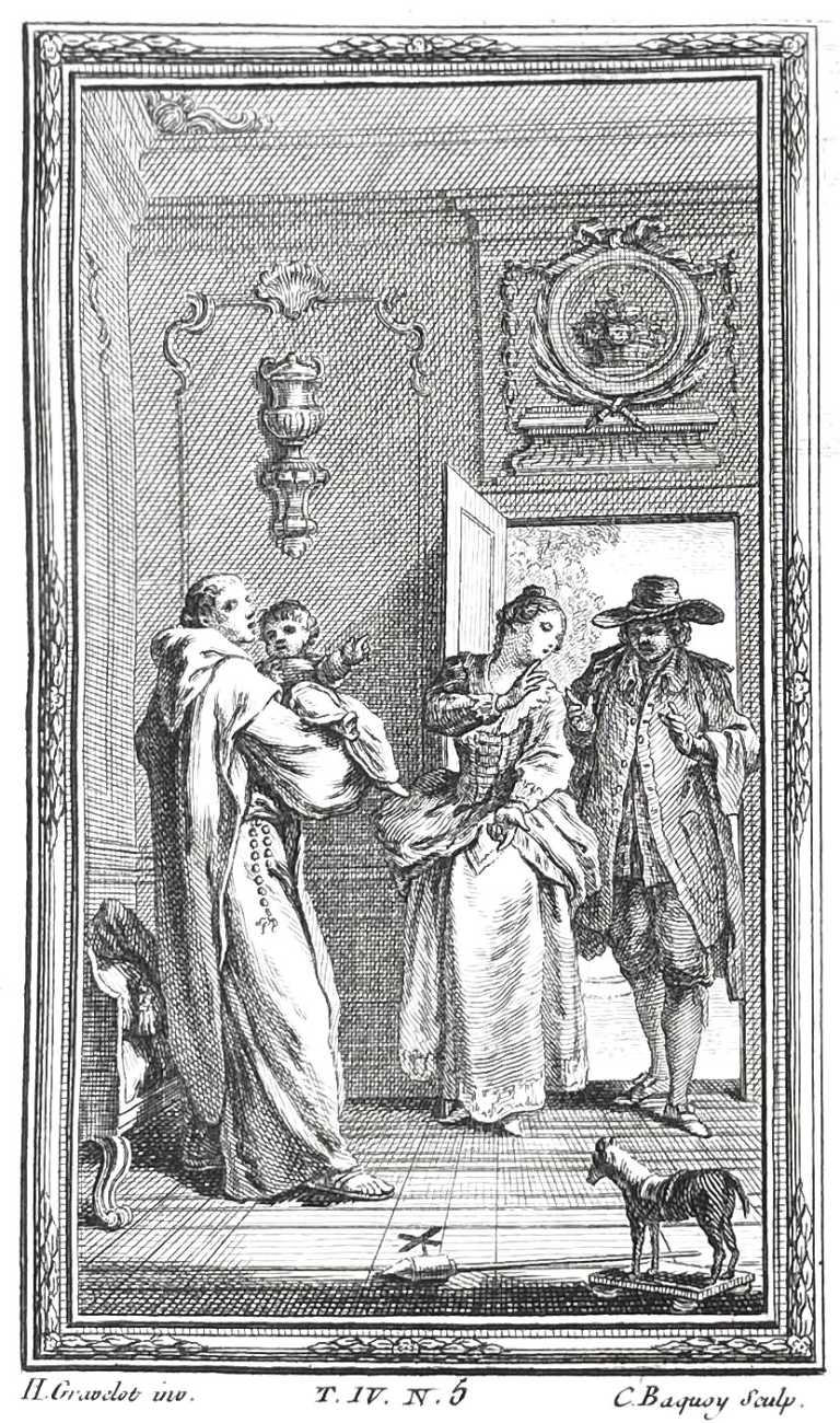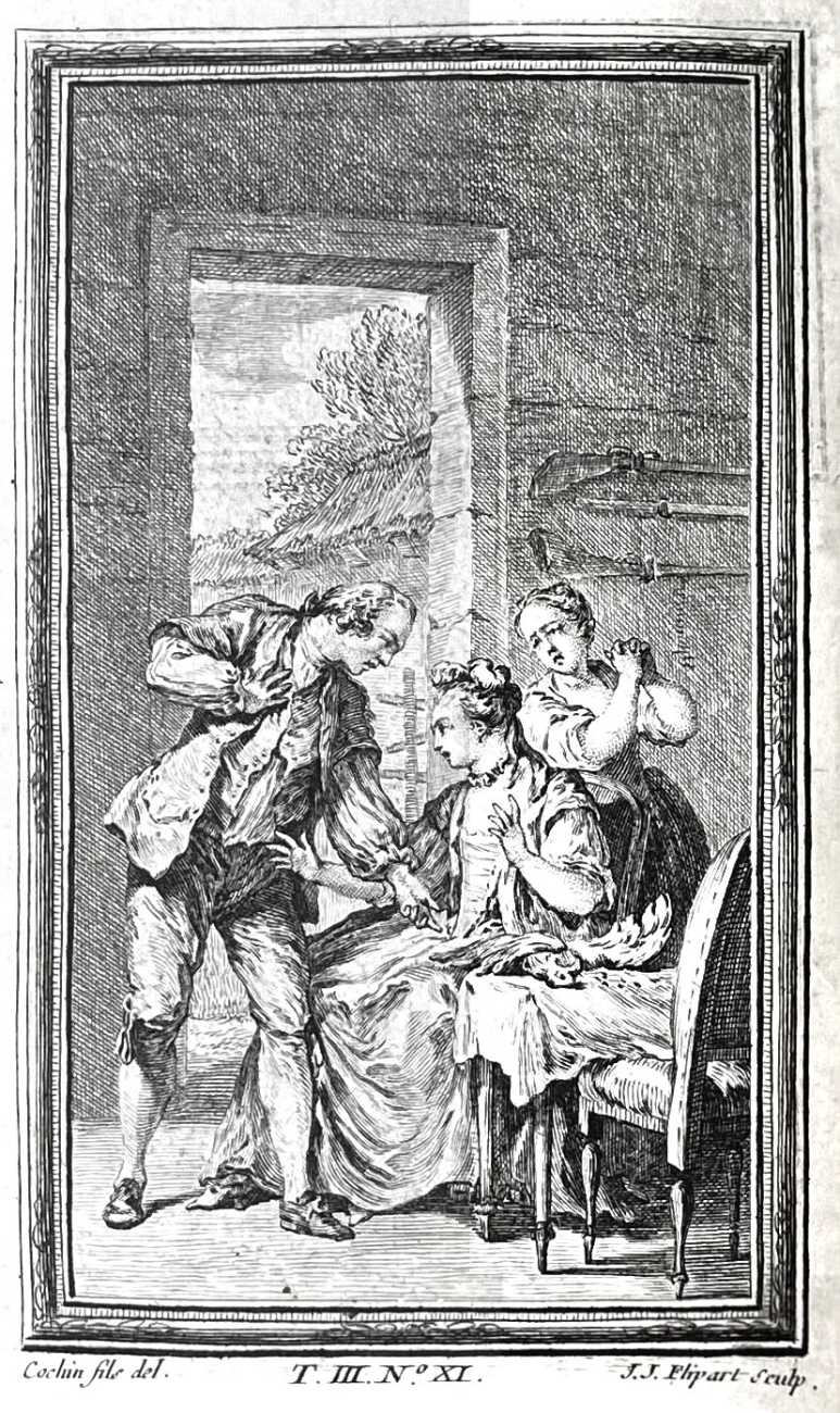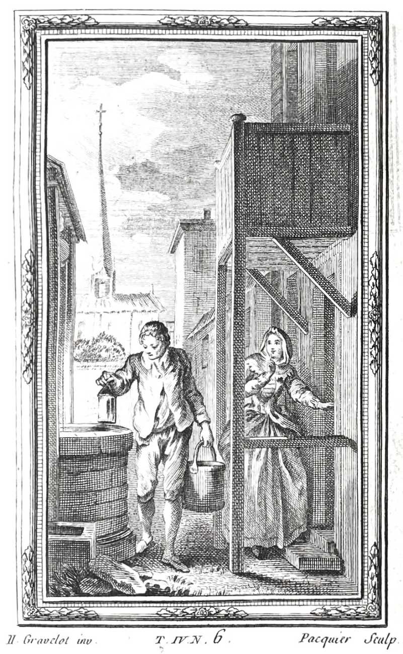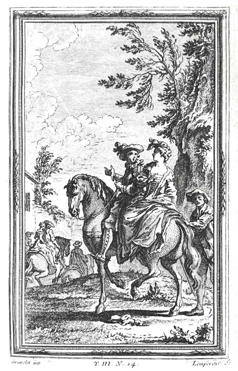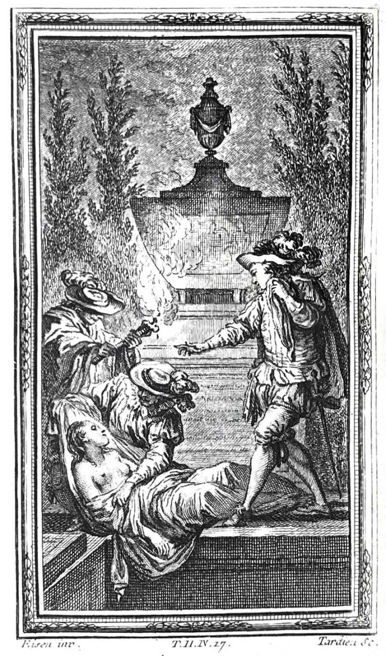 Eisen became best known for his book illustrations, including those for Thompson’s Les saisons (The Seasons, 1759), for the Poémes of Jean-Baptiste Joseph Willart de Grécourt (1761), and for Jean-Jacques Rousseau’s Émile (1762). The Contes et nouvelles en vers par M de la Fontaine (The Tales and Verses of La Fontaine, 1762), printed by Barbou, has long been considered one of the most successful books of the eighteenth century, and includes some of Eisen’s best-known etchings.