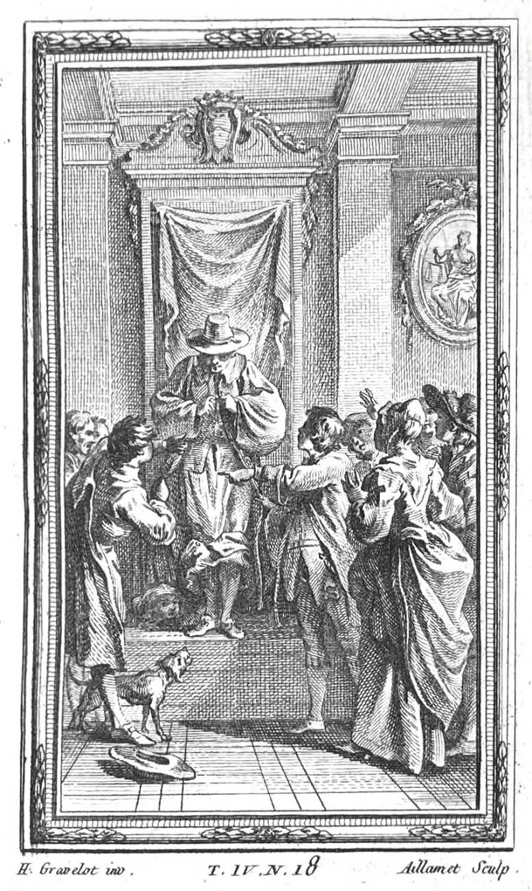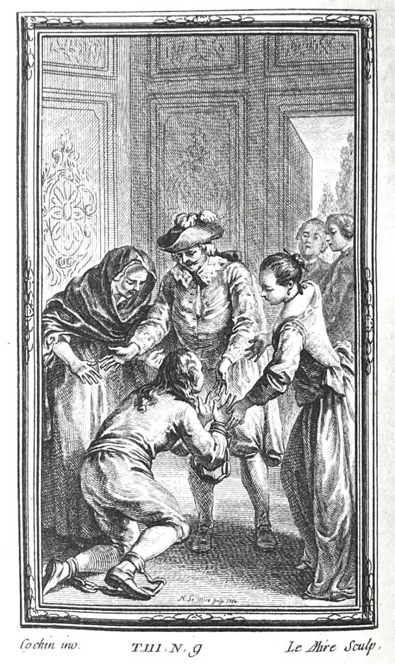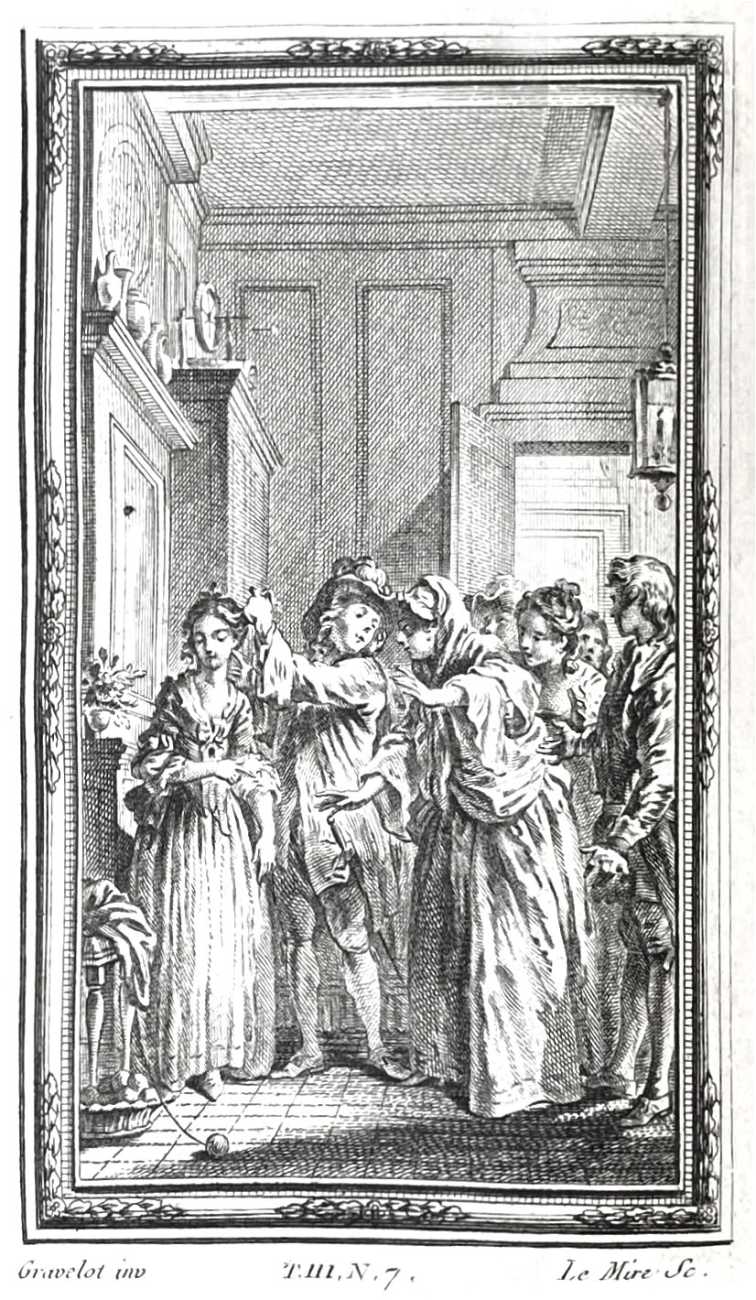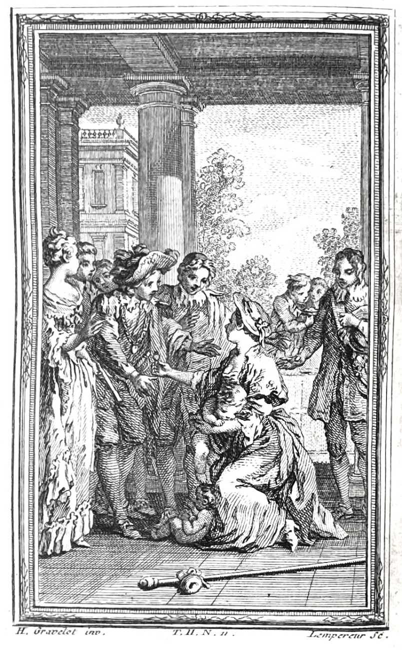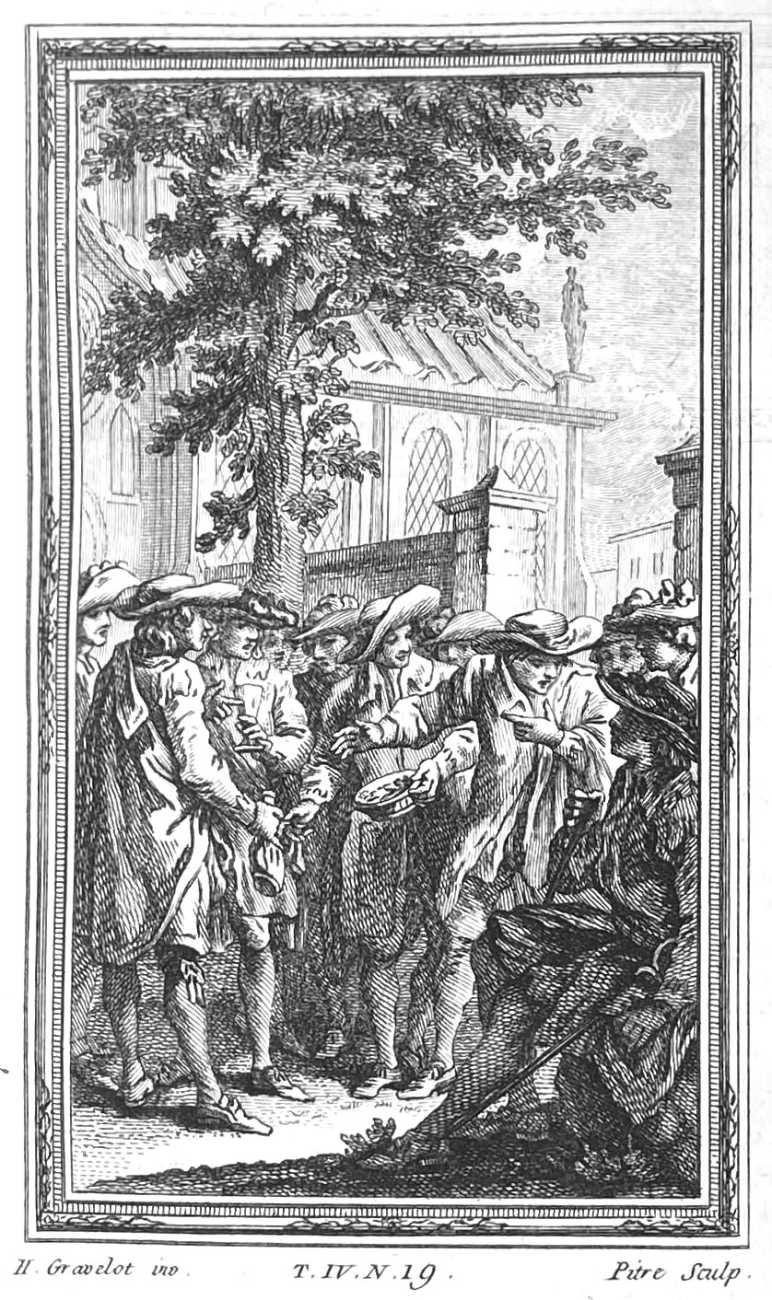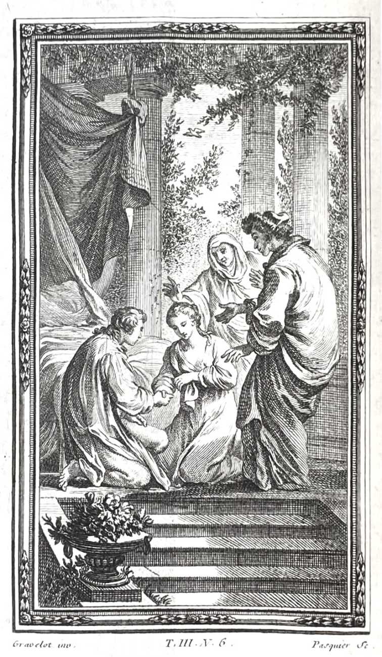 Eisen became best known for his book illustrations, including those for Thompson’s Les saisons (The Seasons, 1759), for the Poémes of Jean-Baptiste Joseph Willart de Grécourt (1761), and for Jean-Jacques Rousseau’s Émile (1762). The Contes et nouvelles en vers par M de la Fontaine (The Tales and Verses of La Fontaine, 1762), printed by Barbou, has long been considered one of the most successful books of the eighteenth century, and includes some of Eisen’s best-known etchings.