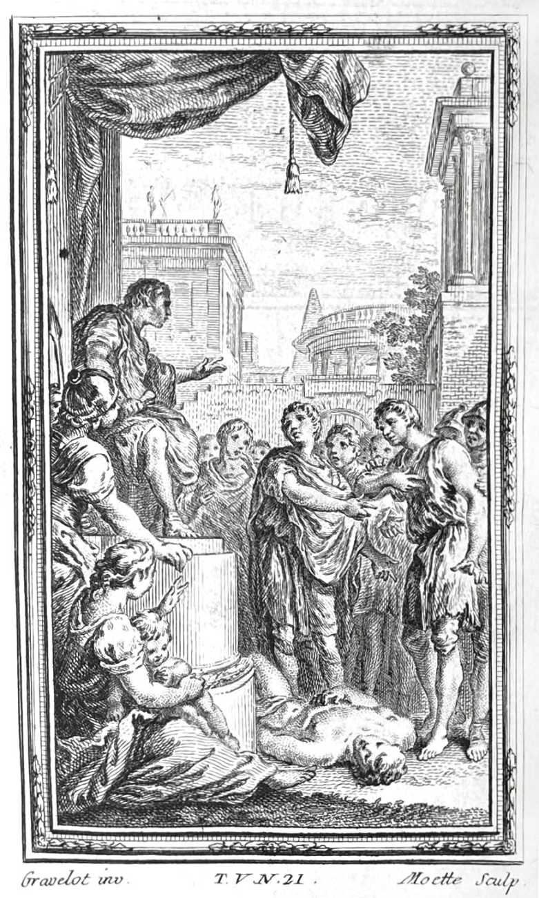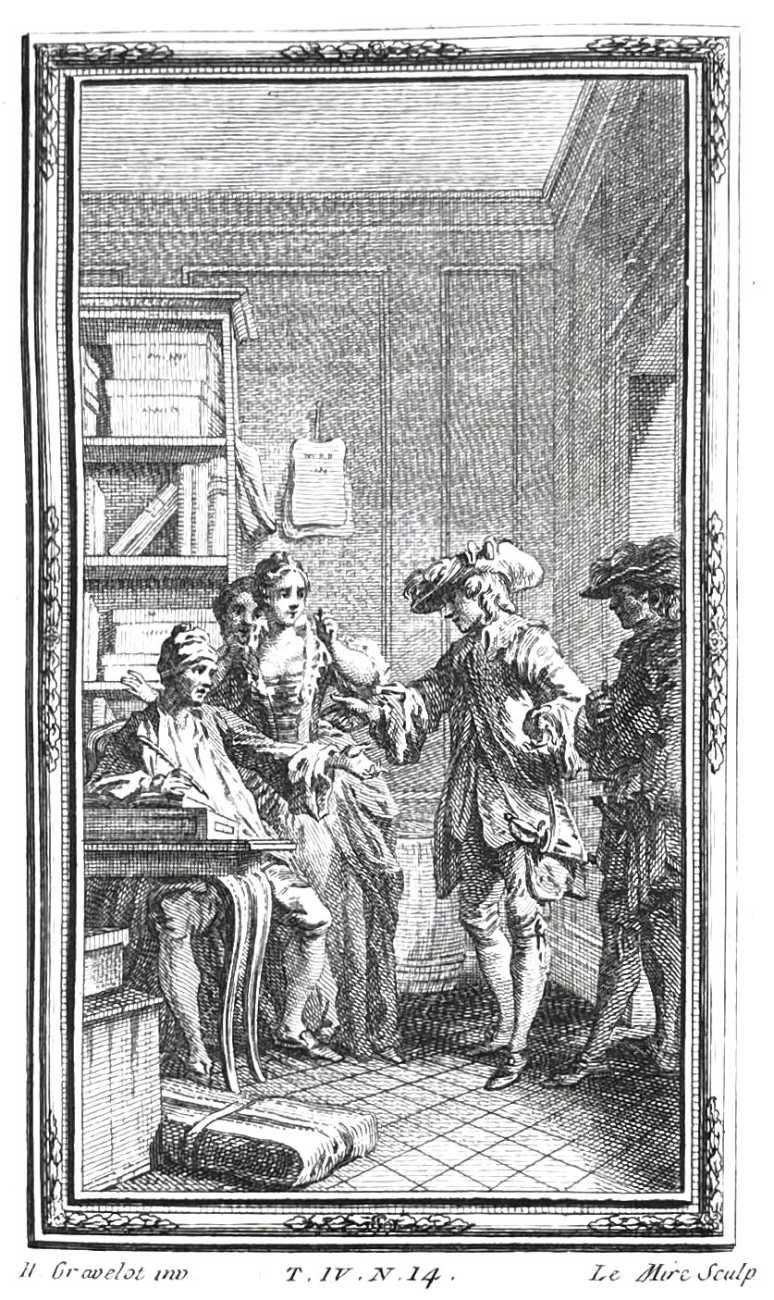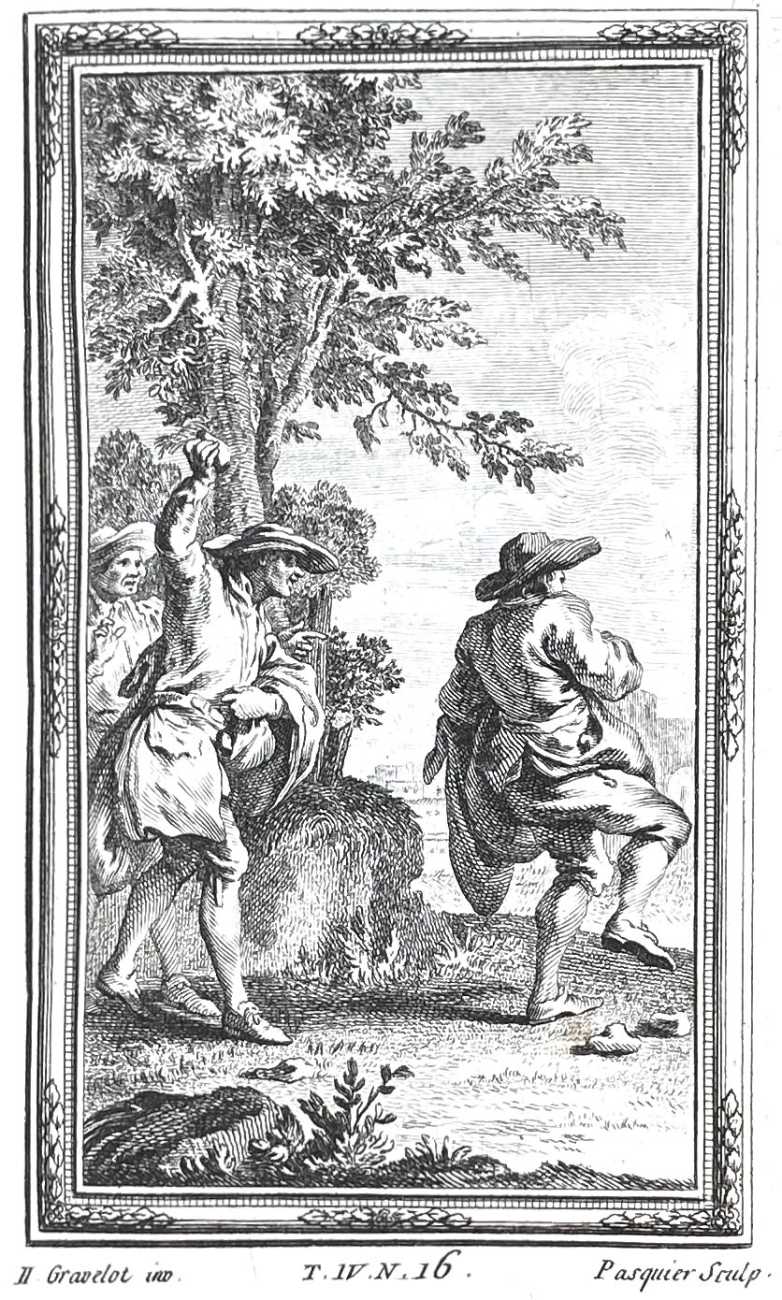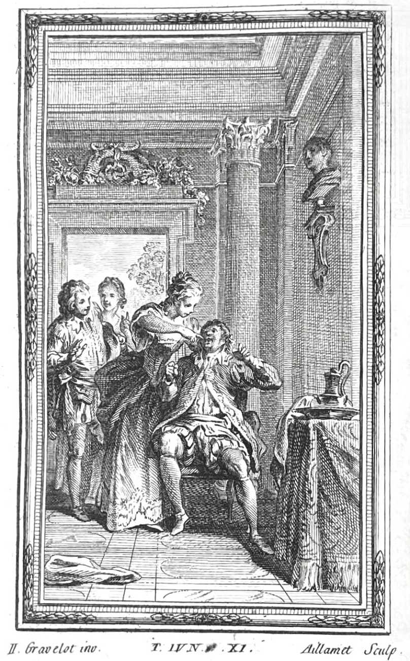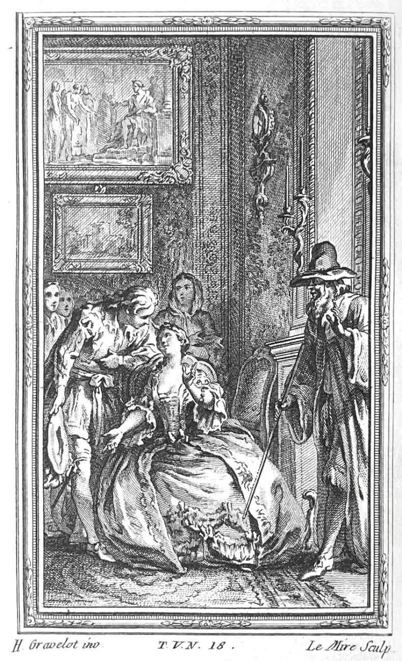 Eisen became best known for his book illustrations, including those for Thompson’s Les saisons (The Seasons, 1759), for the Poémes of Jean-Baptiste Joseph Willart de Grécourt (1761), and for Jean-Jacques Rousseau’s Émile (1762). The Contes et nouvelles en vers par M de la Fontaine (The Tales and Verses of La Fontaine, 1762), printed by Barbou, has long been considered one of the most successful books of the eighteenth century, and includes some of Eisen’s best-known etchings.