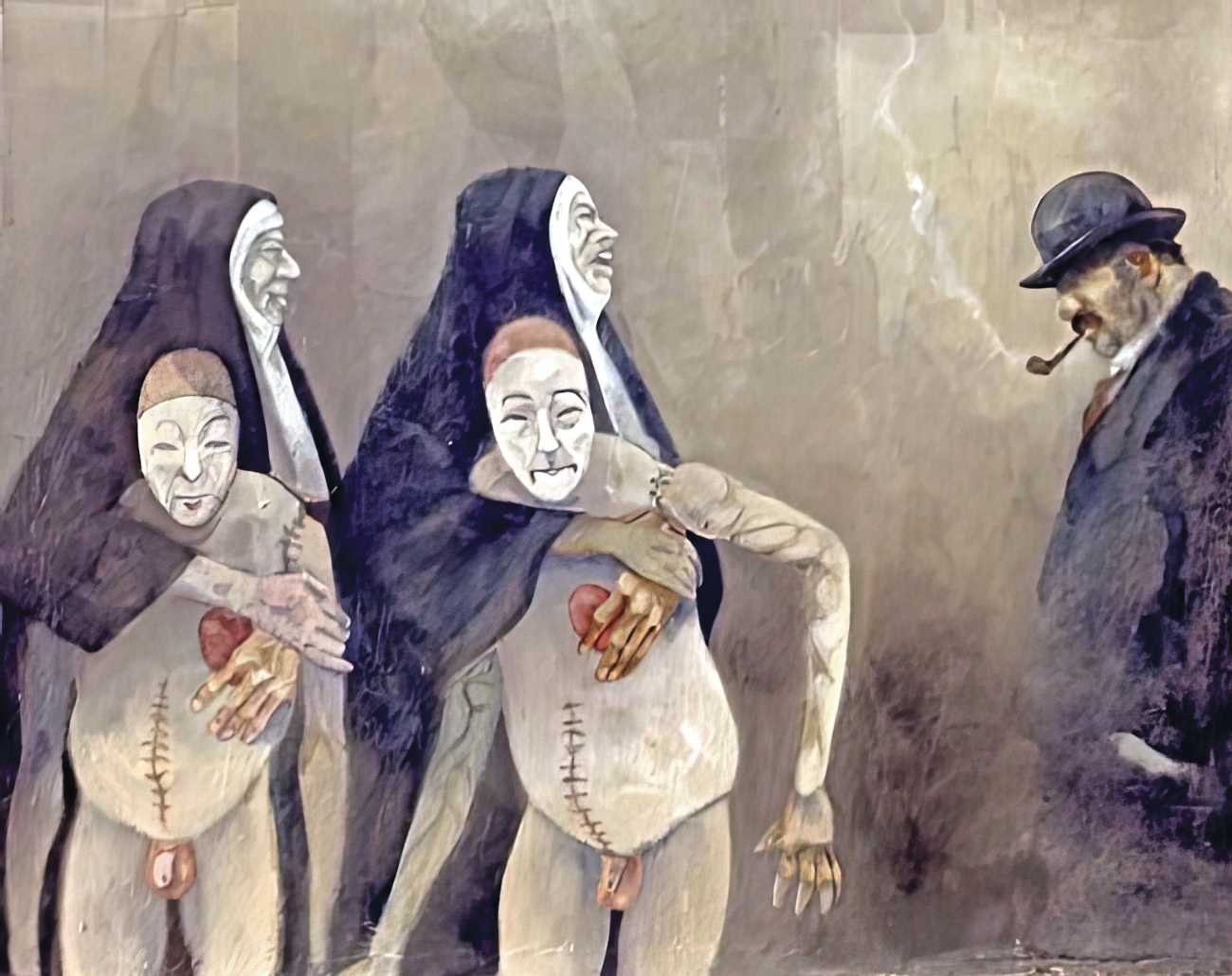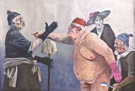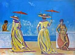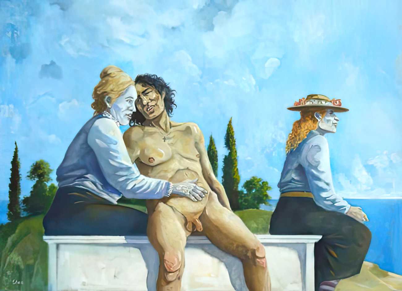 After leaving art school he travelled around Europe for a while before eventually settling down to live in west Penwith in Cornwall, getting married and spending twelve years living in the artistic hub of St Ives, then regarded as a British outpost of abstract art. That had little influence except that none of the local galleries was prepared to even look at the work of a figurative artist, but he made a living mostly from landscape painting. After his marriage broke up he left Cornwall and travelled the world for several years until, feeling a need to be settled, he went to live in south Devon where he has lived ever since. Apart from painting he did a little teaching, and began to think of specialising in art therapy, and went back to college at Dartington College of Art. But the art world had changed, and by then he was exhibiting and his work was selling well, so he gave up the idea to concentrate on painting.