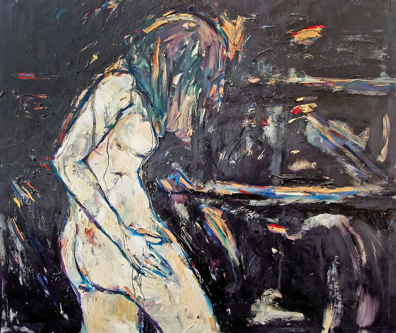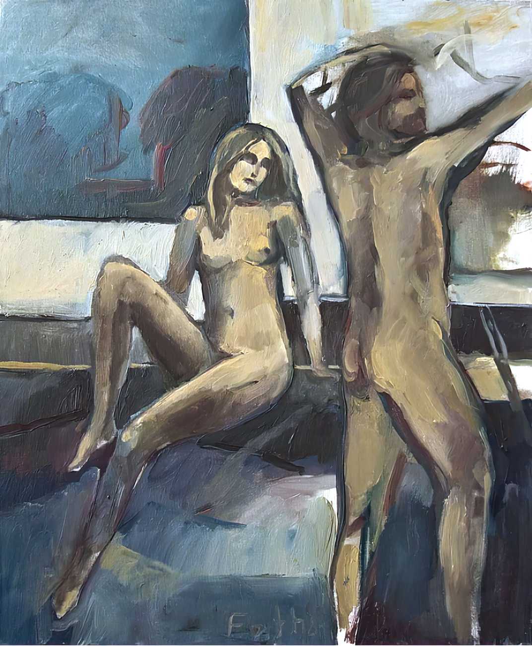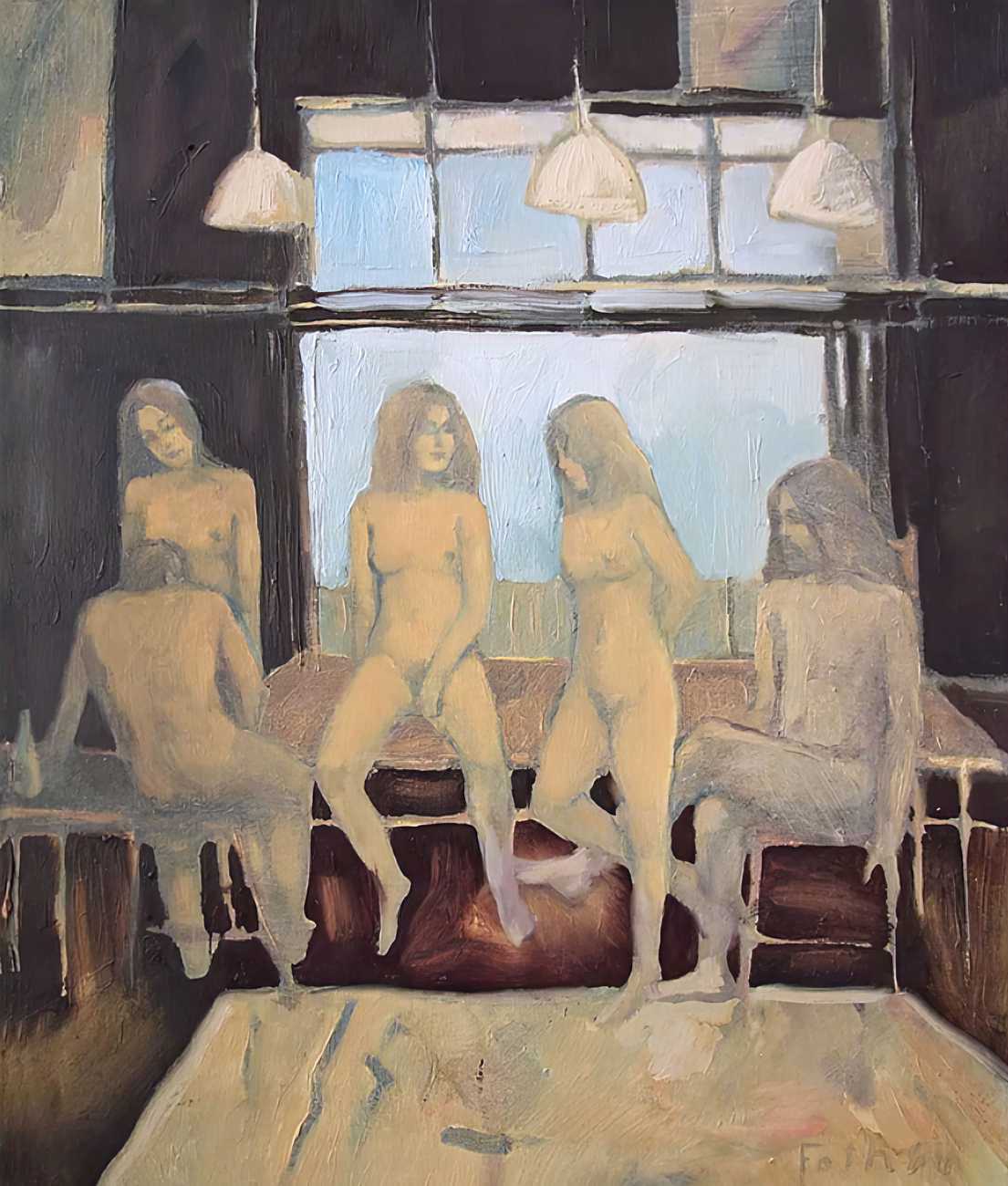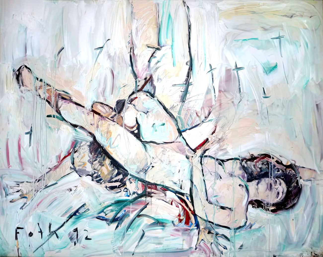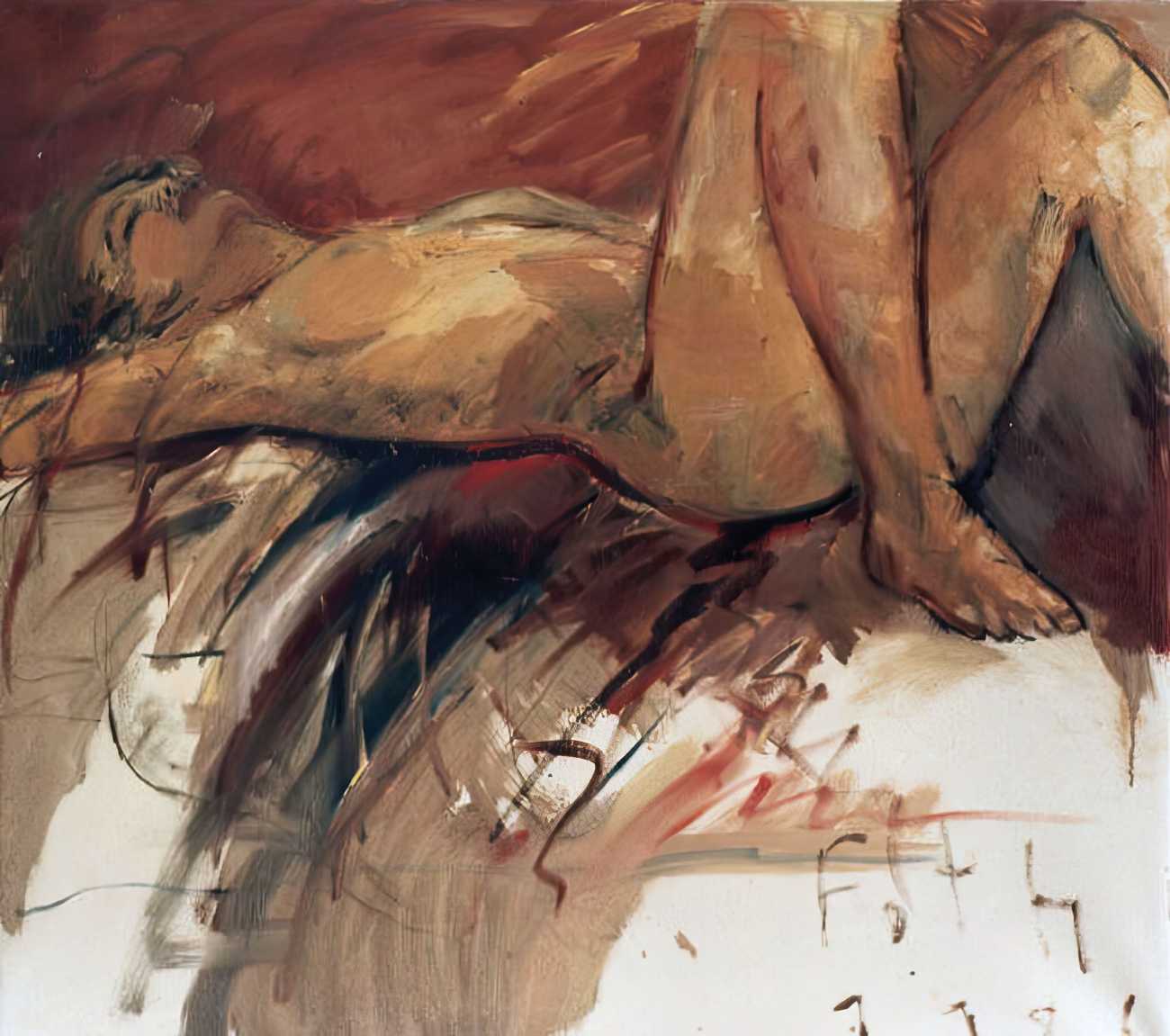 Throughout his career Detlev Foth has repeatedly returned to the naked body as a central subject, both singly in paintings and drawings of female models (sometimes including himself), and also in scenes of sexual and sensual encounter. When working on his large paintings of naked bodies he often likes to work naked himself, a real commitment to both subject and the work in progress.