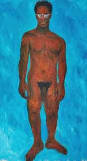 Hall is an experimenter, both of subject and medium, much of his work appearing naive, but by stressing the commonplace he helps his audience to concentrate and appreciate the beauty and meaning in the unadorned body, naked genitals, the seemingly banal landscapes. He has worked in watercolour and oils, and has created sculptures and other three-dimensional art objects. Portraits of gay male friends of different nationalities, usually depicted naked or semi-naked, form an important part of Hall’s work. These are not distanced, classical nude studies, but honest images of everyday homosexuality.