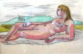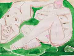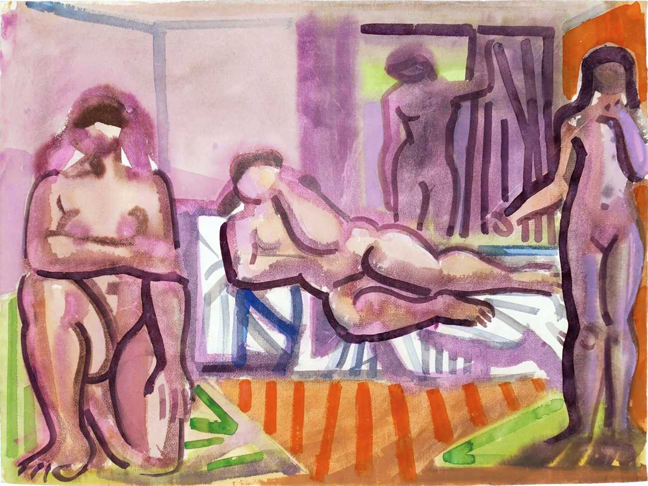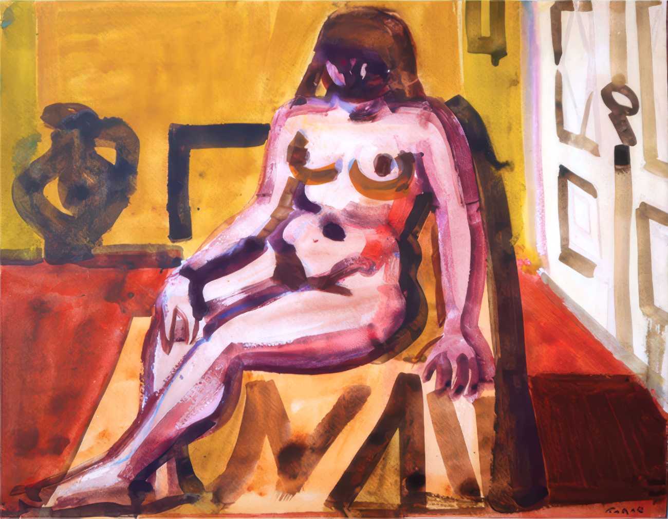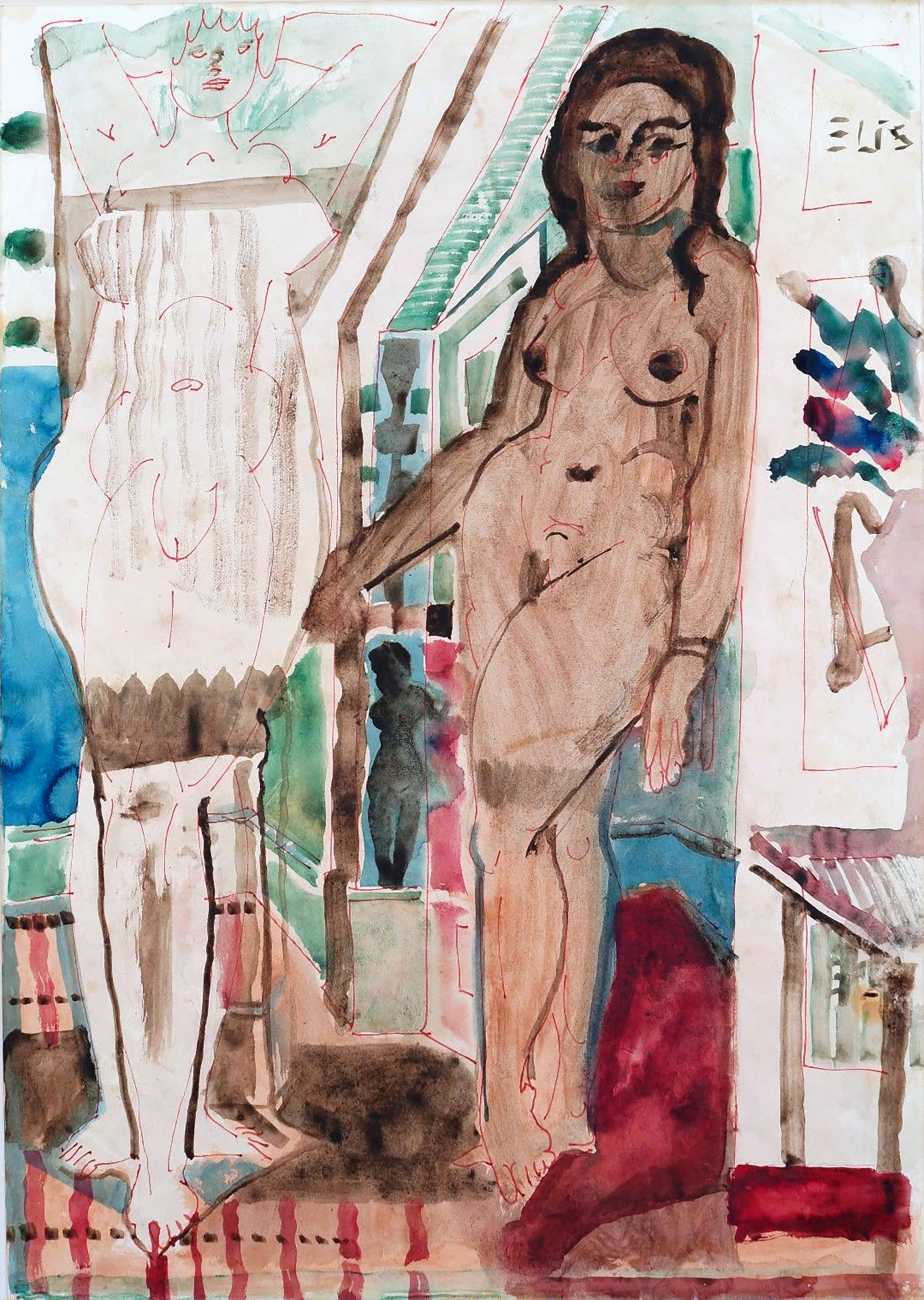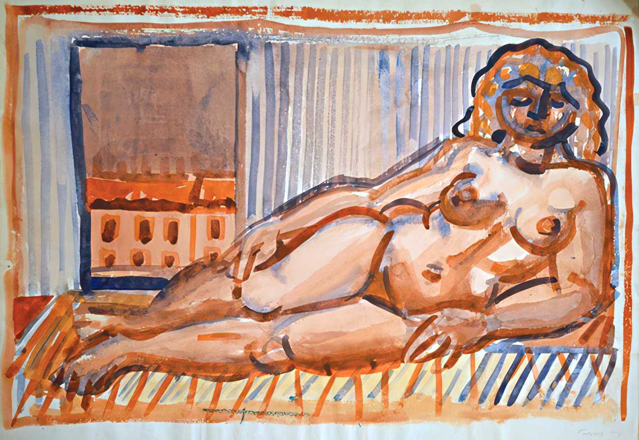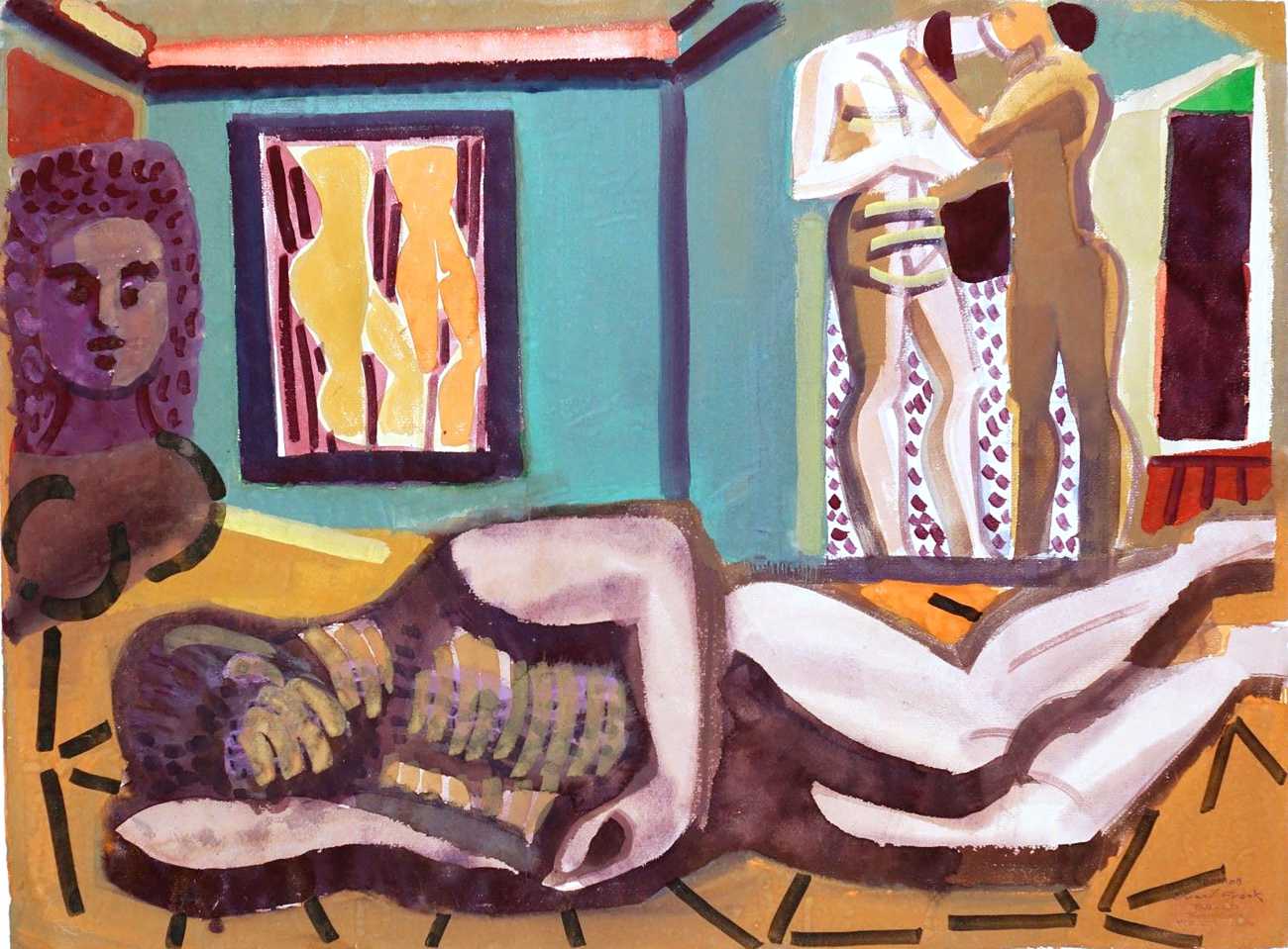 Frank became known exhibiting throughout Germany and in South America, mostly for his Mediterranean landscapes, which after 1960 became increasingly abstract. Less known during his lifetime were his paintings and drawings of naked models and groups of figures, many of which are explicitly sexual, demonstrating a repressed aspect of the artist’s imagination which may have been linked with his mental state.