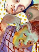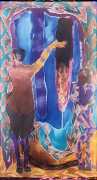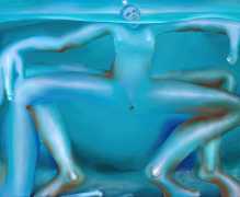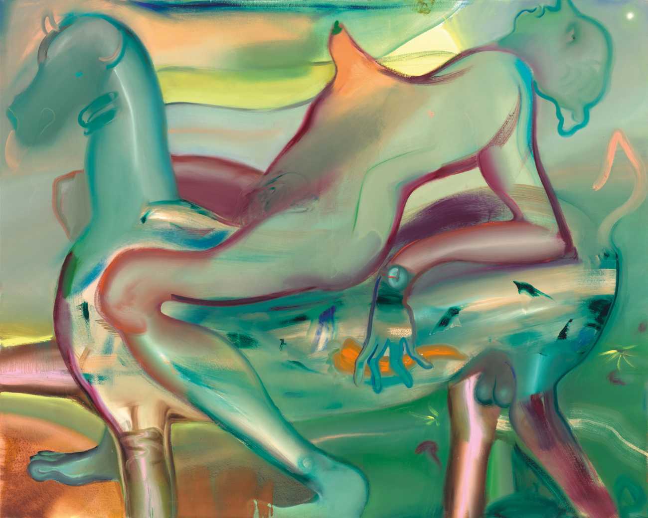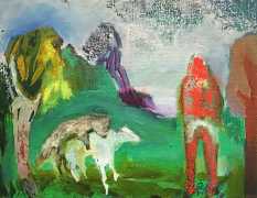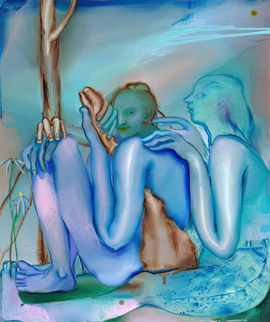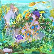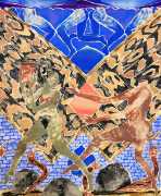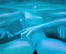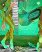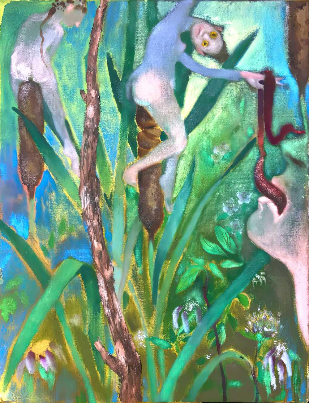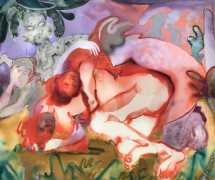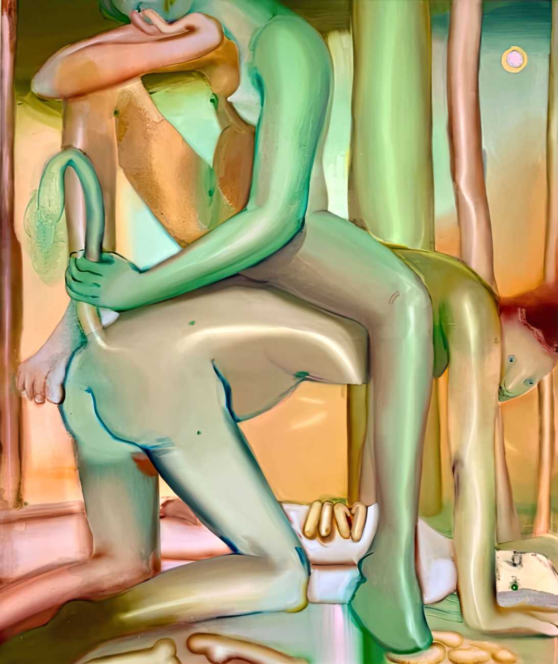 Glaessner uses water-dispersed pigment and inks in her absorbing, vibrant scenes and portraits. Her paintings, shifting between reality and dreamlike settings, explore humans in all their imperfect forms, including elements from nature, mythology, and her own personal experiences. She works with different painting processes and techniques to build on a personal narrative drawing on memory, ritual, contemporary culture, art history, cultural myths and folklore, constantly moving between figuration and abstraction but always using colour as the language.