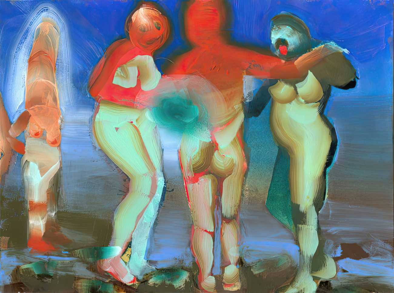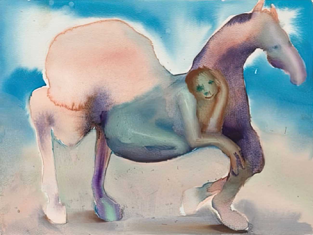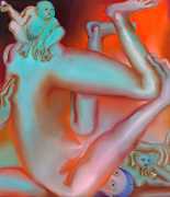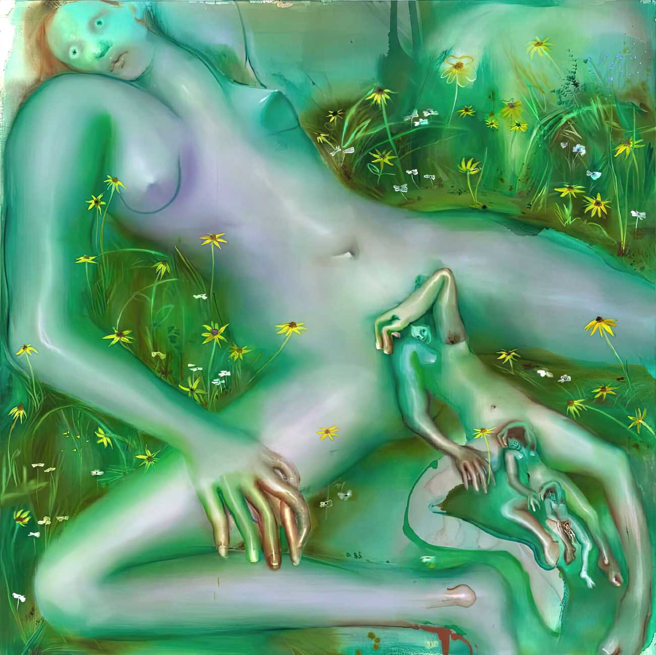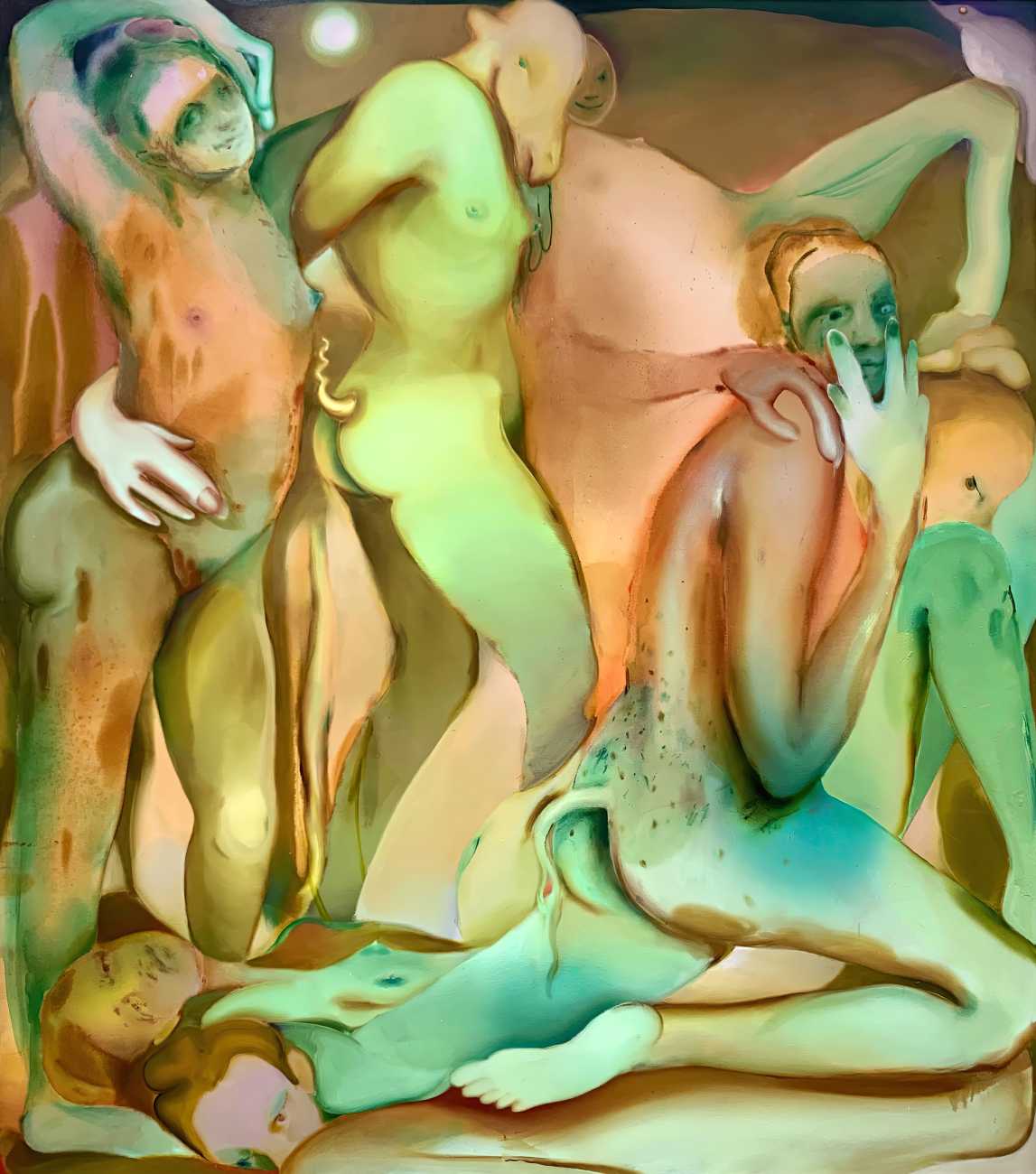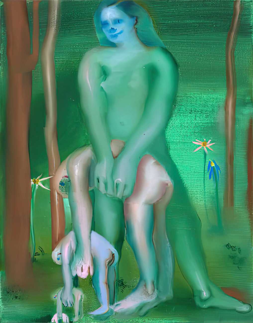 Glaessner uses water-dispersed pigment and inks in her absorbing, vibrant scenes and portraits. Her paintings, shifting between reality and dreamlike settings, explore humans in all their imperfect forms, including elements from nature, mythology, and her own personal experiences. She works with different painting processes and techniques to build on a personal narrative drawing on memory, ritual, contemporary culture, art history, cultural myths and folklore, constantly moving between figuration and abstraction but always using colour as the language.