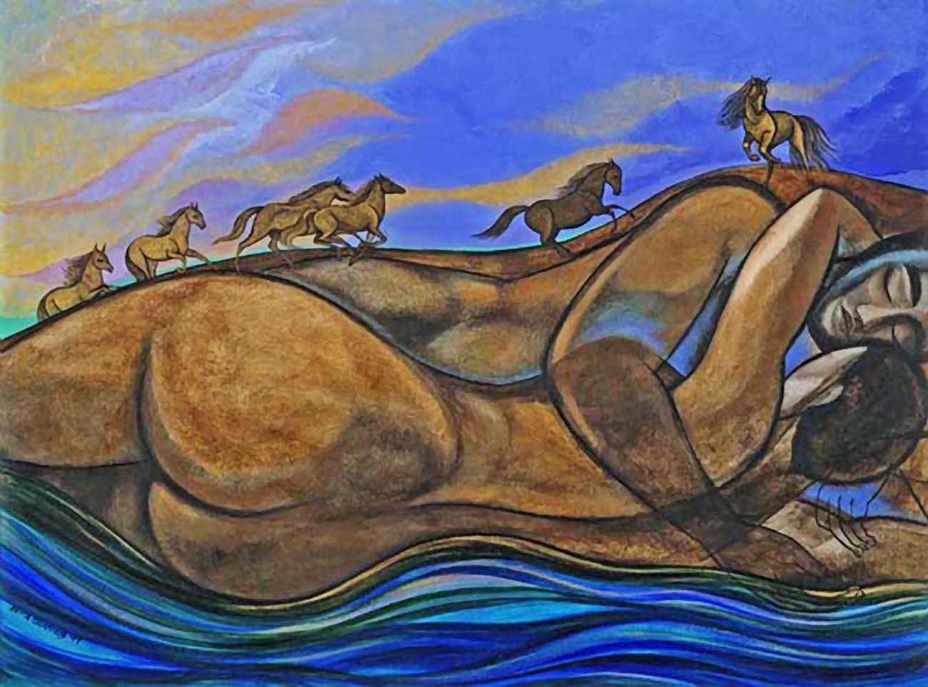 I see how some women artists equate the earth with their own bodies, some who create works with earth and other natural elements, and others who work using photographs or video with a ‘Goddess’ attitude or philosophy behind it. Although many of those works are very beautiful and often poignant, I’m not sure that they are very different in kind than a female (or male) nude ‘served up’ erotically to the viewer. They are still women looking at women – which apparently women prefer to looking at men from all the studies I’ve ever seen. This is an appreciation for everything that a woman’s body contains –symbolism, magic, creation and eroticism.