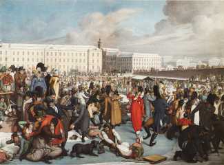In 1805 he married, and he and his wife settled in Leipzig, where he specialised in portrait miniatures. In 1814, following the war in which Napoleon was defeated, he went to Paris to create and sell etchings related to the victory of the winning coalition. He remained in Paris until 1817, when he returned to Leipzig and created a series of etchings about Paris, published by the prestigious firm of Brockhaus, and for the next twelve years worked almost exclusively for Brockhouse, as chief engraver for the magazine Urania. His best-known publication, Charakterszenen aus dem Leben in Paris (Character Scenes from Life in Paris), with twenty-four coloured etchings, appeared in 1819, and during the 1820s he produced watercolours which suggest that he visited Russia and the Ottoman Empire. In 1828 he became a Professor at the Hochschule für Grafik und Buchkunst in Leipzig, where he produced the important portfolio Leipziger Messe Szenen (Leipzig Fair Scenes).