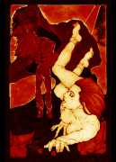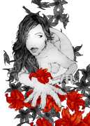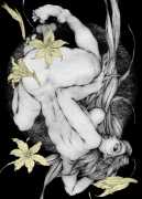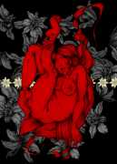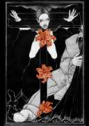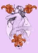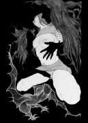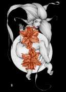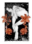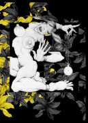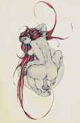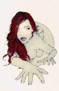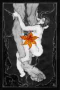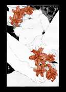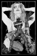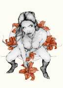 Fellow artist Kayla Freedman has written of his work, ‘Jan van Rijn has a very distinctive style, taking more standard erotic model poses and rendering them in an exaggerated and sexually corpulent fashion. There are no anorexic waifs – the bodies are fleshy and unashamedly sexual. His figures seem to revel in their exhibitionism and wantonness. His erotic drawings cover straight aspects of sexuality, but then also stray into more fetishistic iconography – high heels, long nails, lingerie, bondage, piercing and transsexuals. The style of van Rijn’s erotic art is very simple, just black, white and grey, but while these images may at first seem bold and simple they are anything but. The quality of the lines and shading is deliberate, the detailed layering of fine lines in the hair, the lips, the nipples, but also the careful rendering of the delicate folds. And the drawings which push the distortion of angle and view, or where the body seems to expand to fill every crevice of the canvas – it is this attention to detail where the work becomes art.’