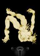 Van Rijn (hinting at the link with Rembrandt van Rijn, the greatest of all Dutch painters) grew up in the Netherlands, but is now based in southern Germany, as he says ‘backed up by my beautiful female companion and the mostly moderate use of the flavonoids, polyphenols and phytoalexins to be found in French red wine and some rieslings of the mid-Rhine valley’. As well as producing artworks in a variety of media including dry point etching, mezzotint, engraving and digital prints, he is also a stonemason and sculptor.