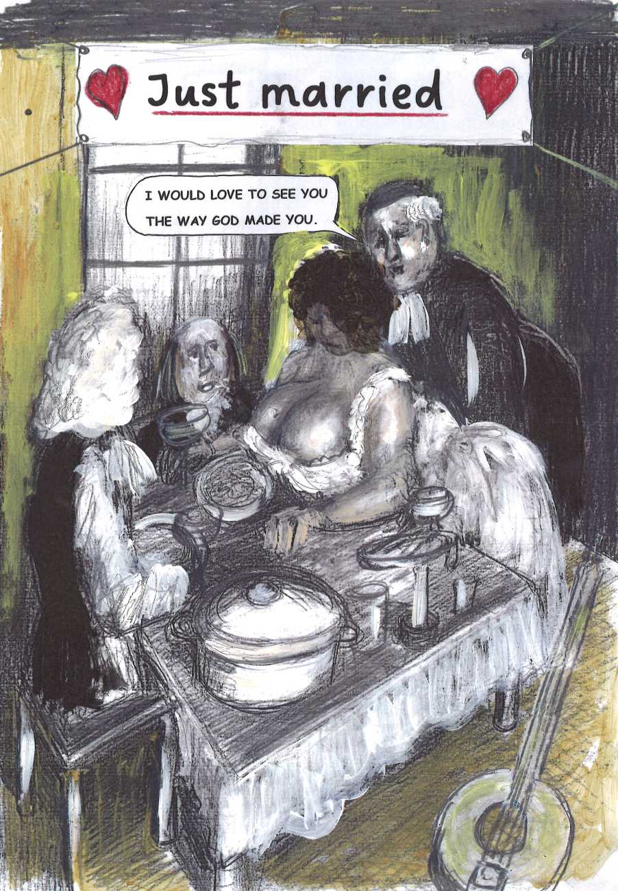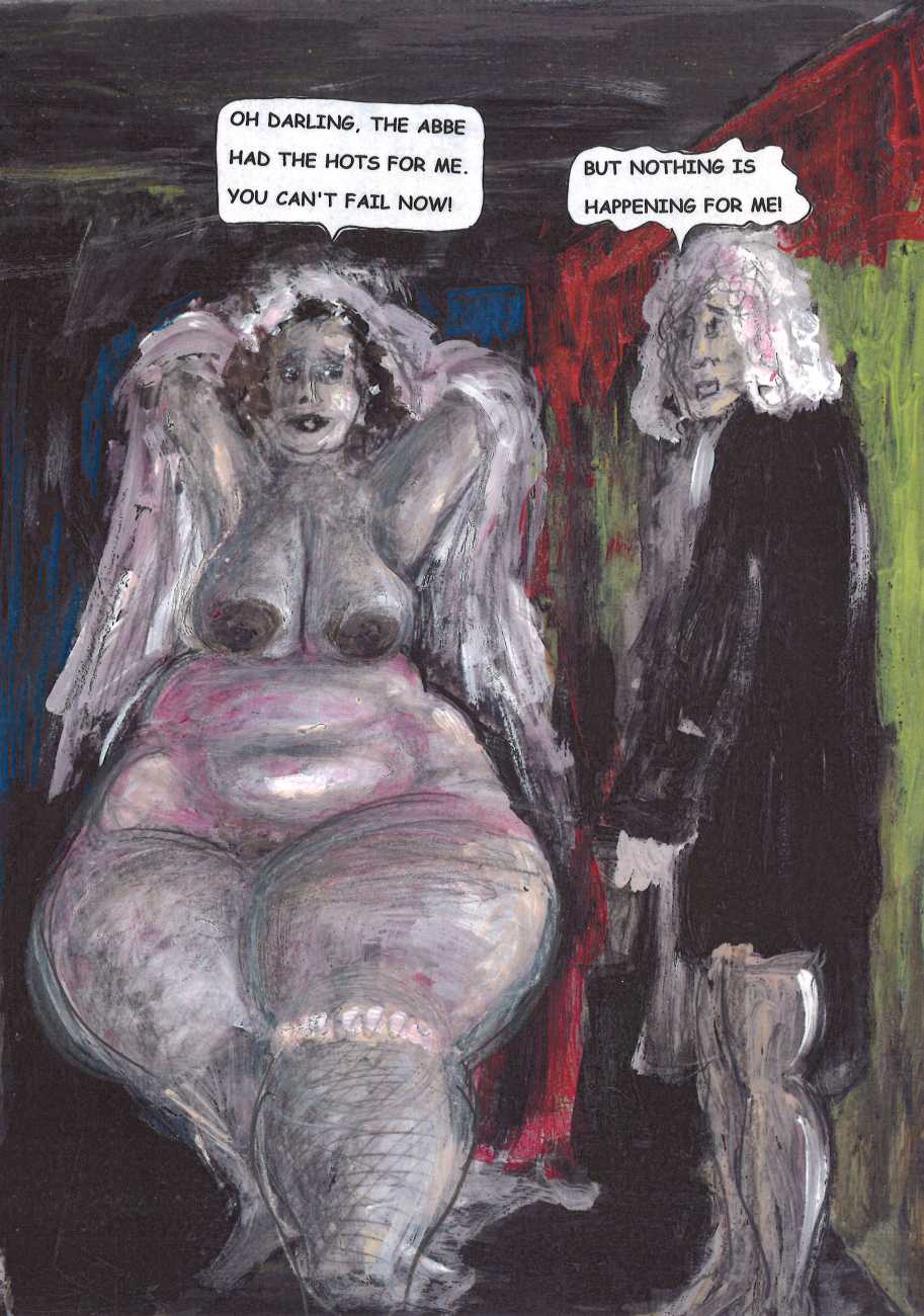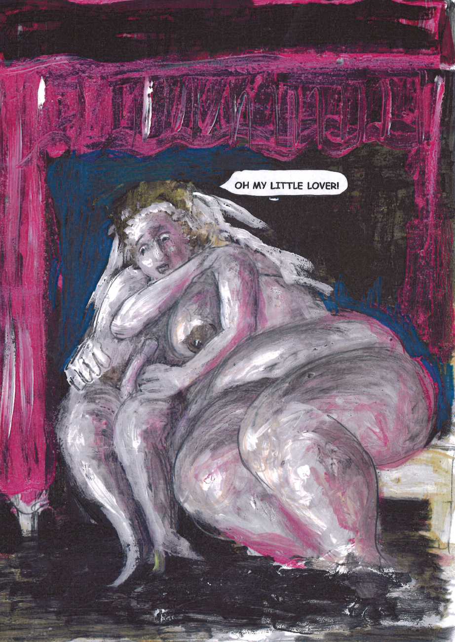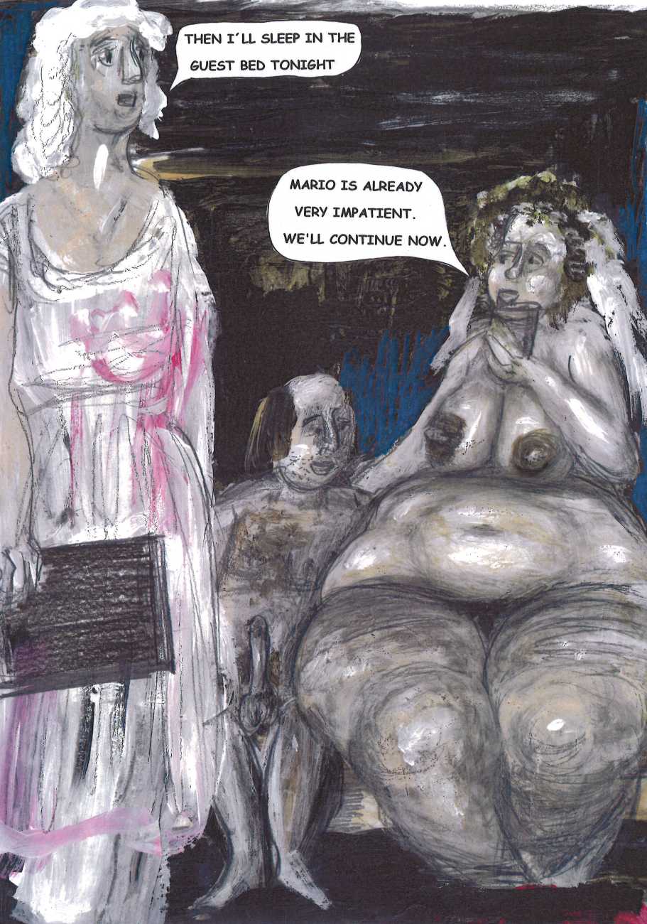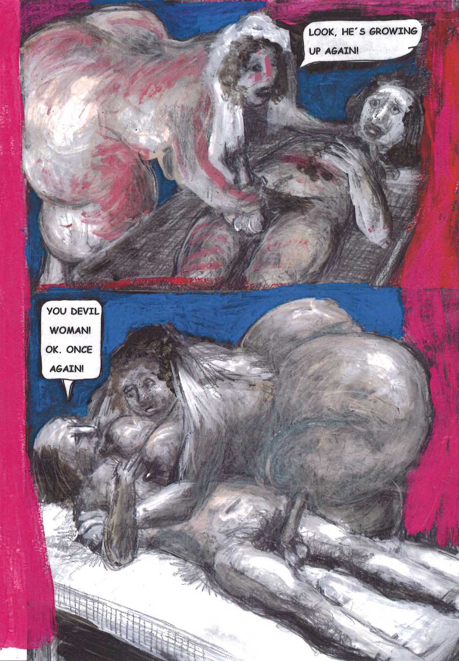 A majority of my images belong to graphic novels. Here too I am a blatant outsider, because my stories – mostly on historical subjects – follow the old tradition of picture stories. Thematically I process classic material such as Boccaccio’s Decameron, stories from the Bible, Lady Chatterley’s Lover, and the life of the philosopher Rousseau, but I have also created my own narratives such as the abbey on the banks of the Meuse or the Pygmalion project. Over time I have created well over 1,200 illustrations, and will continue to add new ones as long as I don’t find myself in a deep, sad hole again or terrible political events throw me off course.