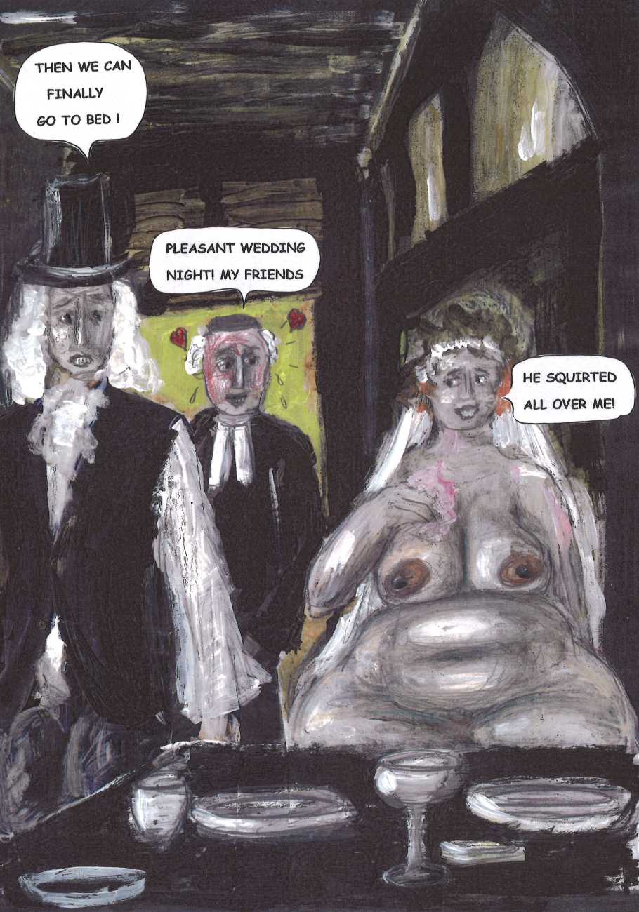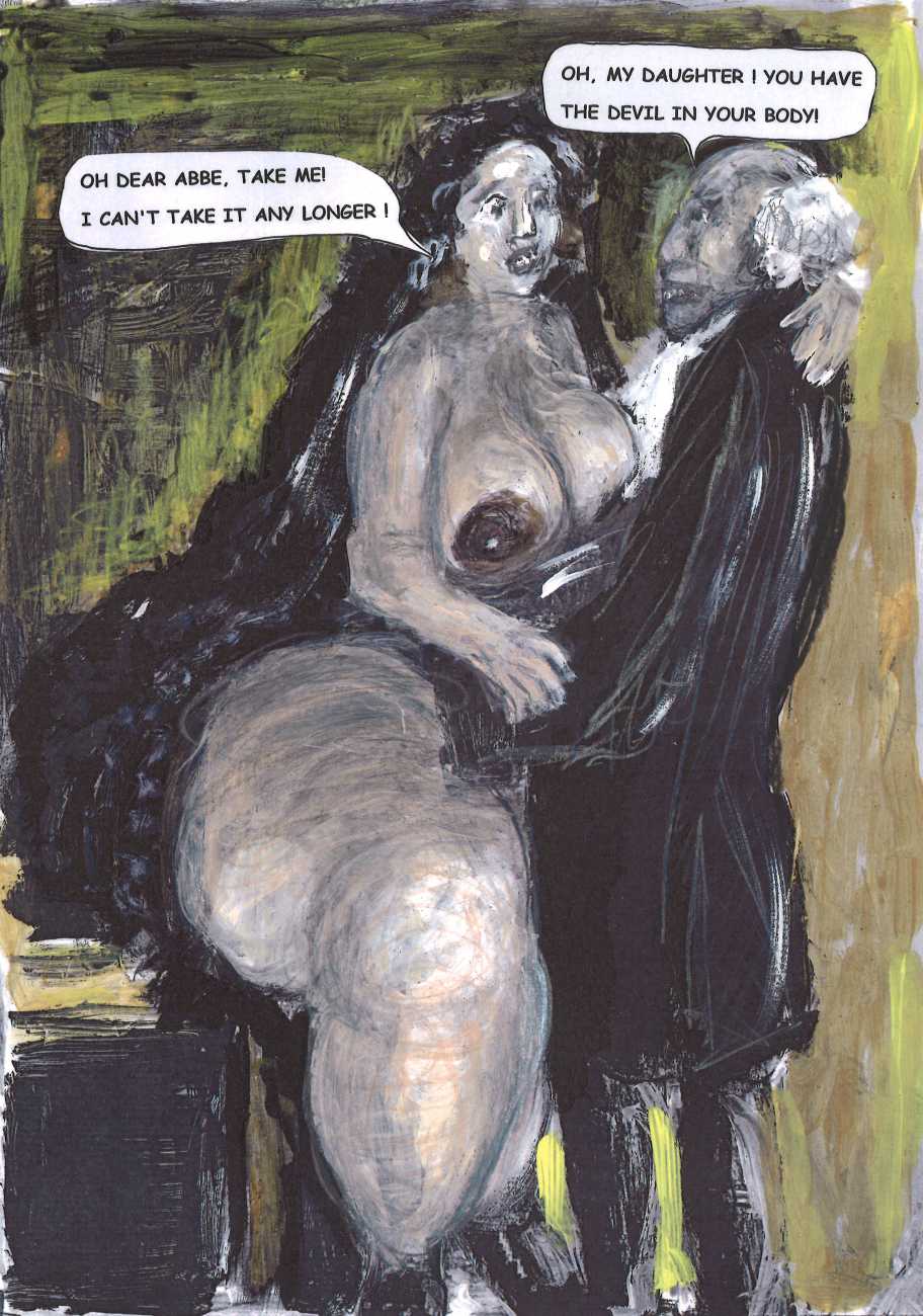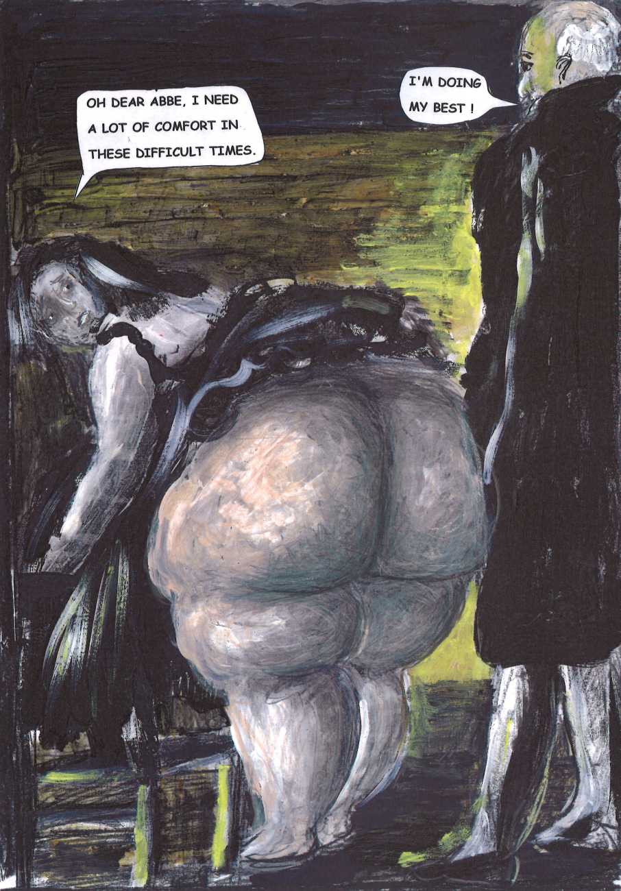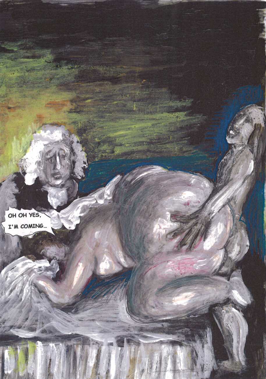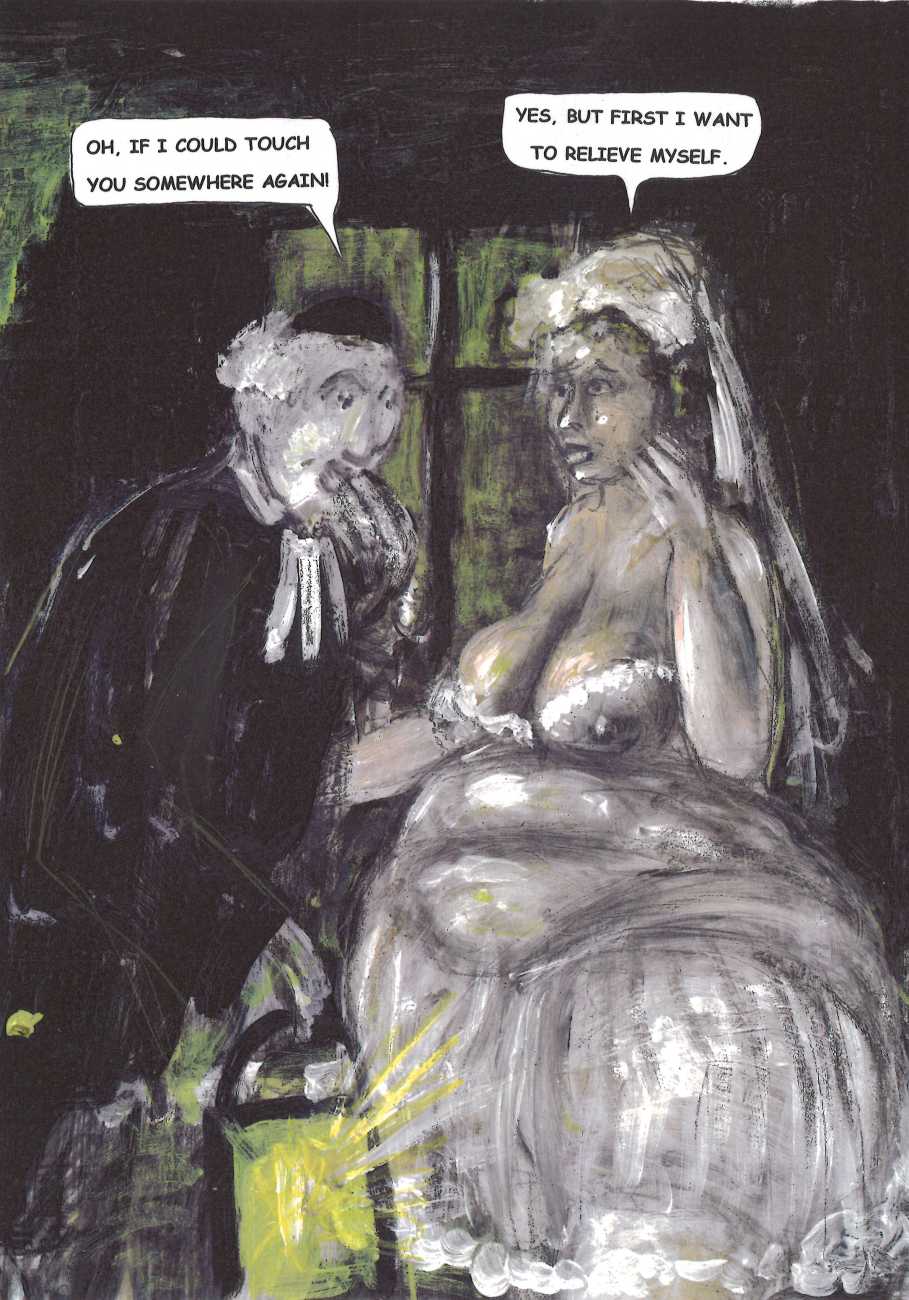 A majority of my images belong to graphic novels. Here too I am a blatant outsider, because my stories – mostly on historical subjects – follow the old tradition of picture stories. Thematically I process classic material such as Boccaccio’s Decameron, stories from the Bible, Lady Chatterley’s Lover, and the life of the philosopher Rousseau, but I have also created my own narratives such as the abbey on the banks of the Meuse or the Pygmalion project. Over time I have created well over 1,200 illustrations, and will continue to add new ones as long as I don’t find myself in a deep, sad hole again or terrible political events throw me off course.
