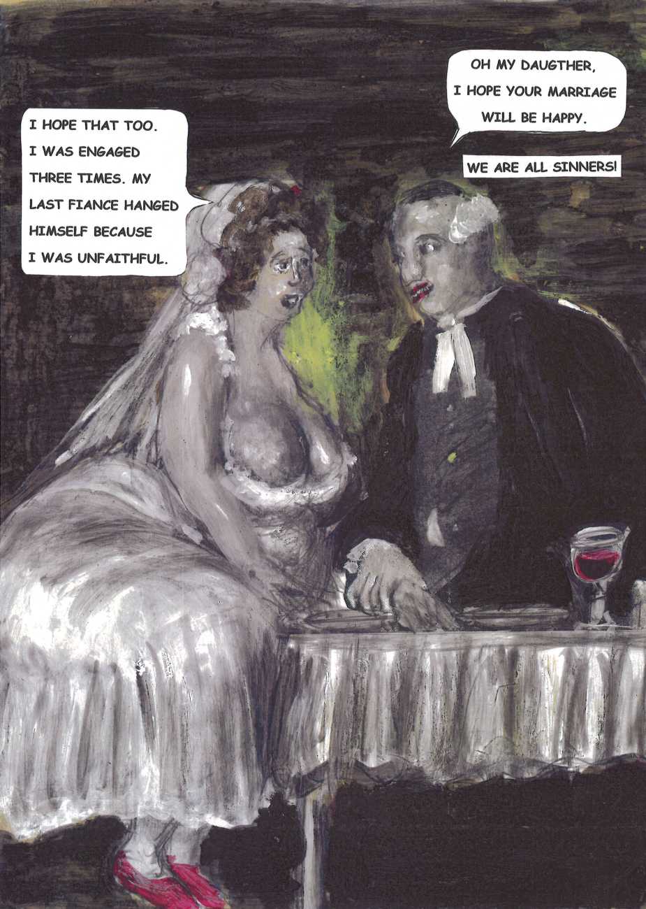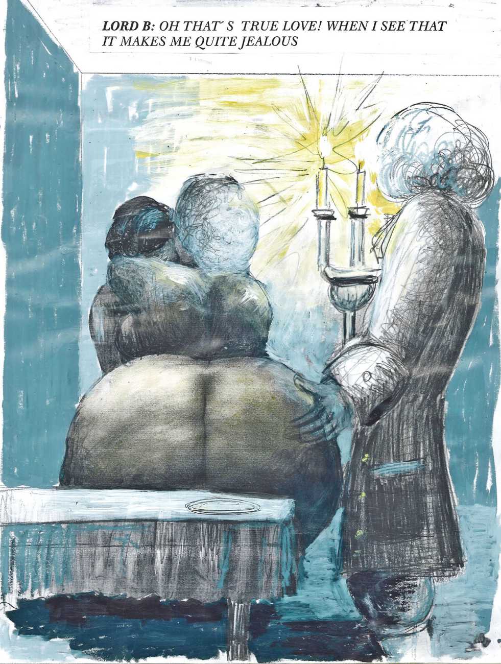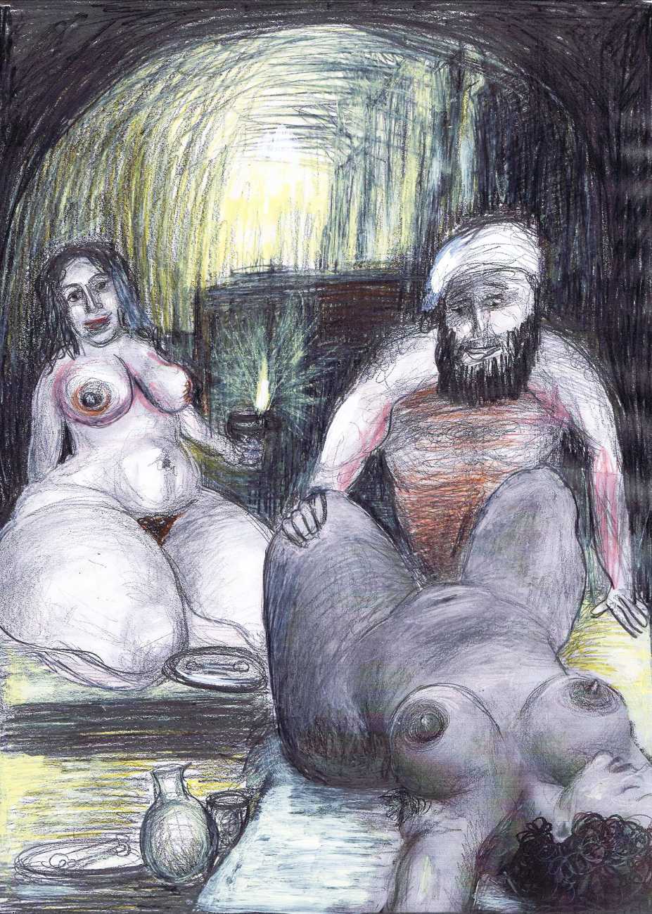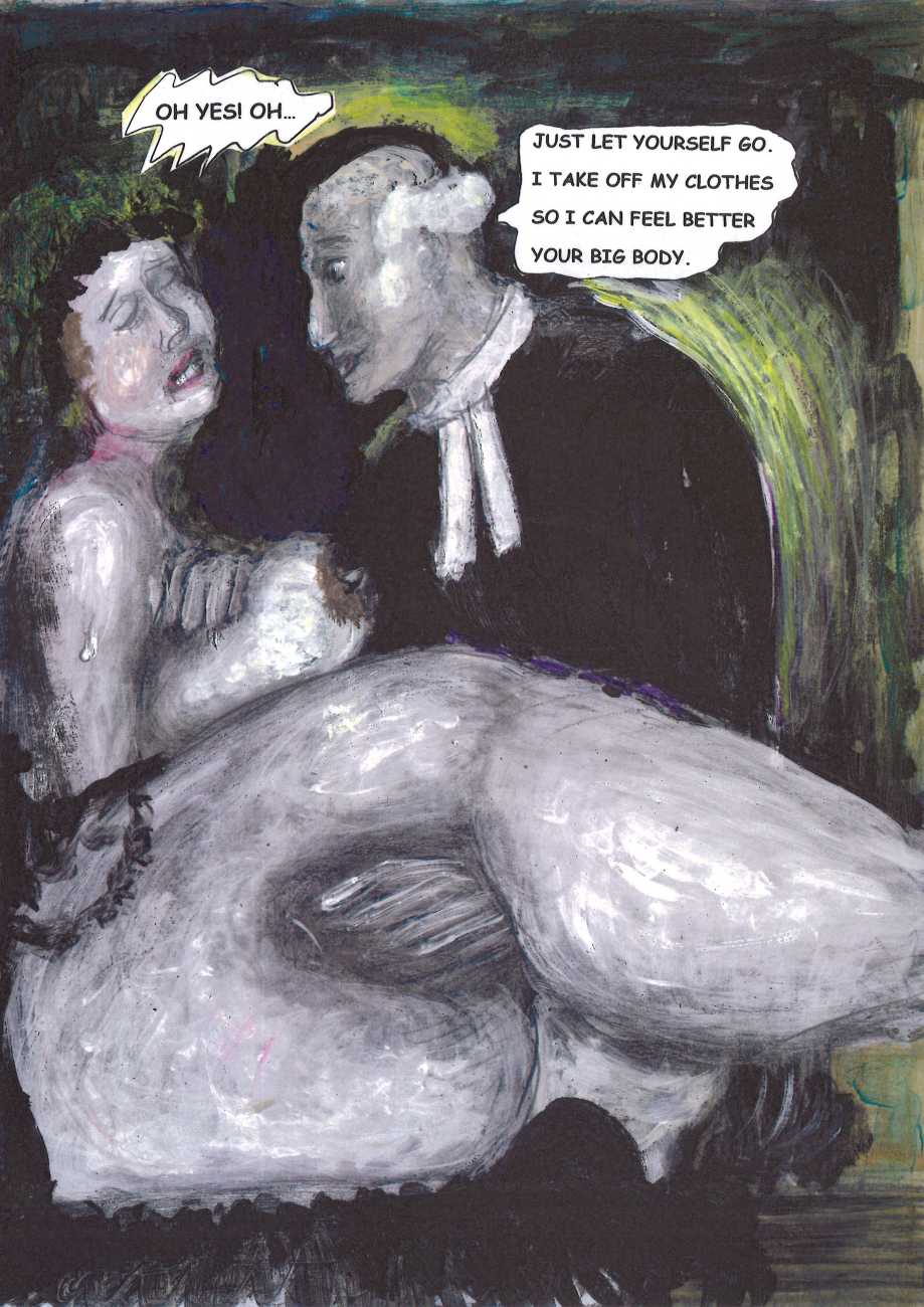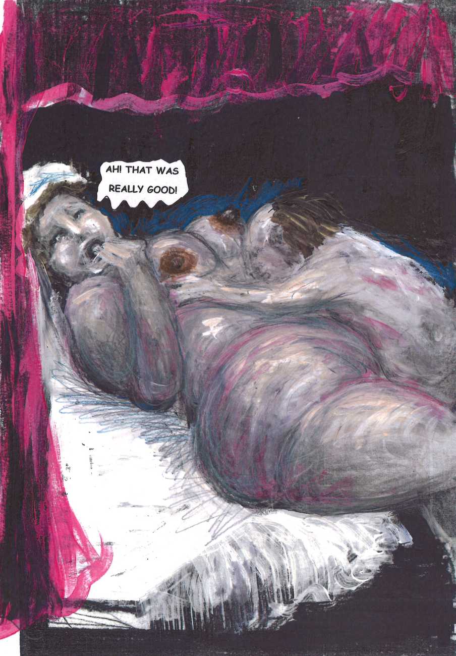 A majority of my images belong to graphic novels. Here too I am a blatant outsider, because my stories – mostly on historical subjects – follow the old tradition of picture stories. Thematically I process classic material such as Boccaccio’s Decameron, stories from the Bible, Lady Chatterley’s Lover, and the life of the philosopher Rousseau, but I have also created my own narratives such as the abbey on the banks of the Meuse or the Pygmalion project. Over time I have created well over 1,200 illustrations, and will continue to add new ones as long as I don’t find myself in a deep, sad hole again or terrible political events throw me off course.
