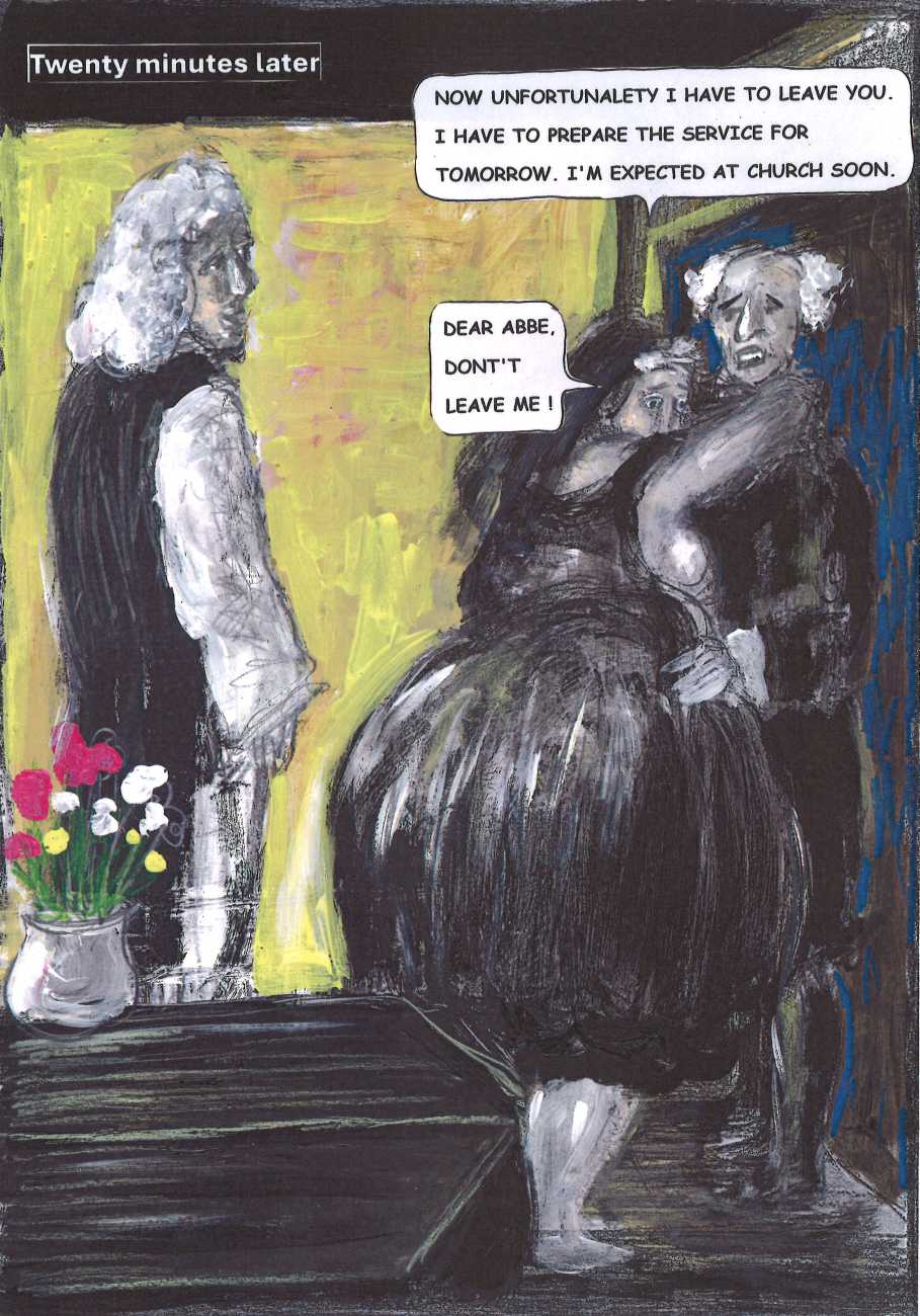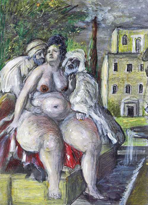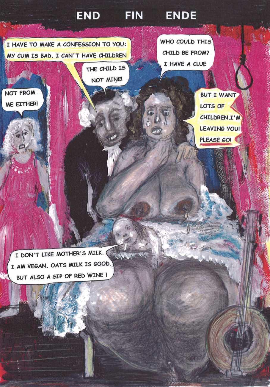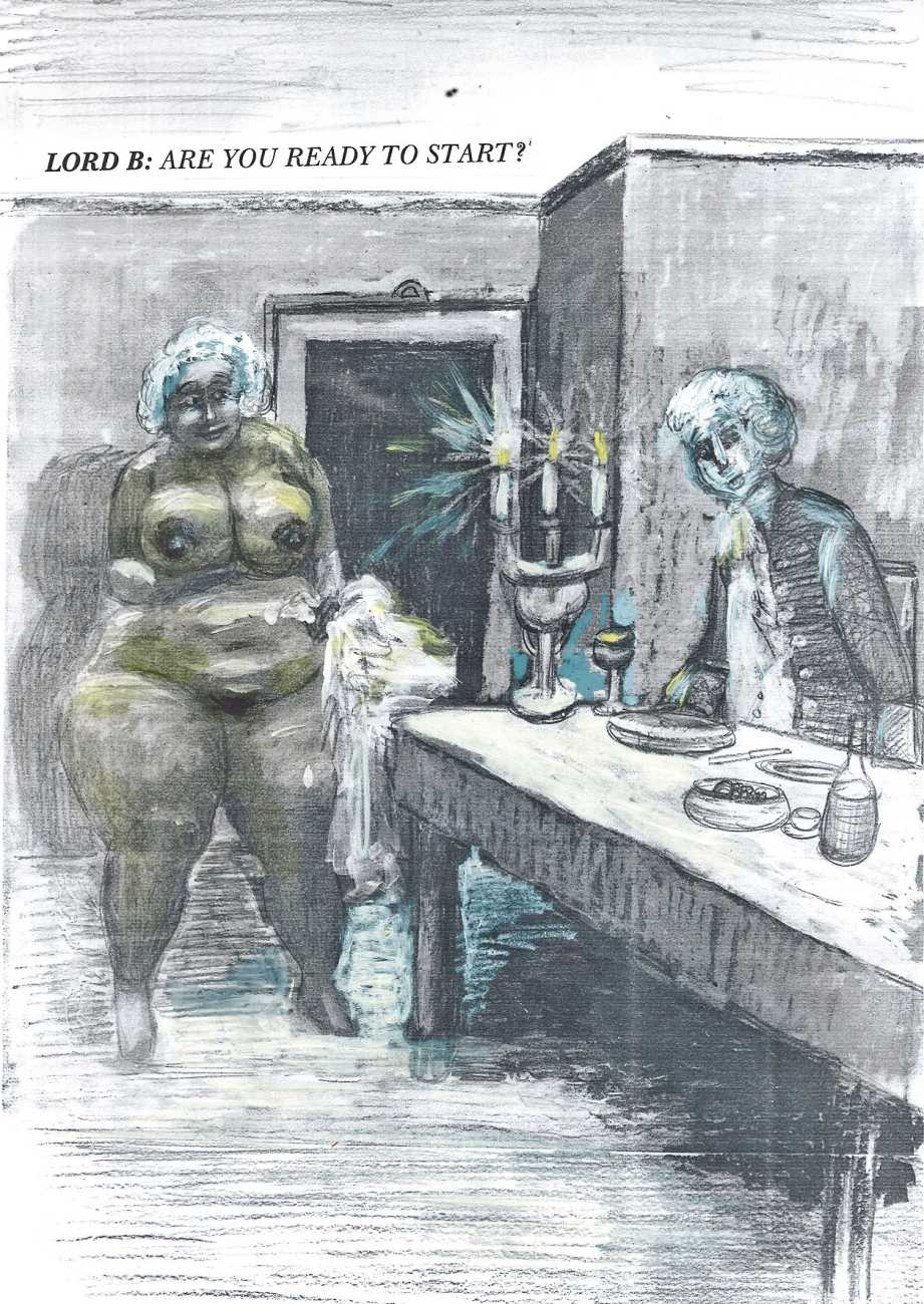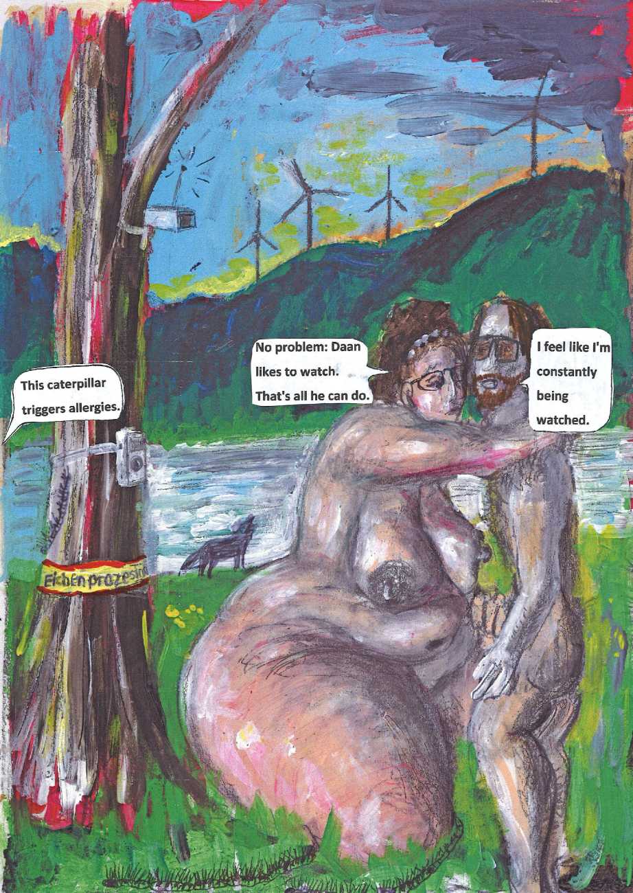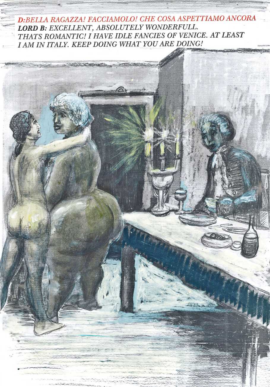 A majority of my images belong to graphic novels. Here too I am a blatant outsider, because my stories – mostly on historical subjects – follow the old tradition of picture stories. Thematically I process classic material such as Boccaccio’s Decameron, stories from the Bible, Lady Chatterley’s Lover, and the life of the philosopher Rousseau, but I have also created my own narratives such as the abbey on the banks of the Meuse or the Pygmalion project. Over time I have created well over 1,200 illustrations, and will continue to add new ones as long as I don’t find myself in a deep, sad hole again or terrible political events throw me off course.