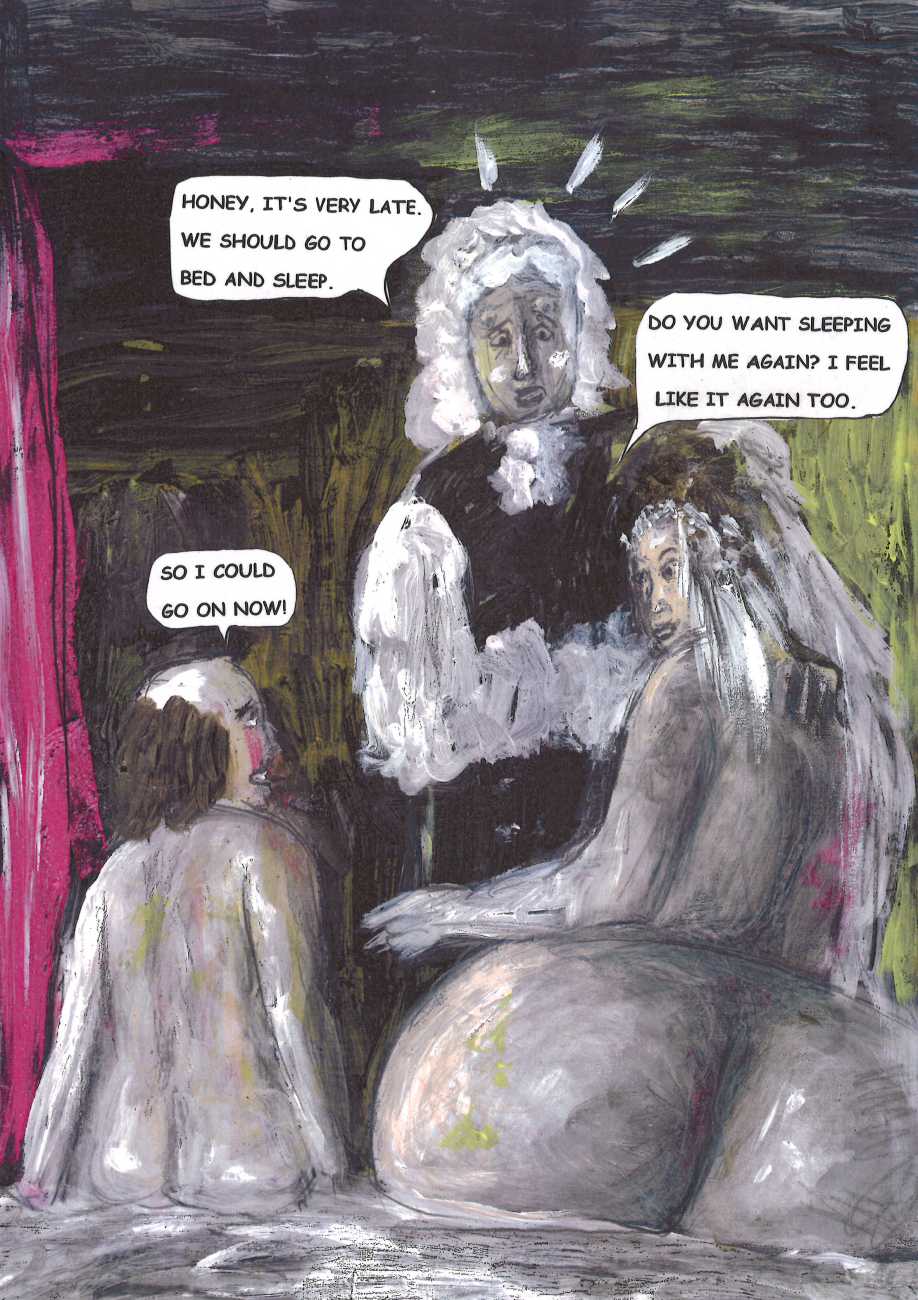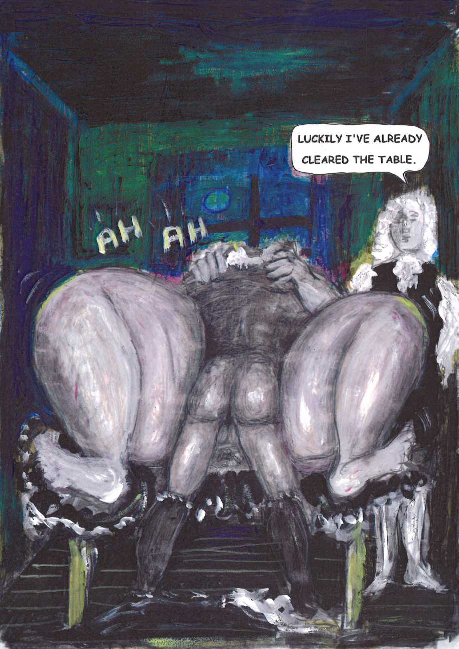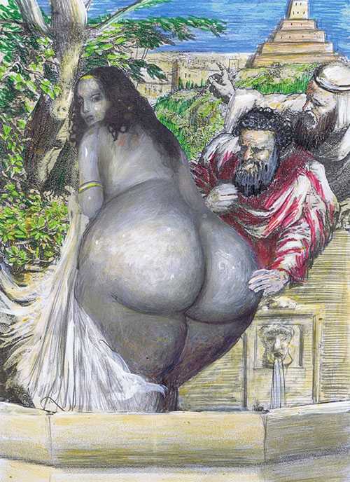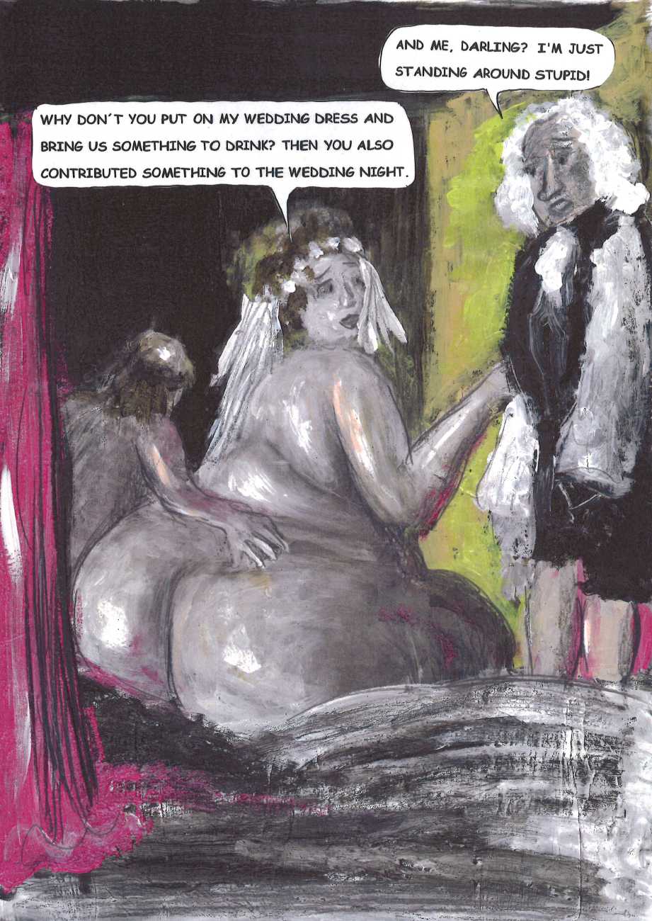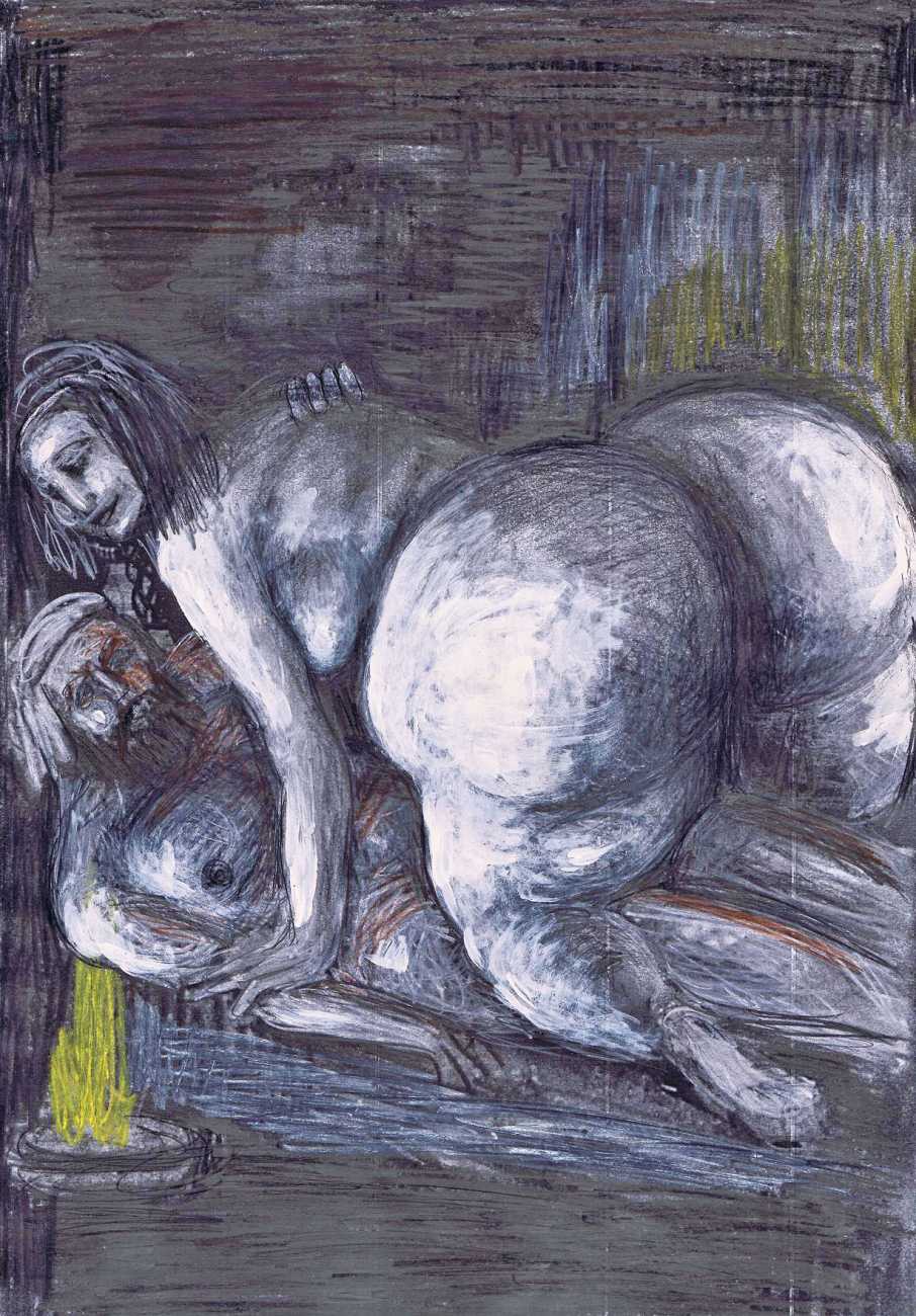 A majority of my images belong to graphic novels. Here too I am a blatant outsider, because my stories – mostly on historical subjects – follow the old tradition of picture stories. Thematically I process classic material such as Boccaccio’s Decameron, stories from the Bible, Lady Chatterley’s Lover, and the life of the philosopher Rousseau, but I have also created my own narratives such as the abbey on the banks of the Meuse or the Pygmalion project. Over time I have created well over 1,200 illustrations, and will continue to add new ones as long as I don’t find myself in a deep, sad hole again or terrible political events throw me off course.