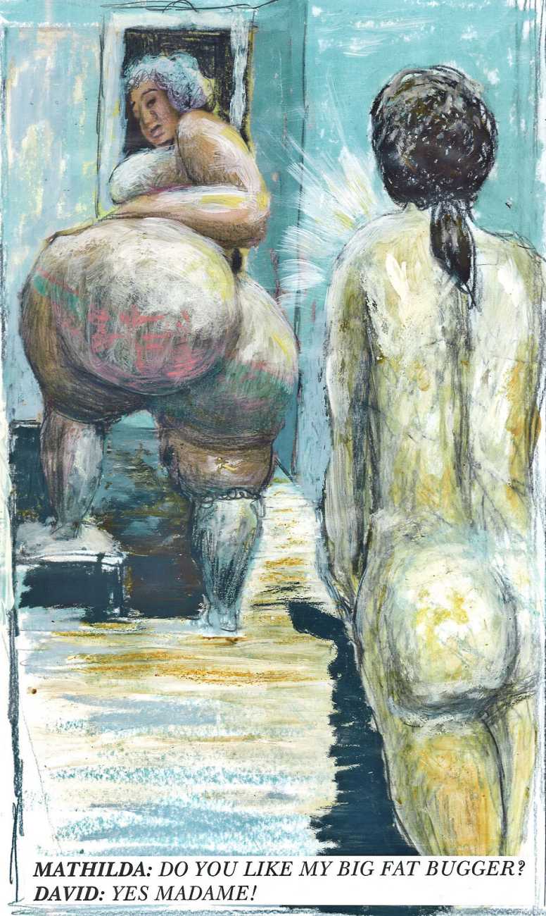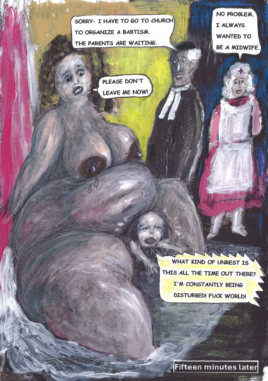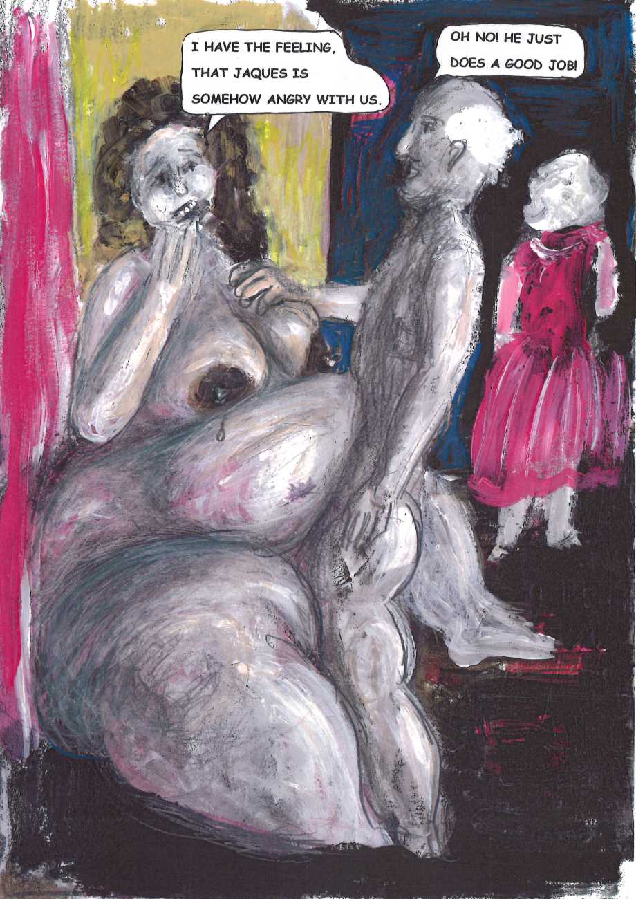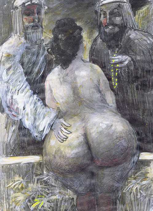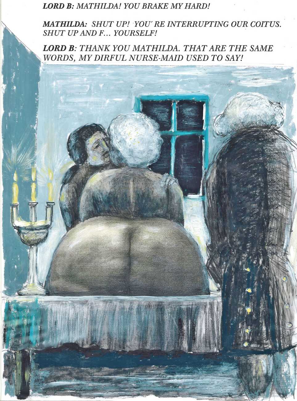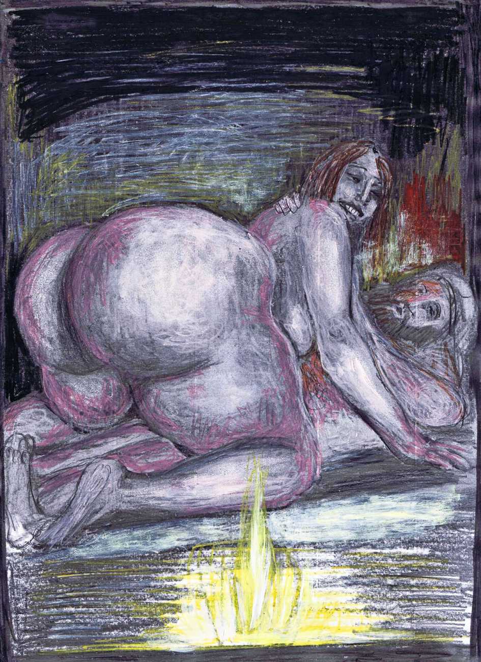 A majority of my images belong to graphic novels. Here too I am a blatant outsider, because my stories – mostly on historical subjects – follow the old tradition of picture stories. Thematically I process classic material such as Boccaccio’s Decameron, stories from the Bible, Lady Chatterley’s Lover, and the life of the philosopher Rousseau, but I have also created my own narratives such as the abbey on the banks of the Meuse or the Pygmalion project. Over time I have created well over 1,200 illustrations, and will continue to add new ones as long as I don’t find myself in a deep, sad hole again or terrible political events throw me off course.