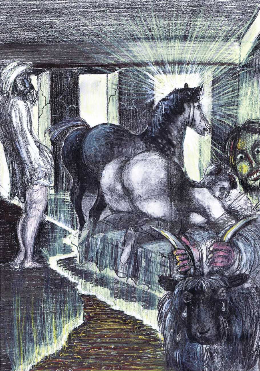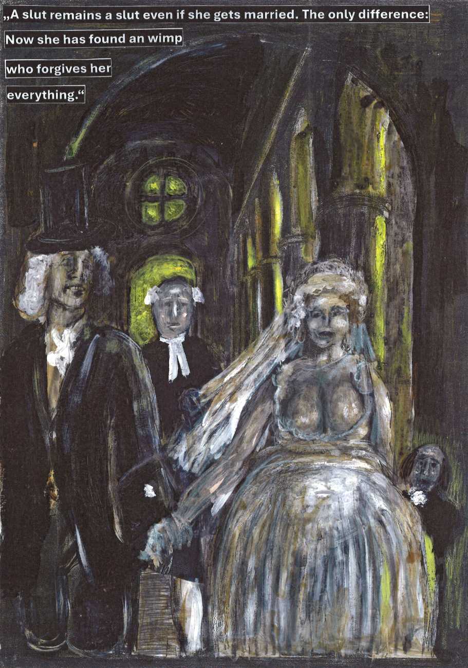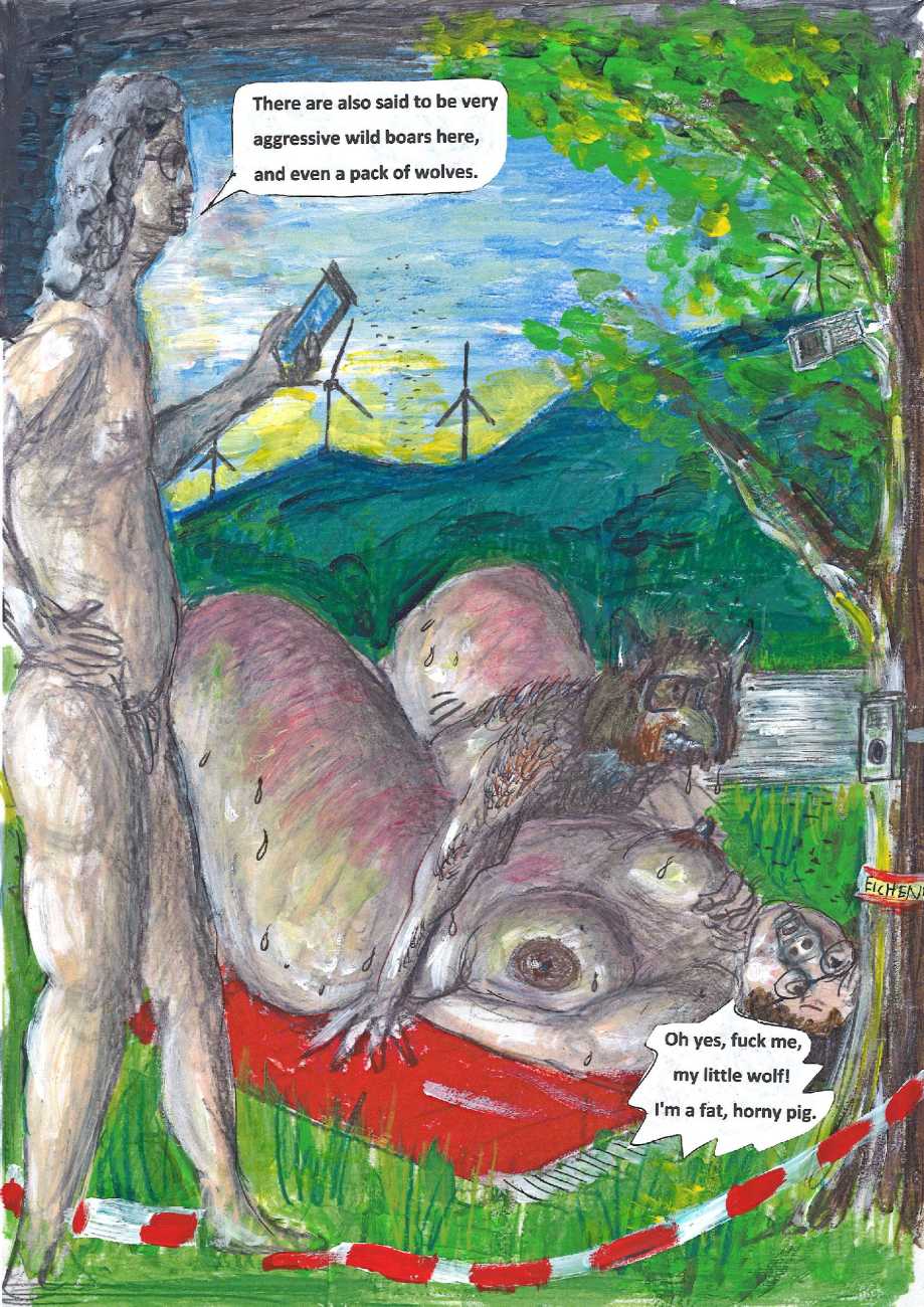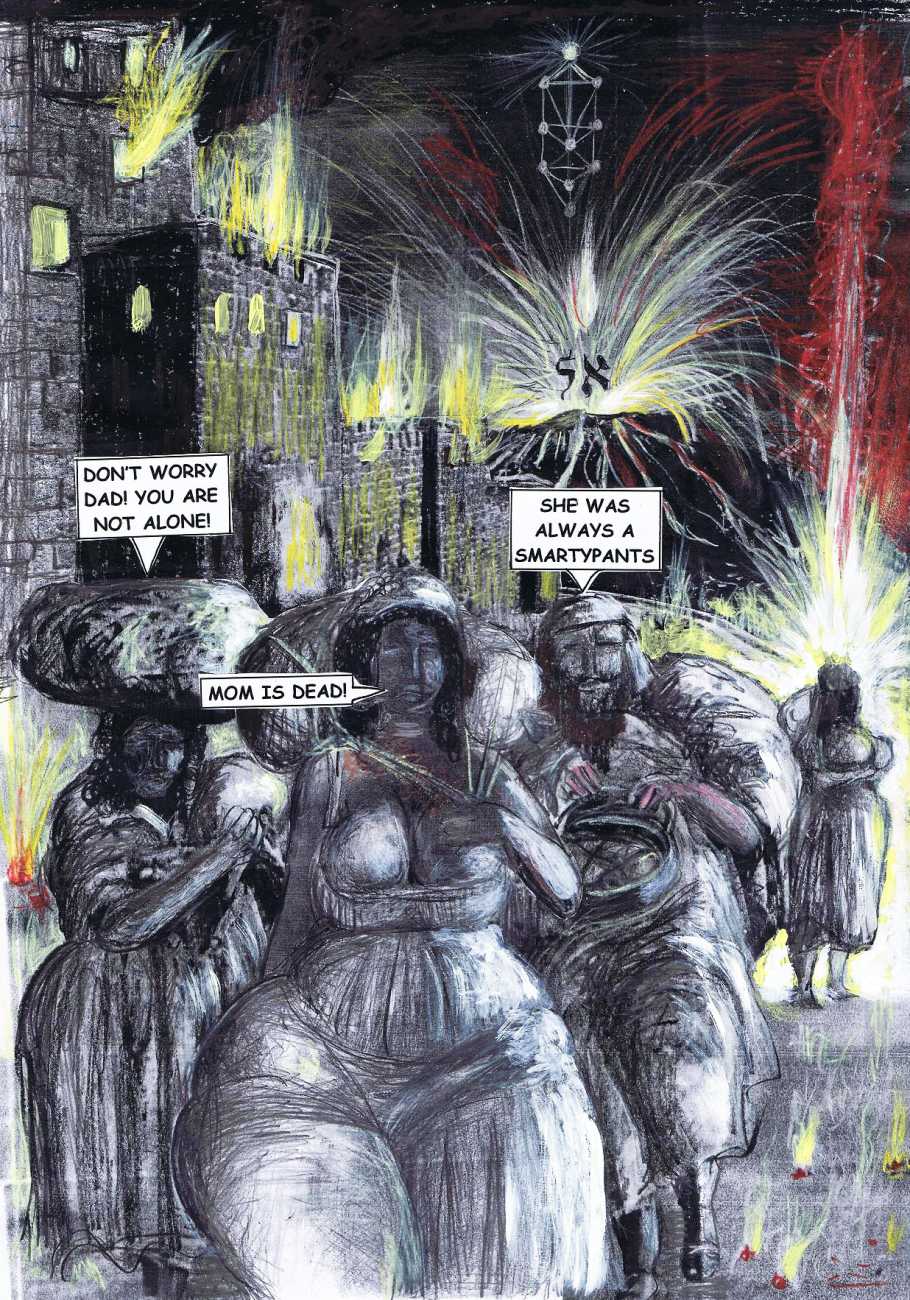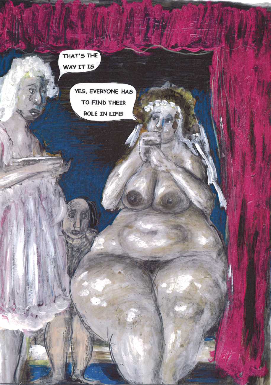 A majority of my images belong to graphic novels. Here too I am a blatant outsider, because my stories – mostly on historical subjects – follow the old tradition of picture stories. Thematically I process classic material such as Boccaccio’s Decameron, stories from the Bible, Lady Chatterley’s Lover, and the life of the philosopher Rousseau, but I have also created my own narratives such as the abbey on the banks of the Meuse or the Pygmalion project. Over time I have created well over 1,200 illustrations, and will continue to add new ones as long as I don’t find myself in a deep, sad hole again or terrible political events throw me off course.