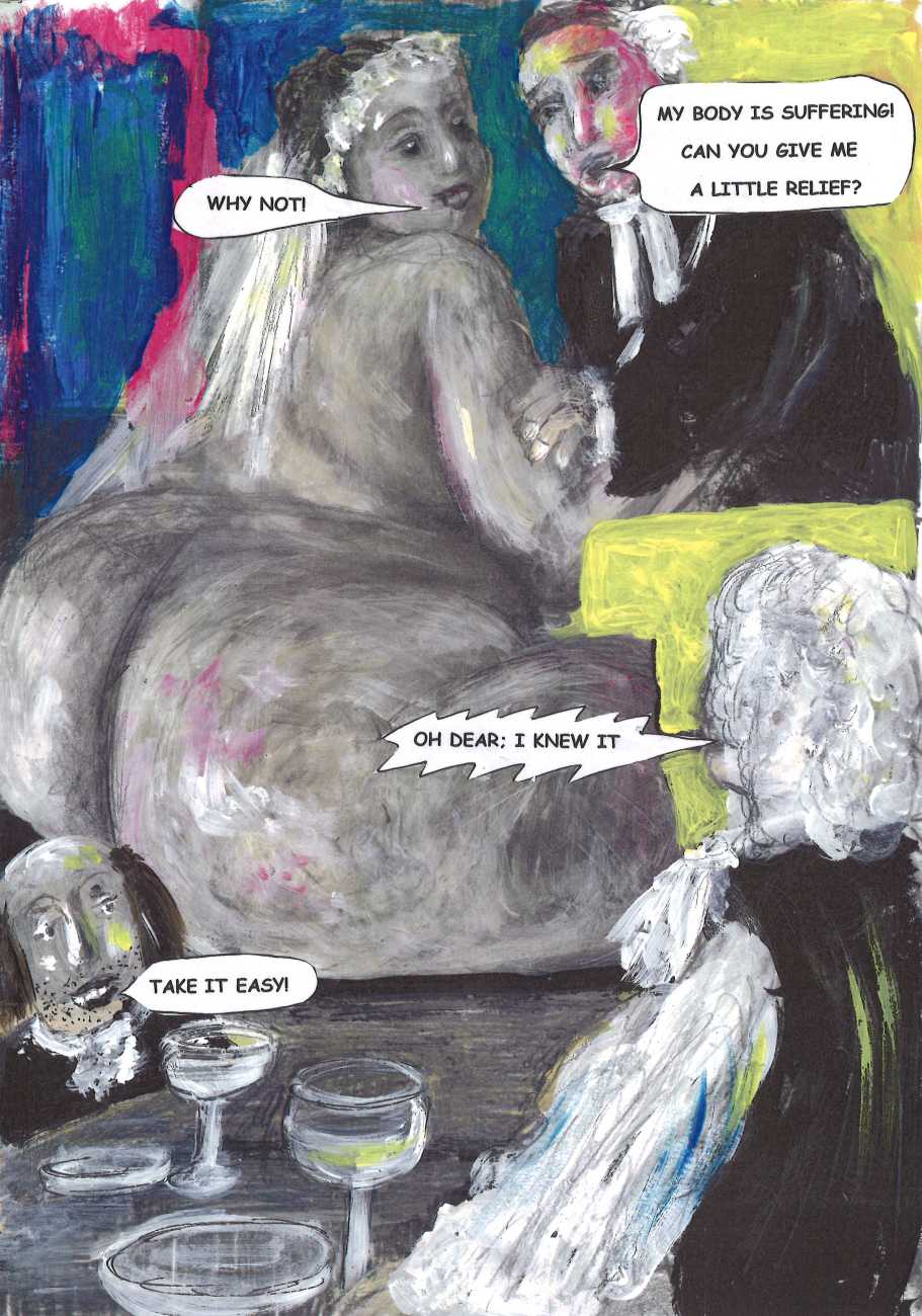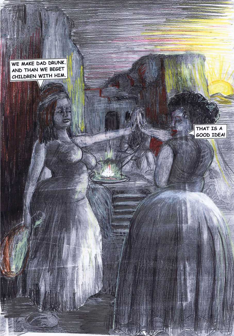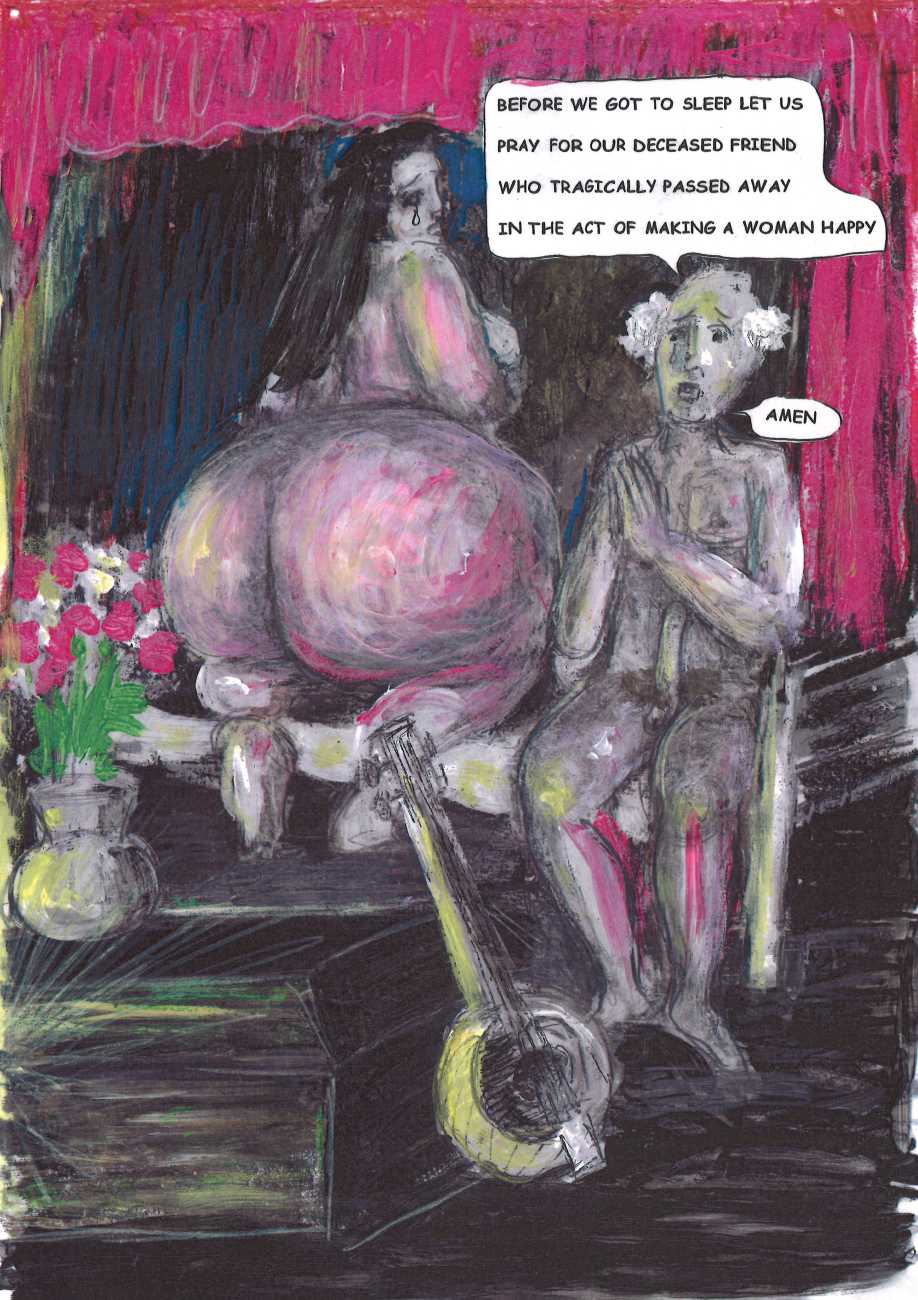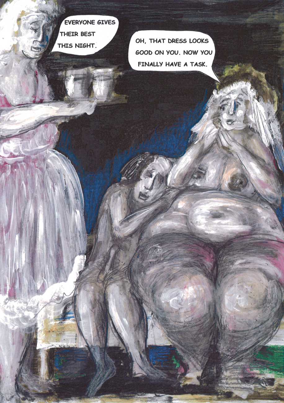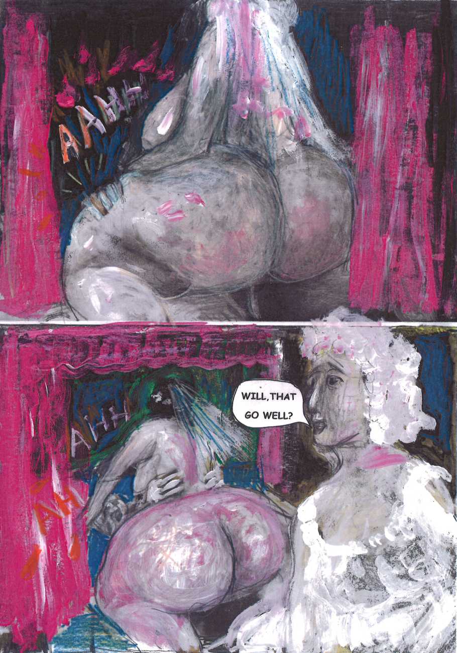 A majority of my images belong to graphic novels. Here too I am a blatant outsider, because my stories – mostly on historical subjects – follow the old tradition of picture stories. Thematically I process classic material such as Boccaccio’s Decameron, stories from the Bible, Lady Chatterley’s Lover, and the life of the philosopher Rousseau, but I have also created my own narratives such as the abbey on the banks of the Meuse or the Pygmalion project. Over time I have created well over 1,200 illustrations, and will continue to add new ones as long as I don’t find myself in a deep, sad hole again or terrible political events throw me off course.