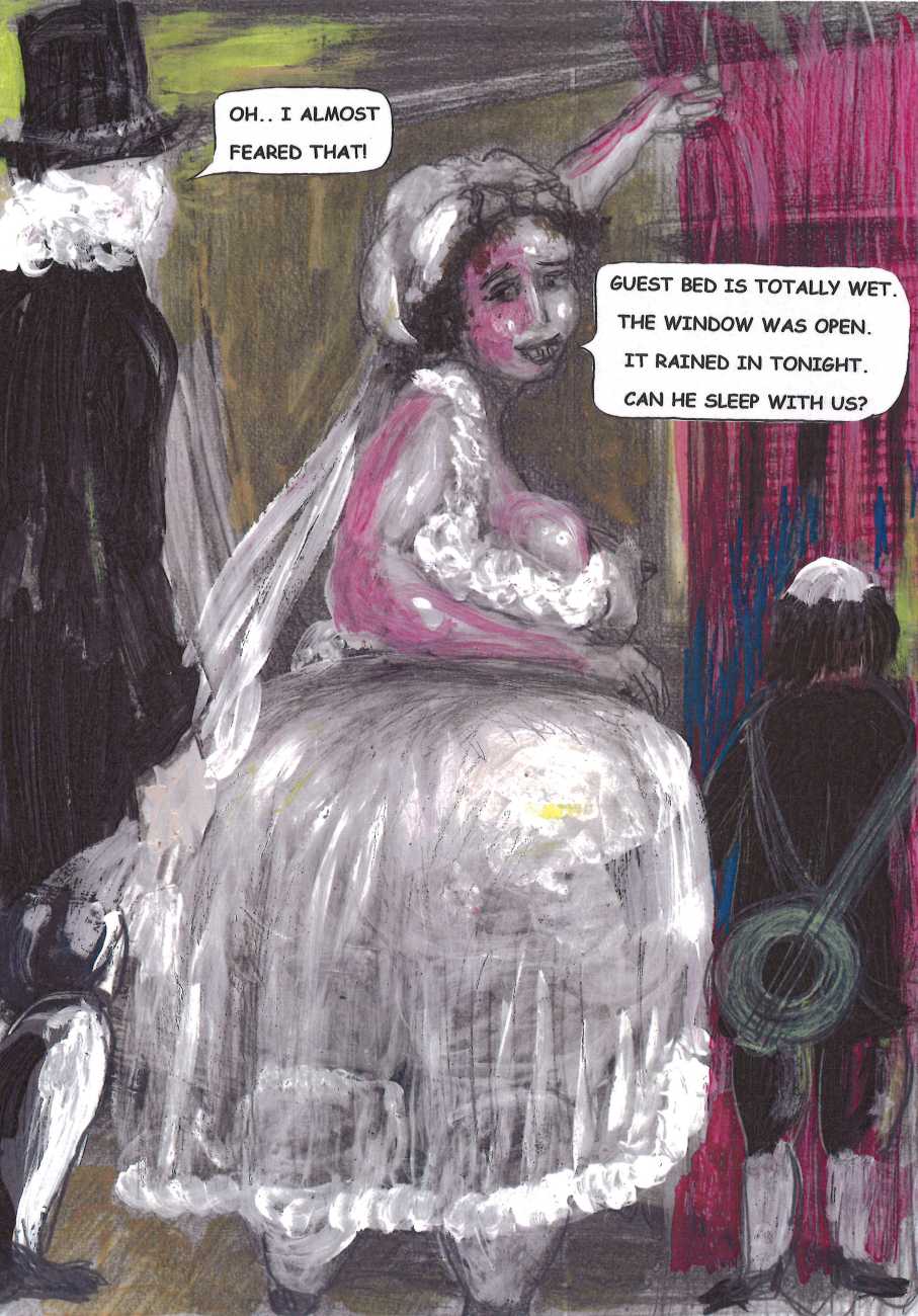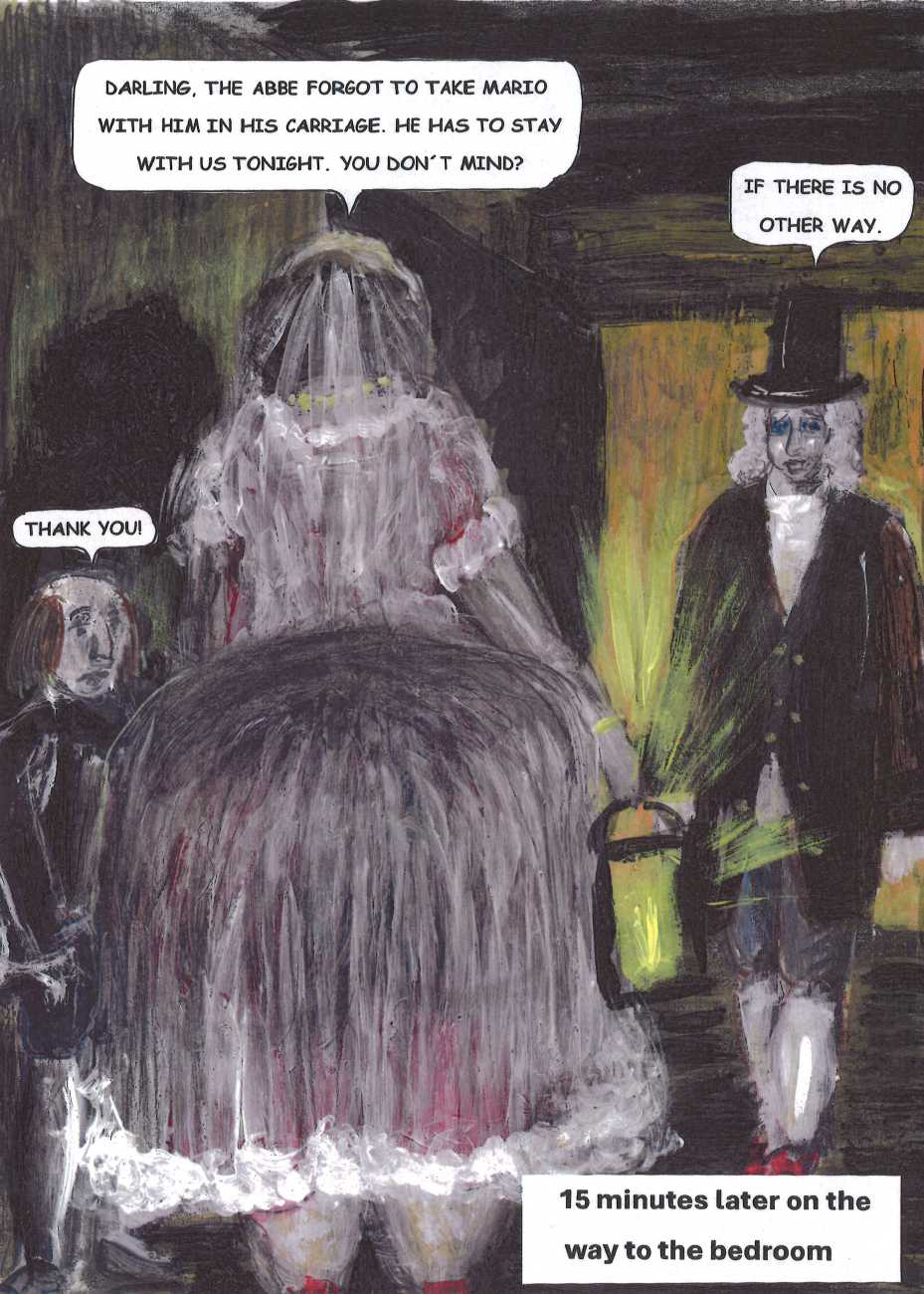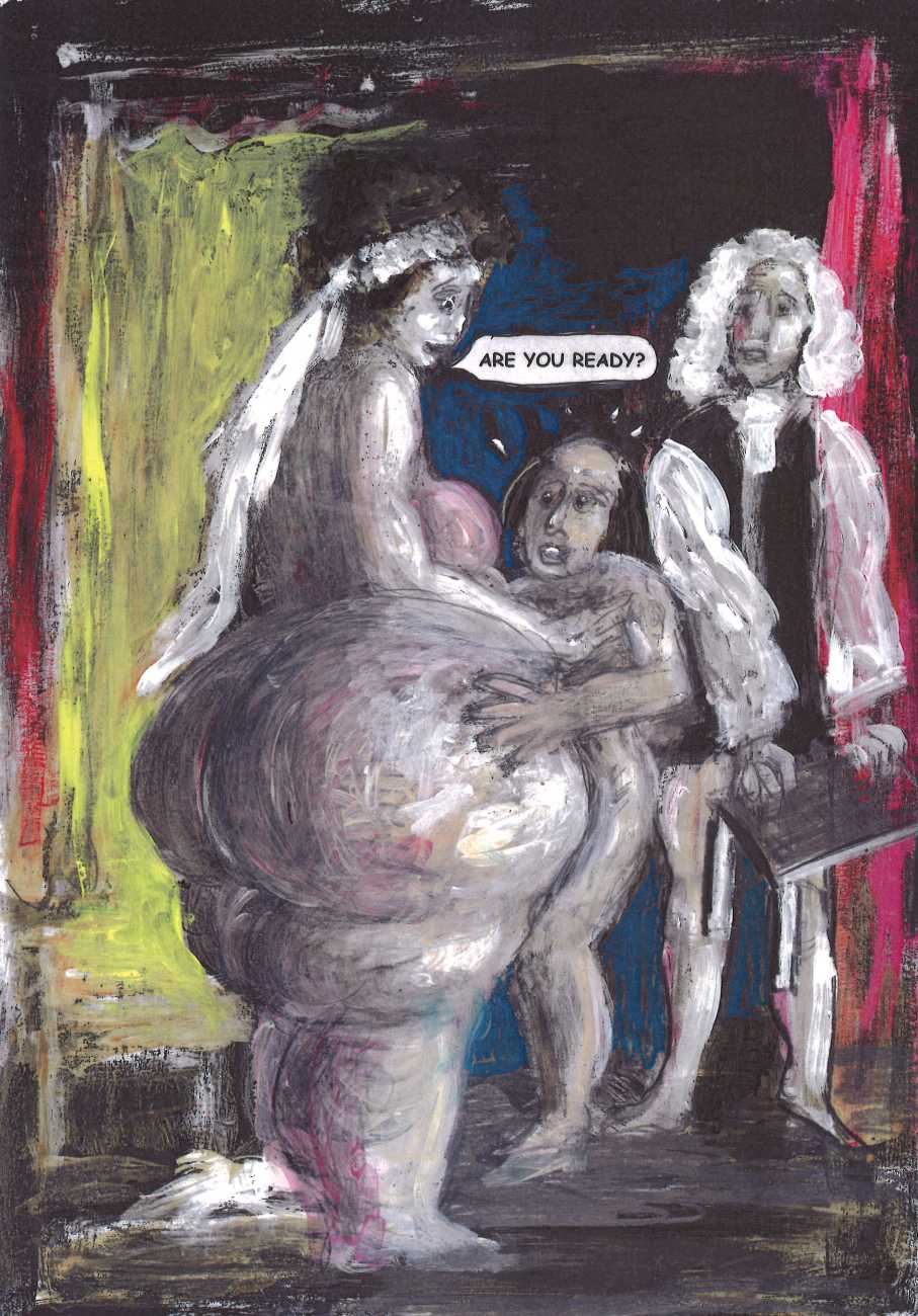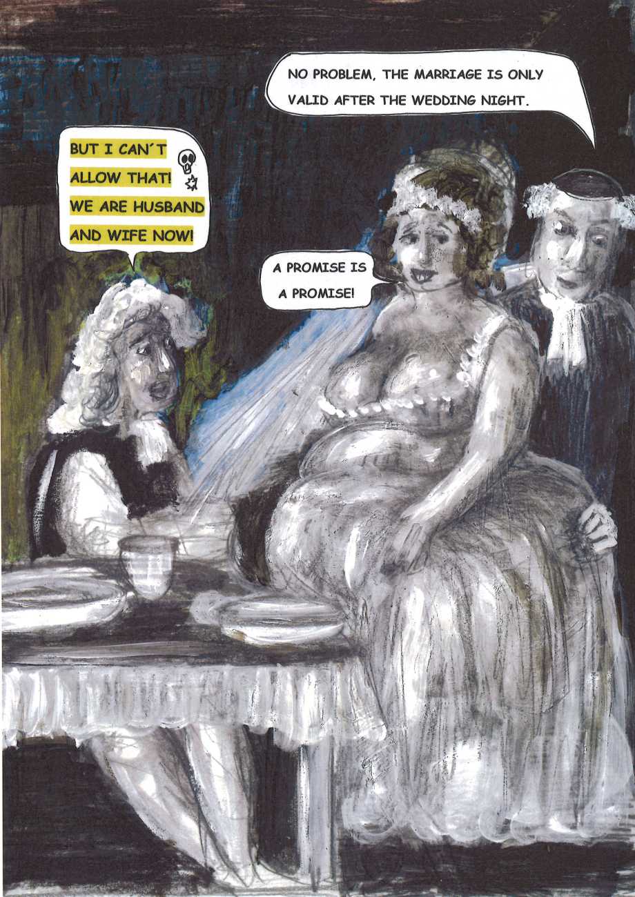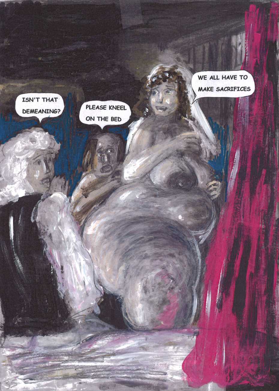 A majority of my images belong to graphic novels. Here too I am a blatant outsider, because my stories – mostly on historical subjects – follow the old tradition of picture stories. Thematically I process classic material such as Boccaccio’s Decameron, stories from the Bible, Lady Chatterley’s Lover, and the life of the philosopher Rousseau, but I have also created my own narratives such as the abbey on the banks of the Meuse or the Pygmalion project. Over time I have created well over 1,200 illustrations, and will continue to add new ones as long as I don’t find myself in a deep, sad hole again or terrible political events throw me off course.