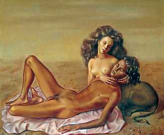 Leonor had clear and strongly-held ideas, in many ways far ahead of her time, about how women and men could coexist equally and supportively. ‘It is obvious that women have been mistreated by men for so long,’ she wrote. ‘They have always had to submit to men. It is no wonder that they are going on the offensive now. But I am not a feminist, and hate being claimed as a feminist. I like men who are intelligent, sensitive, have real understanding, men who are aware of their feminine side. I especially like homosexual men and androgynous men. I like to think of myself as androgynous.’ It is this androgyny which has confused many of Leonor Fini’s admirers, who have confused it with bisexuality. There is no doubt that Leonor loved women deeply – she was close to many of her female artistic contemporaries – but she was also passionately attracted to the right sort of men.