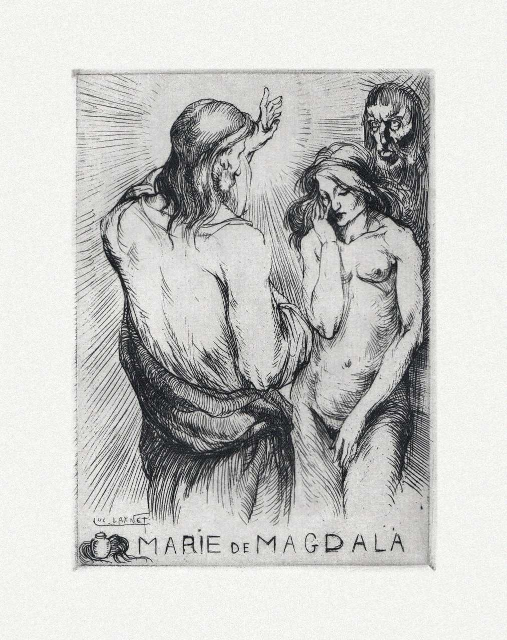 The hugely talented and productive Belgian artist and illustrator Lucien Lafnet embraced an astonishing variety of styles and techniques, from large-scale oil paintings and murals to detailed engravings and comic strip characters. He grew up and trained in Liège, studying with the master engraver François Maréchal at the Académie Royale des Beaux-Arts. A precocious and hard-working student, he won second prize at the Prix de Rome when he was just eighteen, and held his first exhibition the following year. In 1920 he moved to Paris, where he quickly established himself as an artist and engraver, specialising in allegorical paintings and church murals.